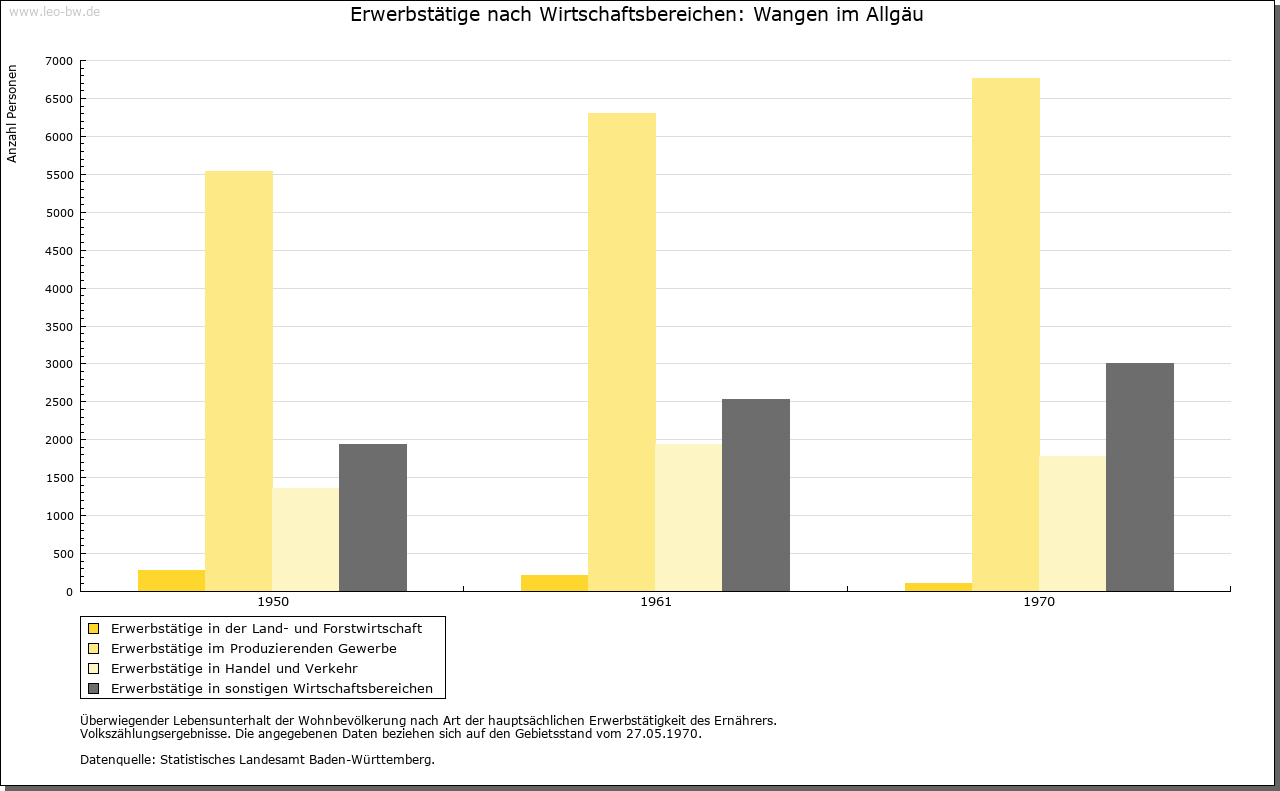 | Wirtschaft und Bevölkerung: | Herstellung von Leinwand (seit dem 13. Jahrhundert erwähnt) und von Sensen (seit dem 14. Jahrhundert). Die Kaufleute schlossen sich der Großen Ravensburger Handelsgesellschaft an (Hans Hinderofer war zeitweise 2. Regierer), hatten aber auch eigene Kontore. Brände 1408, 1539, 1763, 1874. |