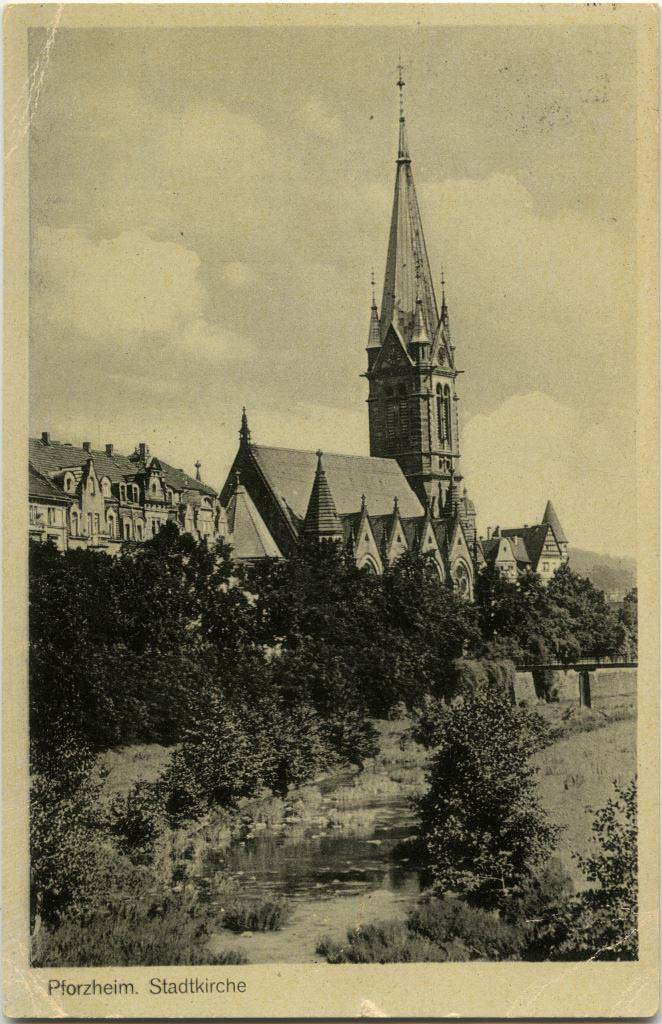 | Kurzbeschreibung: | Die Schwarzweißfotopostkarte zeigt eine Ansicht der Pforzheimer Stadtkirche. Im Vordergrund die Enz. Die neugotische Stadtkirche wurde 1899 eingeweiht und ist beim Luftangriff auf Pforzheim am 23. Februar 1945 zerstört worden. |