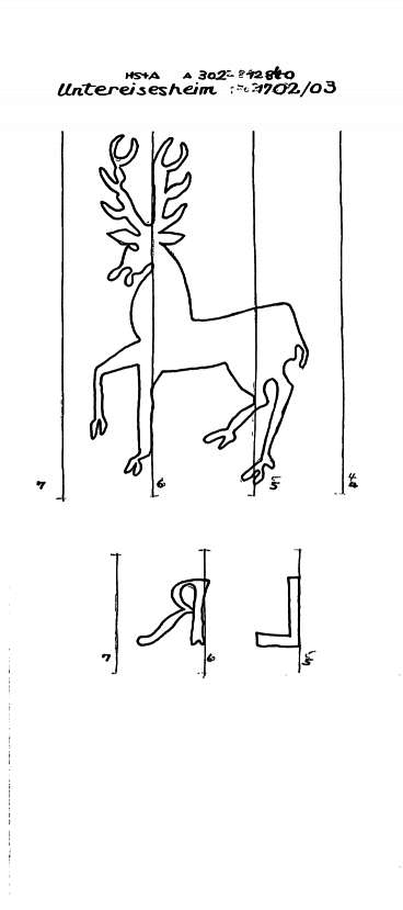 | Schlagwörter: | Fauna / Vierfüßer / Hirsch / ganze Figur / frei, ohne Beizeichen / Geweih zweikonturig / schreitend |