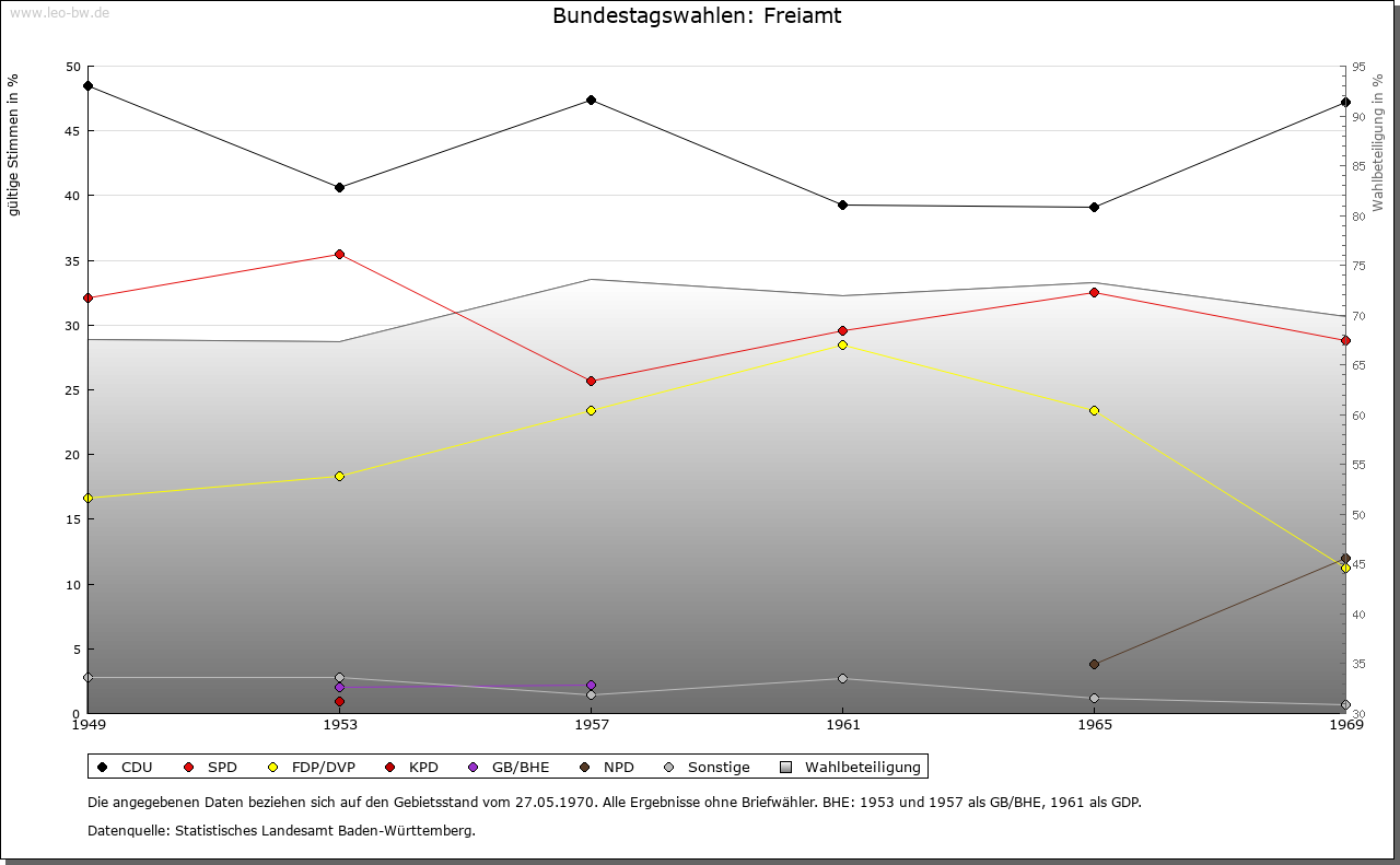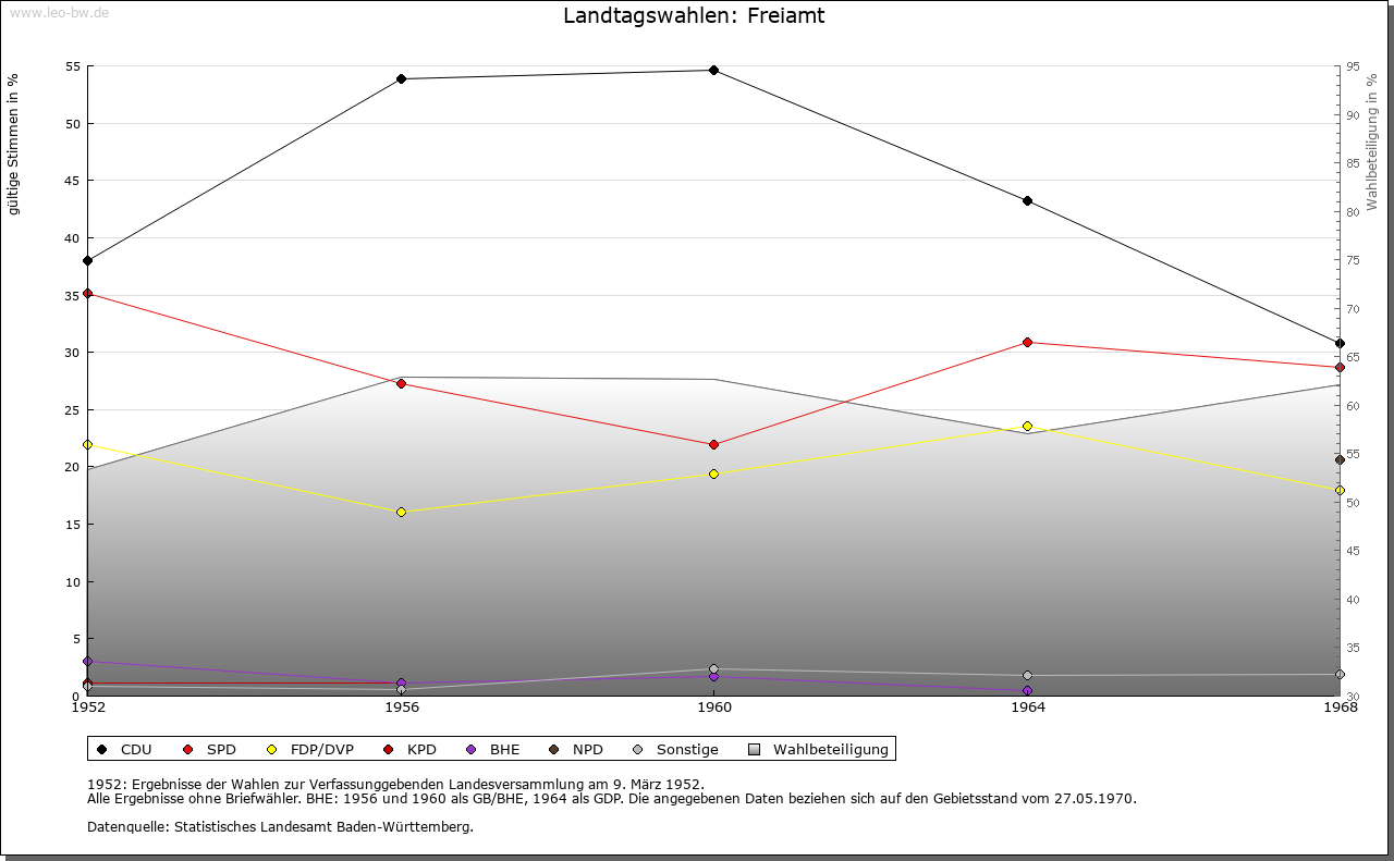 | Geschichte: | 1311 die frien lute die wir han zu Gutenrode, ze beiden Musbachen, ze Schonabrunnen, ze Bretten, ze Richenbach, ze Norbrehtesberge, ze Buttenkroph, unze an die alten Keppenbach, 1582 im Freyen Ampt. Im Ortsnamen kommt die persönliche Freiheit der Einwohner zum Ausdruck. Die Besiedlung der Täler des Freiamtes setzte wahrscheinlich um die Wende des 10./11. Jahrhundert ein. Dörfliche Siedlungskerne weisen lediglich Reichenbach und Keppenbach auf, sonst mehr oder weniger dichte Streusiedlung. 1161 kaufte das Kloster Tennenbach Liegenschaften zu Labern, Brettenhardt, Mutterstegen und Mußbach von Kuno von Horben, einem Vasallen der Herzöge von Zähringen. Weitere Erwerbungen folgten. Markgraf Heinrich I. schenkte vor seinem Tod 1230 das Dorf Mußbach. Allmählich bildeten sich Schwerpunkte Tennenbacher Besitzes in diesem Ort sowie zu Gutenrode (abgegangen) und Reichenbach. Im Gebiet des Freiamts trafen drei Machtträger aufeinander: die Herren von Keppenbach, das Kloster Tennenbach und die Markgrafen. Die Keppenbacher besaßen als zu ihrem Lehen gehörig das Wildbannrecht, zu dem auch das Bergregal und damit der Besitz der Silberbergwerke zählte. Dazu kamen grundherrliche Rechte. Das Kloster Tennenbach blieb auf die Grundherrschaft beschränkt und stellte infolge der Vogteiverhältnisse einen Sonderbezirk dar; vor 1834 zusammen mit verschiedenen Waldparzellen eigene Gemarkung. Auf der Basis der Breisgaugrafschaft, mit der die Hochgerichtsbarkeit verbunden war, und auf der Grundlage der Vogtei über das Kloster Tennenbach und die freien Leute konnten die Markgrafen von Hachberg die Landesherrschaft durchsetzen. 1356-1386 war auch Freiamt dem Freiburger Martin Malterer mit Zwing und Bann verpfändet, genannt werden Mußbach, Glashausen, Reichenbach, Nordprechtsberg, Bildstein, (Alt)Keppenbach, Gerlisberg und Hofen. Gegen Ende des 16. Jahrhundert war das Freiamt ein eigenes badisches Amt geworden, zu ihm zählten auch einige Höfe in Hofstetten (Verwaltungsraum Haslach, Ortenaukreis). 1803 kam Freiamt unmittelbar zum Oberamt Hochberg, 1809 zum Вezirksamt Emmendingen. |
