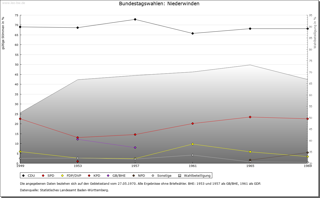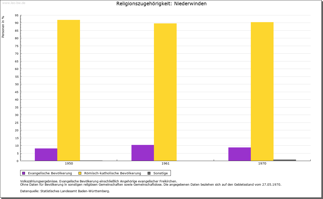 | Kirche und Schule: | Eine Kirche zu Niederwinden wird 1360/70 erwähnt, sie war und ist Filiale von Oberwinden (1493). Katholische Filialkirche St. Leonhard 1685 erbaut, 1839 vergrößert. Evangelische zu Elzach. |