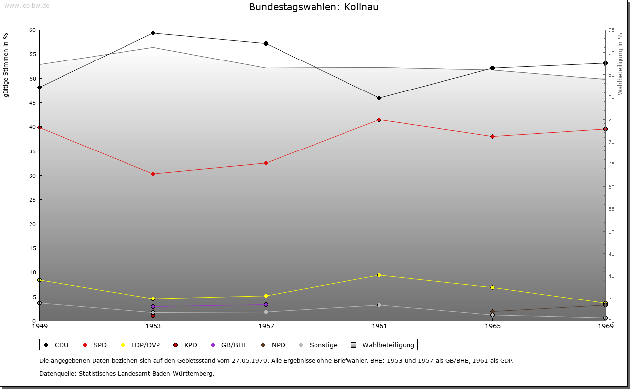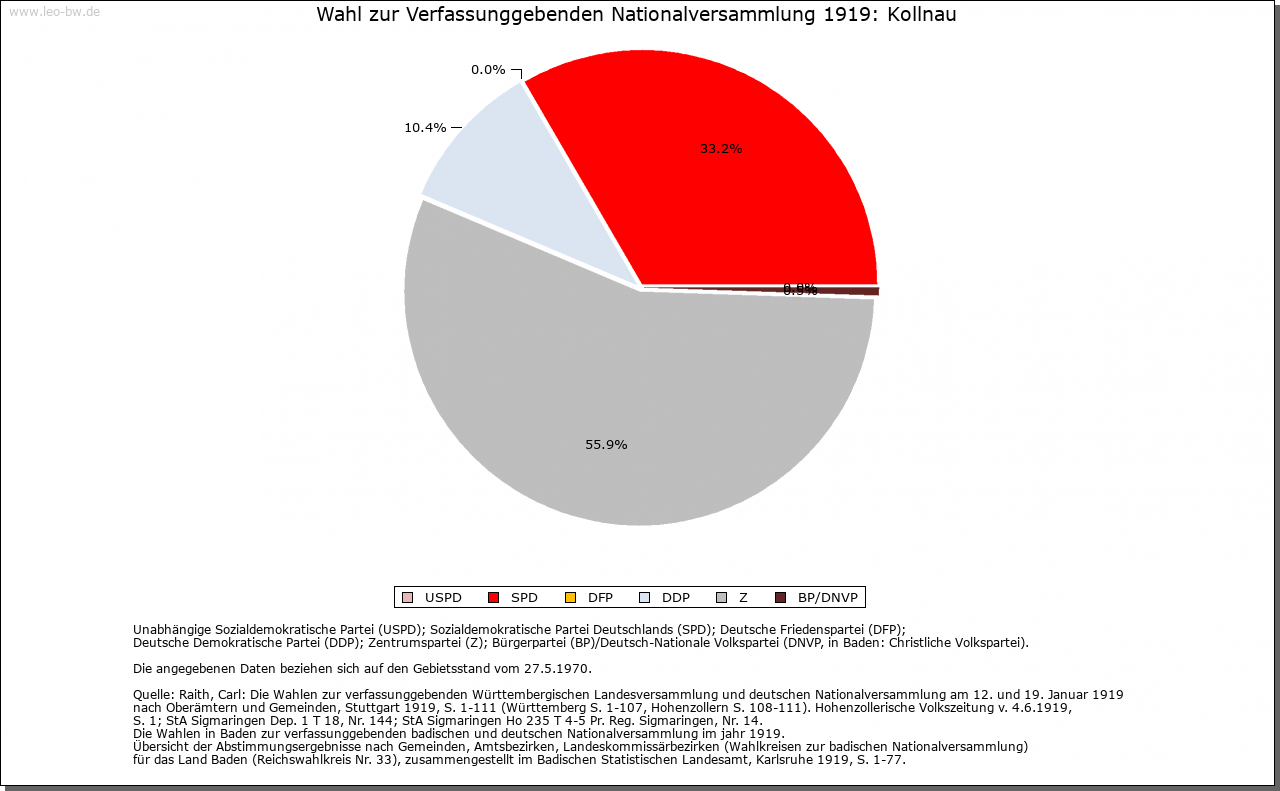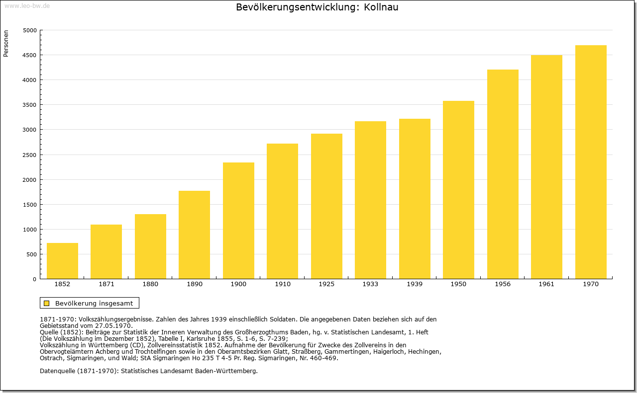 | Geschichte: | 1309 Kolbenöwe, 1461 Colnaw; Au des Kolbo. Siedlung des hochmittelalterlichen Landesausbaus. Kollnau kam bei der Herrschaftsteilung von 1316 an die Herren von Schwarzenberg-Kastelberg. Zur Landgrafschaft Breisgau gehörend, wurde es 1805 badisch. 1807 Oberamt Waldkirch, 1936 Вezirksamt (Landkreis) Emmendingen. 1925 der Bahnhof Kollnau von Waldkirch nach Kollnau umgemeindet. |