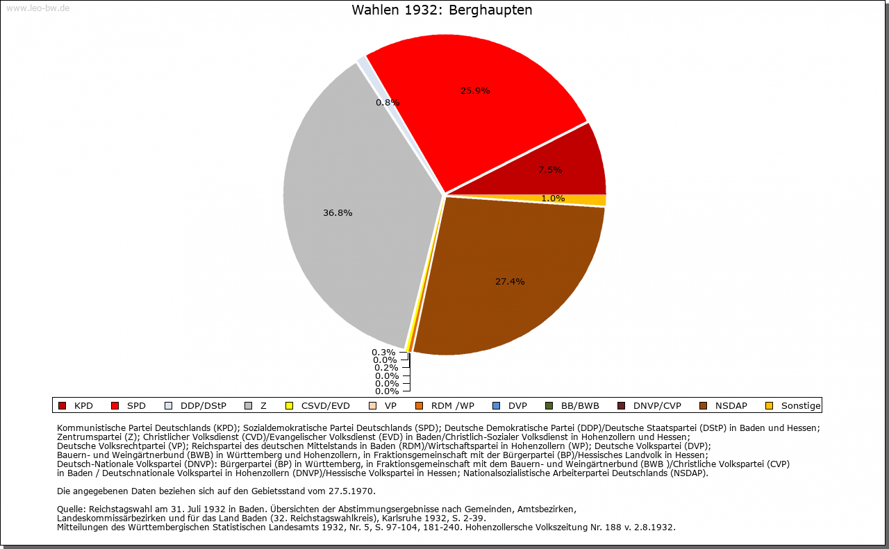 | Geschichte: | 1277 (Корialüberlieferung 1422) Berghaubten, 1370 (Druck 18. Jahrhundert) Bergehopten, 1404 Berghopten. Ursprünglicher Name der auf dem Dorfberg über Berghaupten gelegenen Burg (Flurname: Burgstall), der auf die Siedlung überging. Diese erwuchs aus zwei verschiedenen Grundherrschaften, einem Dinghof des Klosters Schuttern in Zunsweier und einem des Klosters Gengenbach im Gewann Pfuhl. Aus letzterem wurde das von Gengenbach bis ins 16. Jahrhundert verliehene Wasserschloß Falkenweier, das 1556 abbrannte. Die Herrschaft über den gengenbachischen südwestlichen Teil der heutigen Gemarkung konnte das Bistum Straßburg an sich ziehen, sie war im 15. Jahrhundert an Diemo von Leiningen (1454), 1485 an die Pfalz verpfändet. Die Herrschaft über das nordwestliche Schutterner Gebiet, das bis 1788 noch in den Zunsweierer Bann gehörte, war über die Klostervogtei an Hohengeroldseck gekommen, sie war Anfang des 15. Jahrhunderts an die Hummel von Staufenberg, 1436-1522 mit Zunsweier an von Böcklin versetzt. Unabhängig davon war das seit 1456 bezeugte Schlößchen Вerghaupten, das 1599 als reichsunmittelbar galt, in anderem, mehrfach wechselndem Besitz, seit 1697 der Freiherren von der Schleiß, die 1788 das Schloß neuerbauten (seit 1830 Rathaus). 1504 entzog Kaiser Maximilian die Pfandschaft Berghaupten dem Pfalzgrafen und übertrug sie der Stadt Gengenbach. Nach der Restitution der Geroldsecker lösten diese sowohl den von Böcklin\'schen Teil wie den an Gengenbach gekommenen ein. Ihr Erbe Graf von Cronberg bestritt jedoch die Straßburger Lehensrechte, so daß der Bischof von Straßburg 1669 Berghaupten an die Familie von Mercy (in Gengenbach) verlieh. Diese verkauften ihre Rechte 1694 an Baden-Durlach. Doch Straßburg gab Berghaupten 1699 an die Freiherren von der Schleiß zu Lehen, die die badischen Ansprüche abkauften. Die Standesherrschaft Berghaupten steuerte zur Reichsritterschaft, sie fiel 1806 an Baden. Verwaltungszugehörigkeit wie Gengenbach. |