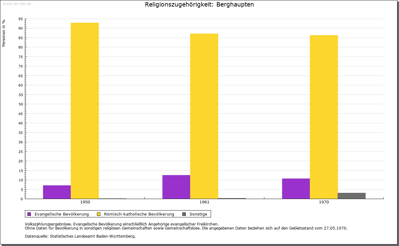 | Kirche und Schule: | Bergahupten lag im Sprengel der dem Kloster Schuttern gehörigen Pfarrkirche in Zunsweier; die 1512 genannte Kapelle St. Georg gehörte wohl zunächst zur Burg Berghaupten. Daneben bestand im gengenbachischen Schlößchen Falkenweier eine Kapelle »ULF zu den vier Stegen«, die mit dem Schloß 1556 abbrannte. 1736 Errichtung einer Pfarrkuratie mit Kirche St. Georg von 1750/52, 1924 vergrößert und 1956 modern umgebaut. Seit 1813 Pfarrei für die gesamte Gemeinde. Evangelische zur Pfarrei Gengenbach. |