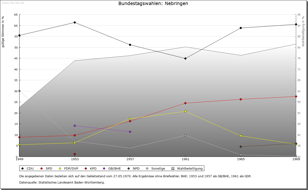 | Geschichte: | 11. Jahrhundert (Abschrift 16. Jahrhundert) Neberingen, 1292 Nebringen (Personenname). Mehrere Reihengräber 1952/63 gefunden; merowingerzeitlicher Ort. Nebringen wurde 1382 mit Herrenberg von den Pfalzgrafen von Tübingen an Württemberg verkauft und teilte fortan dessen Geschicke. |