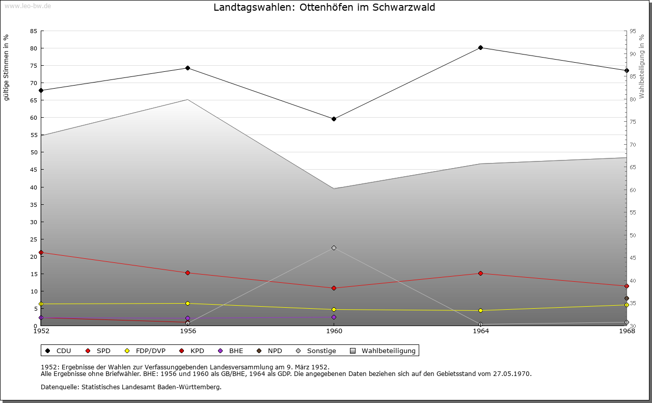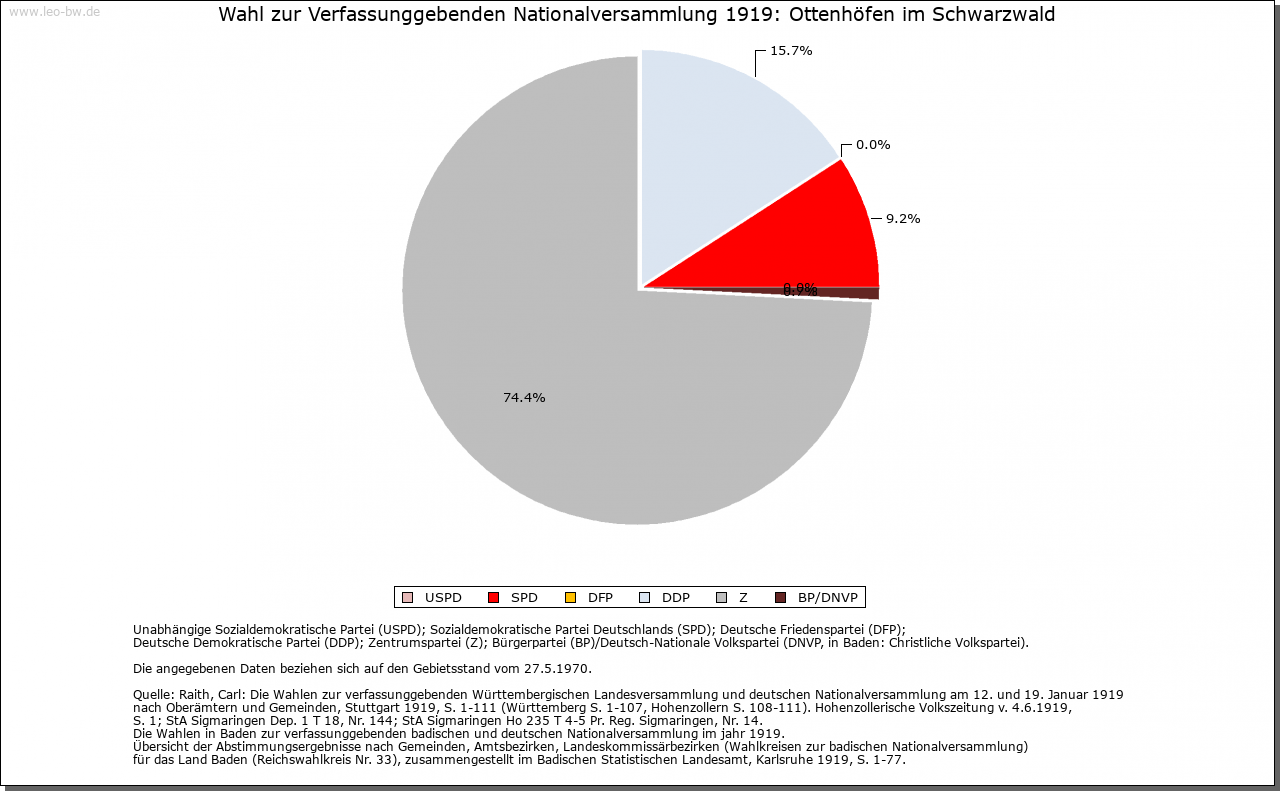 | Kirche und Schule: | Ottenhofen lag bis 1823 nördlich der Acher im Sprengel von Kappelrodeck, südlich der Acher im Waldulmer Kirchspiel. Zur 1823 errichteten Pfarrei gehören Ottenhofen, Furschenbach und bis 1946 auch Seebach. Anstelle der 1821/23 errichteten Kirche 1964/67 Neubau der dem Seligen Bernhard von Baden geweihten Pfarrkirche. Evangelische Filialkirchengemeinde von Kappelrodeck. |