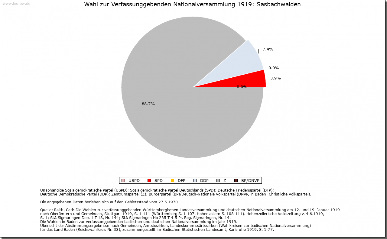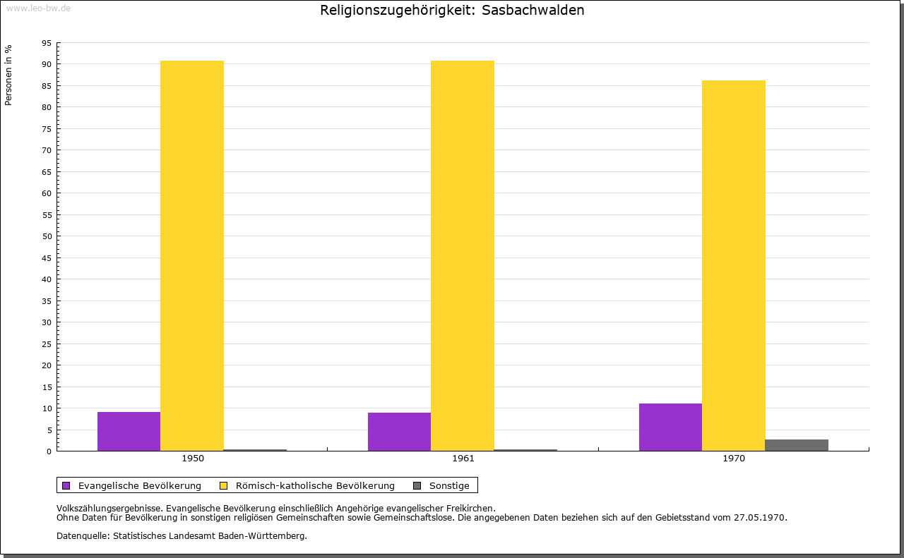 | Kirche und Schule: | Sasbachwalden lag im Sasbacher Pfarrsprengel. 1844 Bau der Kirche zur heiligen Dreifaltigkeit im Weinbrennerstil, in die man die Wallfahrt von Sasbach-Lindenhof her übertrug. 1864 Pfarrei. Evangelische zu Achern. |