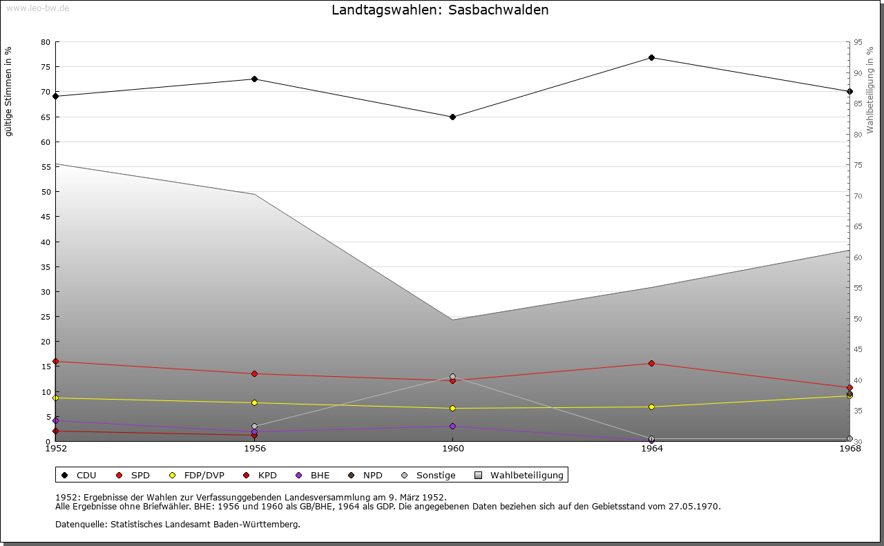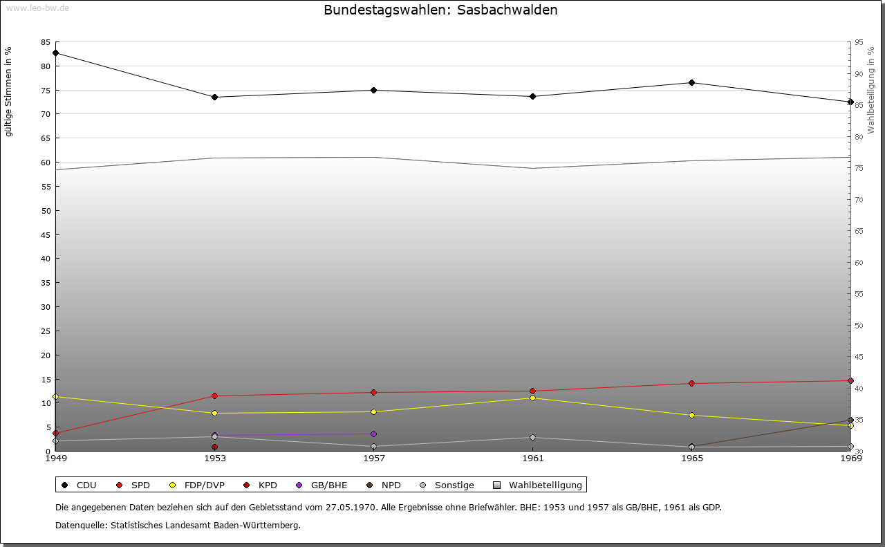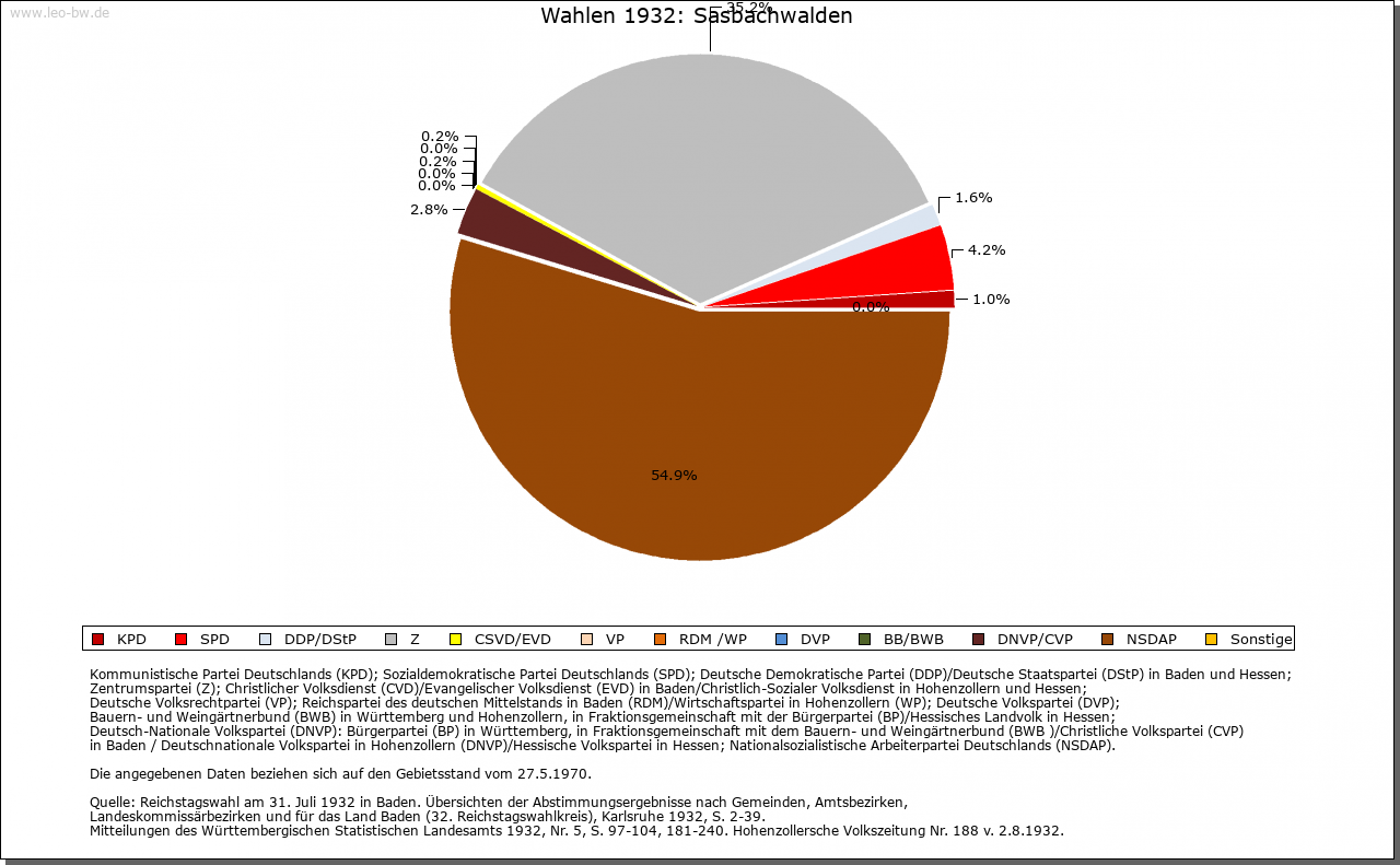 | Geschichte: | 1347 Saspachwalhen, 1534 Sachßwalden. Wohl hochmittelalterliche Rodungssiedlung entlang des Sasbachs und seiner Nebentäler. Das grundherrschaftliche Hubgericht war verbunden mit der über Brandmatt gelegenen Burg Hohenrod (1336 Hohenrad die burk), seit 19. Jahrhundert im Volksmund Brigittenschloß genannt. Die mit Burkhard von Rode 1207 erstmals bezeugte Burg war der Stammsitz der später Roeder (1247 erstmals) genannt, weitverzweigten und vor allem in badischen Diensten stehenden Ministerialenfamilie. Der Zweig der Roeder von Hohenrod im 16. Jahrhundert ausgestorben. 1336 war die Burg Straßburger Lehen der Roeder, die sie aber 1339 an den Markgrafen von Baden verkauften und wieder zu Lehen erhielten. Die schon im 16. Jahrhundert verfallene Burg wurde 1871 durch die Herren von Roeder zurückerworben. Sasbachwalden gehörte in das Gericht Sasbach der Herrschaft Oberkirch, erst im 19. Jahrhundert wurde es eigene Gemeinde. |