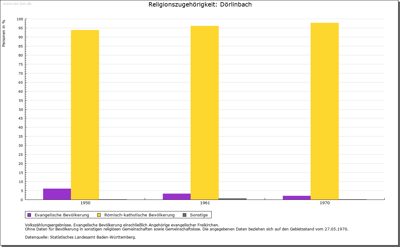 | Kirche und Schule: | 1132 wurde in Dörlinbach eine Dreifaltigkeitskirche geweiht. Dörlinbach gehörte in das Kirchspiel Schweighausen, wurde 1922 Kuratie, 1962 Pfarrei. Die katholische Kirche St. Johannes der Täufer wurde 1922/23 am alten Platz errichtet. Evangelische nach Seelbach. |