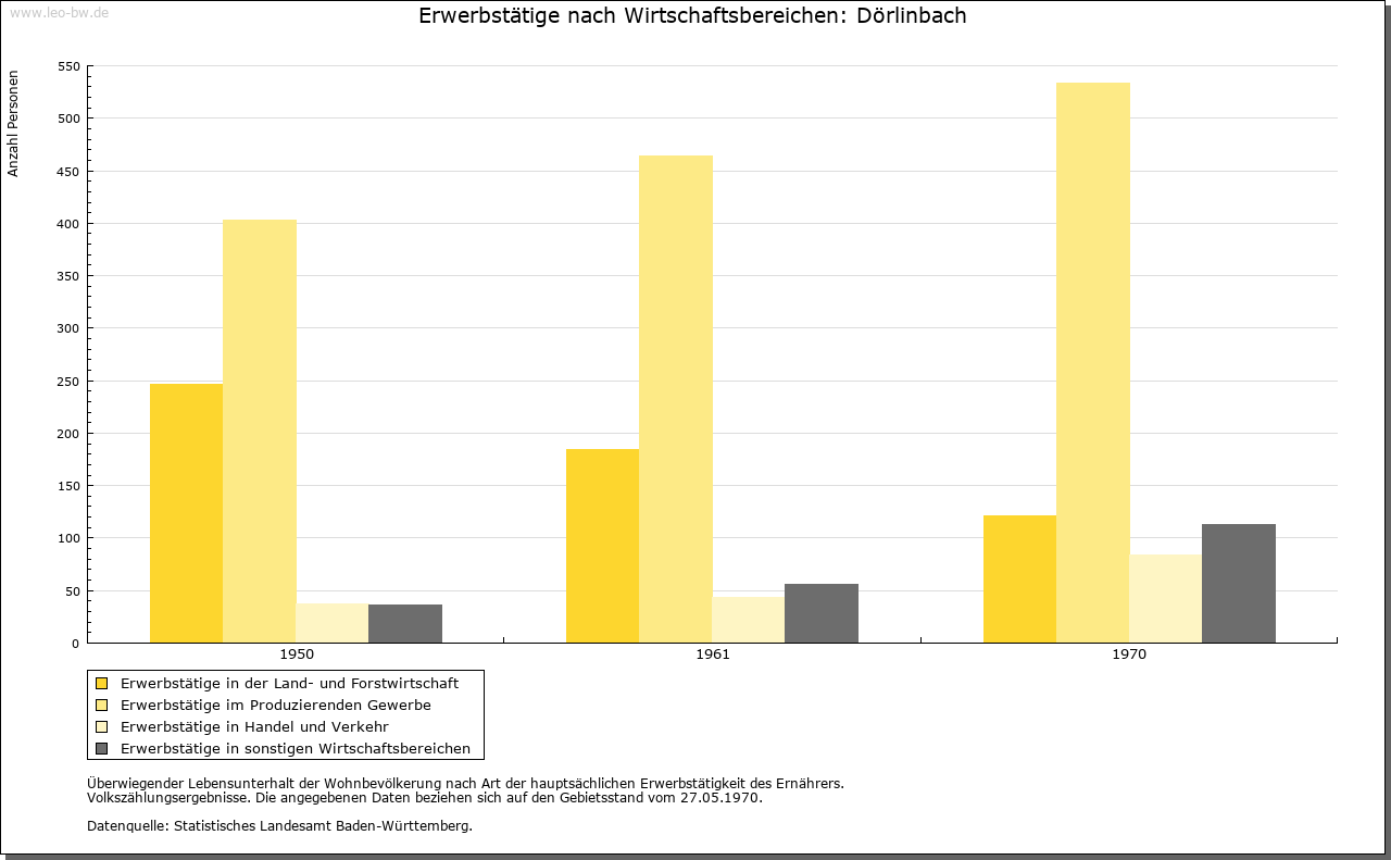 | Ortslage und Siedlung (bis 1970): | Streusiedlung an der oberen Schutter mit geringer dörflicher Verdichtung an der Einmündung des Prinschbachs und am gegenüberliegenden westlich Talhang. Auf der Talsohle mehrere Fabriken; bäuerliche Einzelhöfe und Weiler an den unteren Hängen des Schuttertals und in den Seitentälern. |