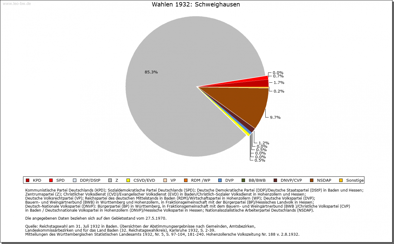 | Geschichte: | 1132 (Корialüberlieferung 17. Jahrhundert) Svechusen, 1181 Sweigkhusen, von swaiga = Weideplatz. Wohl hochmittelalterlicher Ausbau von Ettenheimmünster her. Nach dem Ort nannten sich 1219 Kuno (in der Umgebung der Üsenberger) und 1291 Chiselinc. Die im 14. Jahrhundert auftretenden Meier von Schweighausen gehören zu den Meier von Kürnberg (Ruine bei Bleichheim, Landkreis Emmendingen). Überragende Grundherren waren mit über 40 Lehen die Hohengeroldsecker, denen auch die Vogtei über das dem Kloster Ettenheimmünster gehörende Dorf zustand. 1452 verpfändete Geroldseck die Steuer an den Abt des Klosters. Nach dem Tode des letzten Geroldseckers konnte sich das Hochstift Straßburg als Orts- und Landesherr durchsetzen, endgültig 1740 (vgl. Ettenheimmünster). Amtszugehörigkeit wie Dörlinbach. |