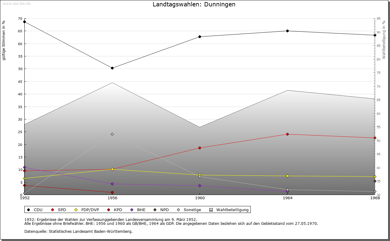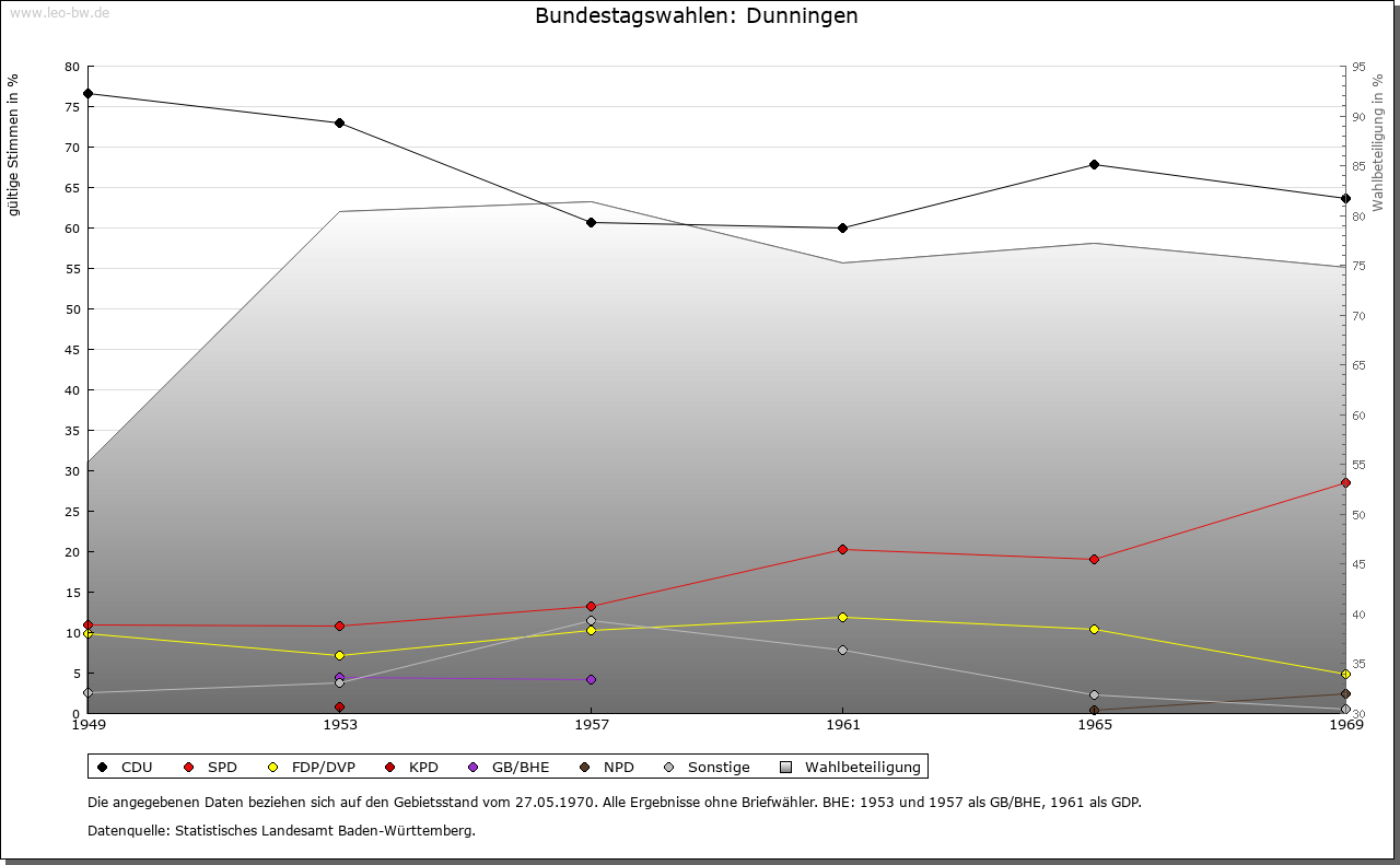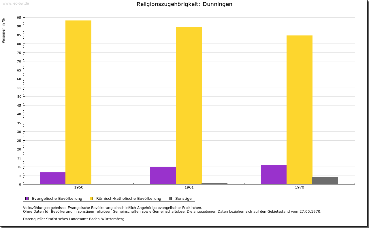 | Geschichte: | In der umfangreichen Schenkung des Grafen Gerold an das Kloster St. Gallen von 786 findet sich mit der urkundlichen Erstnennung auch Dunningen (»Tunningas«), wobei Gerolds Anteil an der dortigen Kirche ausdrücklich ausgenommen wird. Auf Dunningen (»Tiuinuuang«, »Tiunang«), dessen Unterscheidung von dem bei Trossingen gelegenen Tuningen in den mittelalterlichen Quellen allerdings nicht immer eindeutig ist, dürfte es sich auch beziehen, wenn König Ludwig das Kind 902/905 Fiskalgut an das Kloster St. Gallen vertauscht. Unter den frühesten Vergabungen an das 1083 gestiftete Kloster St. Georgen erscheinen auch Güter in Dunningen, 1179 wird der Abtei der auffallend verdichtete Besitz zu »Tuningen« von Papst Alexander III. bestätigt. Als Grundherren begegnen in Dunningen weiterhin die Klöster Rottenmünster seit 1295, Alpirsbach seit 1309, Oberndorf (Augustinerinnen) seit 1331 und später auch Wittichen. Ortsadel erscheint mit »Burchardus de Dunningen« lediglich 1222. Eine herausragende Rolle über mehrere Generationen als Kirch- und Patronatsherren sowie mit Anteilen an der Grund- und Leibherrschaft in Dunningen spielen die seit 1315 hier in den Quellen belegten Herren von Kirneck. 1336 wird Bruno von Kirneck als Kirchherr zu Dunningen genannt, 1352 erwirbt Johann von Kirneck der Junge das Patronatsrecht vom Rottweiler Patrizier Johannes Kanzler. Unter dem wachsenden Druck der in den Dunninger Filialorten Herrenzimmern und Seedorf herrschenden Herren von Zimmern geben die Kirneck bis zur Mitte des 15. Jahrhunderts schrittweise ihre Position in Dunningen auf, zuletzt 1465 ihre bei der Kirche gelegene Burg, und 1471 können die Zimmern auch Kirchensatz und Zehnten erwerben. Stetig wachsender Besitz von Bürgern, Stiftungen und Klöstern der aufstrebenden Reichsstadt Rottweil lässt sich bis in das 14. Jahrhundert zurückverfolgen. Die neuere Forschung sieht das reichsunmittelbare Dorf Dunningen, dessen Gemeinde sich 1435 freiwillig durch Vertrag der Herrschaft Rottweils unterstellt, als Bestandteil einer in Rottweil konzentrierten lehenbaren Reichsvogtei in der Hand der Herzöge von Zähringen und später der Herzöge von Teck. Rottweil, das 1435 neben der über die Freie Pürsch bereits innehabenden Hochgerichtsbarkeit auch die Ortsherrschaft und die Einsetzung des Vogts erlangt, während die Gemeinde sich die Zuständigkeit für Schultheiß und Gericht vorbehält, gliedert Dunningen in sein Obervogteiamt ein. 1523 erwirbt die Rottweiler Heilig-Kreuz-Bruderschaft von den Herren von Zimmern Kirchensatz, Großzehnt und weitere Rechte in Dunningen. 1739 verteilt sich die zersplitterte Dunninger Grundherrschaft auf mehr als zwölf Inhaber: Die Reichsstadt und die vom Magistrat verwalteten frommen Stiftungen kommen auf einen Anteil von 52,2 Prozent an der Dunninger Grundherrschaft, weitere 15,4 Prozent entfallen auf Rottweiler Kirchen, Altarpfründen, Klöster, Orden und Bürger, 7,4 Prozent auf Heiligenpflegen der reichsstädtischen Landschaft und lediglich 18,7 Prozent auf »ausländische« Klöster (St. Georgen in Villingen, Wittichen, Rottenmünster) und sonstige Inhaber; 6 Prozent muss sich Rottweil mit auswärtigen Berechtigten teilen. Die Rottweiler Heilig-Kreuz-Bruderschaft unterhält in Dunningen als Großzehntherrschaft eine Zehntscheuer in der Nähe der Kirche. Die »gemaind Tuningen« begibt sich 1435 freiwillig durch Vertrag unter Rottweiler Herrschaft. Seit 1437 trägt die Bauernschaft einen jahrelangen Streit mit den Herren von Kirneck wegen eines Hauses an der Kirchhofmauer aus, das die Dunninger für sich beanspruchen. Die Gemeinde verfügt mit Allmenden von angeblich 4148 Jauchert (1810) über umfangreichen genossenschaftlichen Gemeinbesitz (gegenüber 3550 Jauchert individuell genutztem Grund und Boden 1773), von dem mit Zustimmung der Obrigkeit bereits seit 1678 Verkäufe stattfinden. Die große Gemeinde unterhält im ausgehenden 18. Jahrhundert zur Erfüllung ihrer öffentlichen und genossenschaftlichen Aufgaben ein umfangreiches Ämterspektrum von Vogt, Schultheiß und elf beziehungsweise zwölf Richtern über Feldrichter, Bauernvögte, Feuerbeschauer, Schwörmeister, Kirchenvögte, Hirtenmeister, Ross- und Viehschätzer, Bettelvogt, Kirchen- und Kapellenpflegern bis hin zu Waldknecht, Holzschläger, Feuerreitern, Spritzenmeister, Nachtwächter, Brunnenmacher, Büttel, Mesner, Schulmeister und Hebamme. Zusammen mit seinen Kollegen aus Deißlingen und Winzeln hat der Dunninger Ortsvorsteher im 18. Jahrhundert als Stabsvogt eine quasiamtliche Sprecherfunktion innerhalb der reichsstädtischen Landschaft. In den mit Unterbrechungen von 1684 bis 1783 währenden Untertanenkonflikten im Rottweiler Landgebiet um die Verteilung der Militär- und Steuerlasten zwischen Stadt und Land sowie dem städtischen Wirtschaftszwang über die Landorte als den zentralen Streitpunkten nehmen die Gemeinde Dunningen und ihre Stabsvögte vielfach eine Führungsrolle wahr. In besonders markanter Weise gilt dies im zweiten Landschaftskonflikt von 1773 bis 1783 für »Landtschaffts Vogt« Matheus Müller, einen reichen Großbauern und Gastwirt aus Dunningen. Zuvor dem Obervogteiamt der Stadt Rottweil eingegliedert, fiel Dunningen 1803 an Württemberg. Bis 1808 gehörte es zum Landoberamt, danach zum Oberamt Rottweil. |