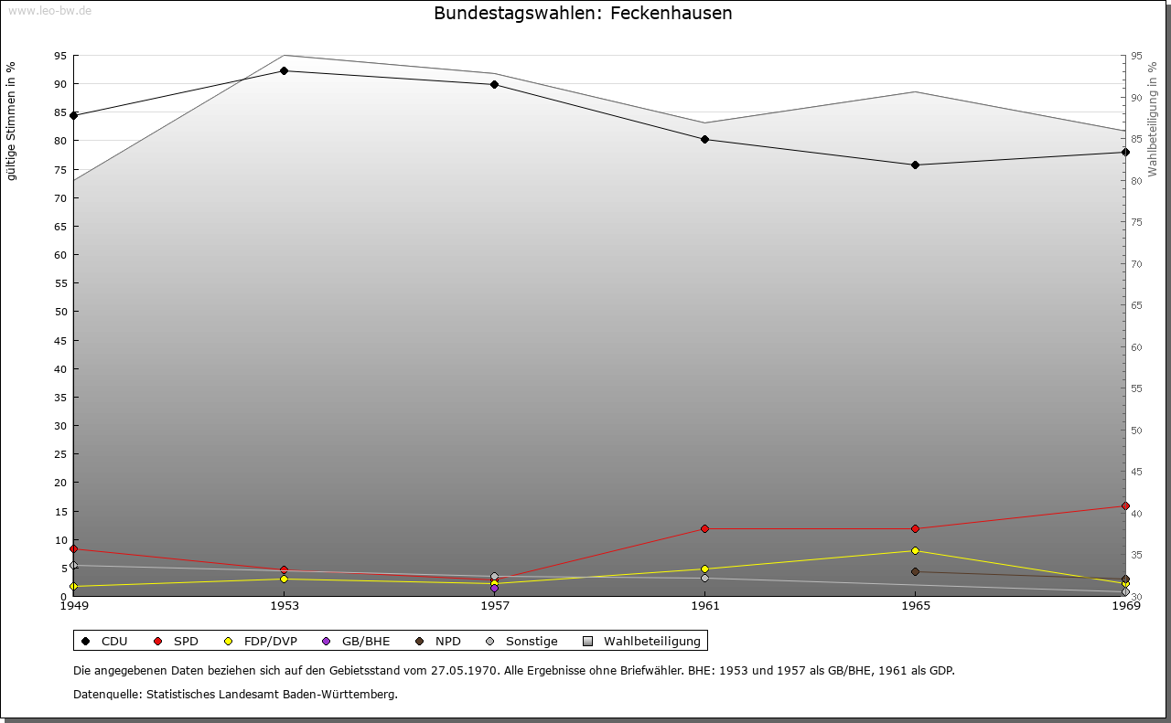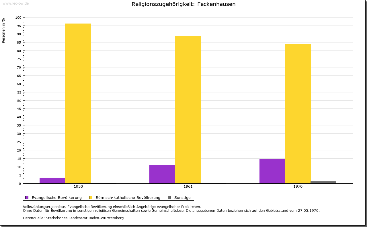 | Geschichte: | 902 wird der Ort urkundlich erwähnt, als das Kloster St. Gallen tauschweise Güter aus königlichem Besitz erhielt. An der Wende vom 13. zum 14. Jahrhundert ist mehrfach von einem Geschlecht von »Feckenhausen« die Rede, dessen Mitglieder als Bürger der Stadt Rottweil bezeichnet werden. Lediglich von Mechthild von Feckenhausen aber ist bekannt, dass sie auch im gleichnamigen Ort Güter besaß. Vor 1379 gehörte Feckenhausen zur Grafschaft Hohenberg. Damals verkaufte Graf Rudolf den Ort an den Rottweiler Bürger Konrad Bock, behielt sich aber den Wiederkauf vor. 1468 belehnte das Haus Habsburg, das 1381 die Grafschaft Hohenberg erworben hatte, den Rottweiler Bürger Balthasar Lutz mit Feckenhausen. Dieser wiederum veräußerte den Ort einschließlich der Ortsherrschaft 1514 an das Heilig-Geist-Spital in Rottweil. Danach vergab Habsburg Feckenhausen zusammen mit dem Jungbrunnen dem Spital zu Lehen. Feckenhausen lag im Bezirk der Freien Pürsch und somit übte die Reichsstadt die Hochgerichtsrechte aus. Die Dorfordnung von 1514 entstand vermutlich im Zusammenhang mit dem Übergang des Dorfes an das Spital. Neben einem Strafenkatalog enthält sie Regeln für das so genannte Jahrgericht. Im 17. Jahrhundert wurde die Niedergerichtsbarkeit des Spitals in Feckenhausen mehrfach vom Obervogt bestritten. Schließlich gelang es aber dem Spital, seinen Anspruch mit Hilfe des Rates durchzusetzen. Daneben bestand ein Dorfgericht, dem vier Mitglieder, darunter Vogt und Untervogt, angehörten. Das Vogtamt bekleidete normalerweise einer der Drittelmaier. Ab 1362 konnte das Spital nach und nach den gesamten Groß- und Kleinzehnt erwerben. Den letzten Anteil gaben die Rottweiler Johanniter 1550 gegen einen ewigen Zins ab. Ein Halbteil des Kornzehnten war Lehen der Grafen von Sulz. Um den Neubruchzehnt kam es Ende des 18. Jahrhunderts zu langwierigen Auseinandersetzungen mit dem Pfarrer von St. Pelagius in Rottweil-Altstadt. Kloster Rottenmünster hatte seit der Frühzeit bedeutenden Grundbesitz am Ort. Bereits 1301 erhielt es von Mechthild von Feckenhausen einen Hof und ein Gütlein in Feckenhausen, 1327 besaßen die Zisterzienserinnen fünf Höfe. Das Rottweiler Heilig-Geist-Spital verfügte in Feckenhausen seit 1306 über Güterbesitz, der in der Folgezeit zielstrebig ausgebaut wurde. Mit dem Erwerb der Ortsherrschaft 1514 kam auch das so genannte Bulachgütlein in den Besitz des Spitals. Es hat seinen Namen wohl von der Familie gleichen Namens, die Ende des 14. Jahrhunderts auf dem Jungbrunnen saß. Weitere bedeutende Erwerbungen gelangen 1579, 1586, 1673 und 1786. Im Zuge dieser Zukäufe kam auch das Widumgut von St. Pelagius in Rottweil-Altstadt in die Hände des Spitals (1579/1581). Feckenhausen fiel 1803 an Württemberg, Stadtoberamt Rottweil, 1806/08 Oberamt Rottweil. |