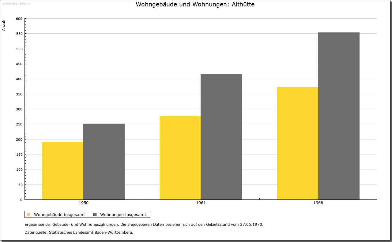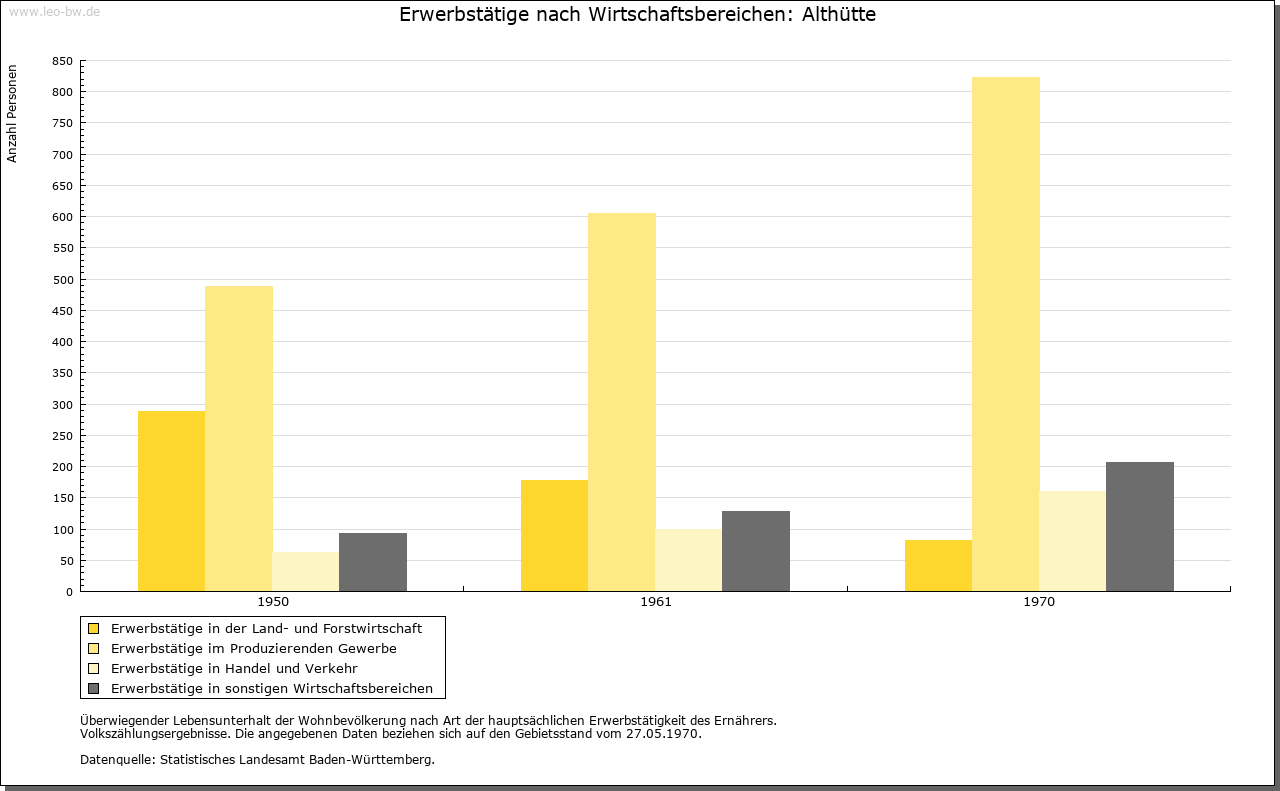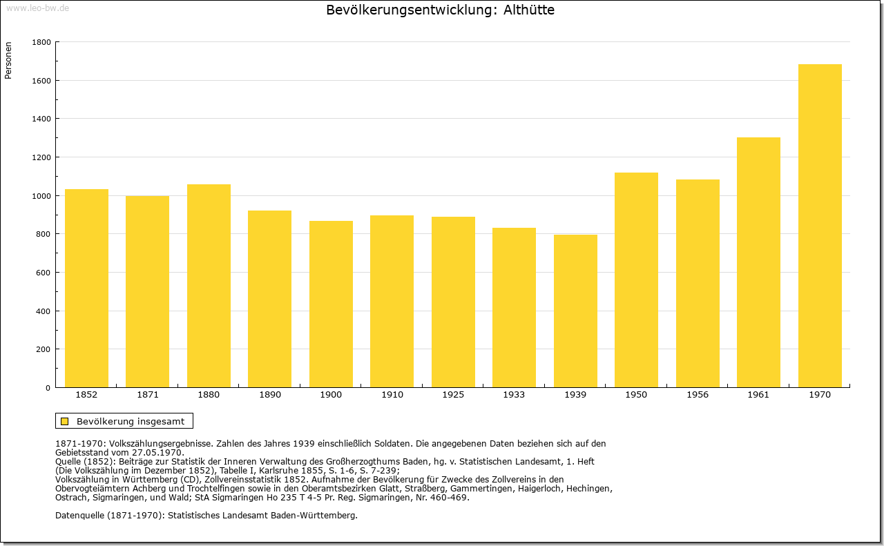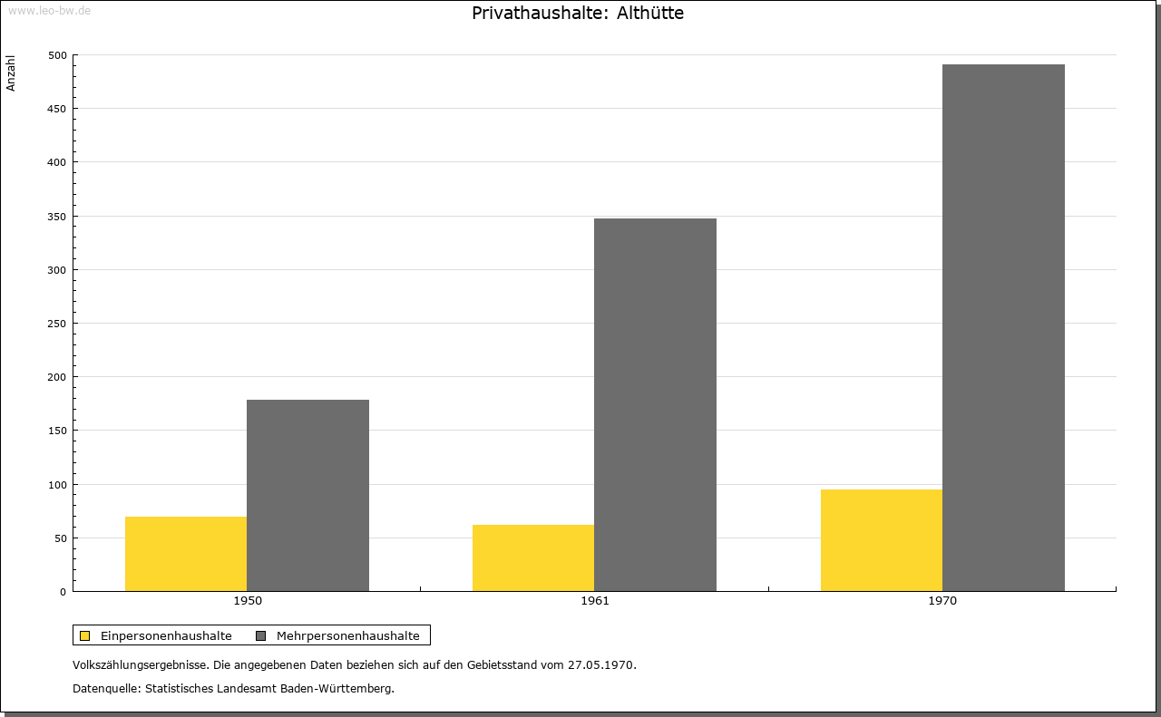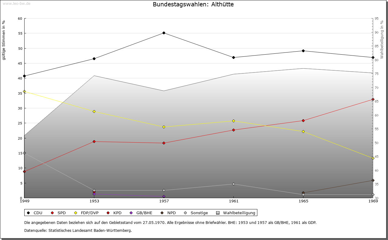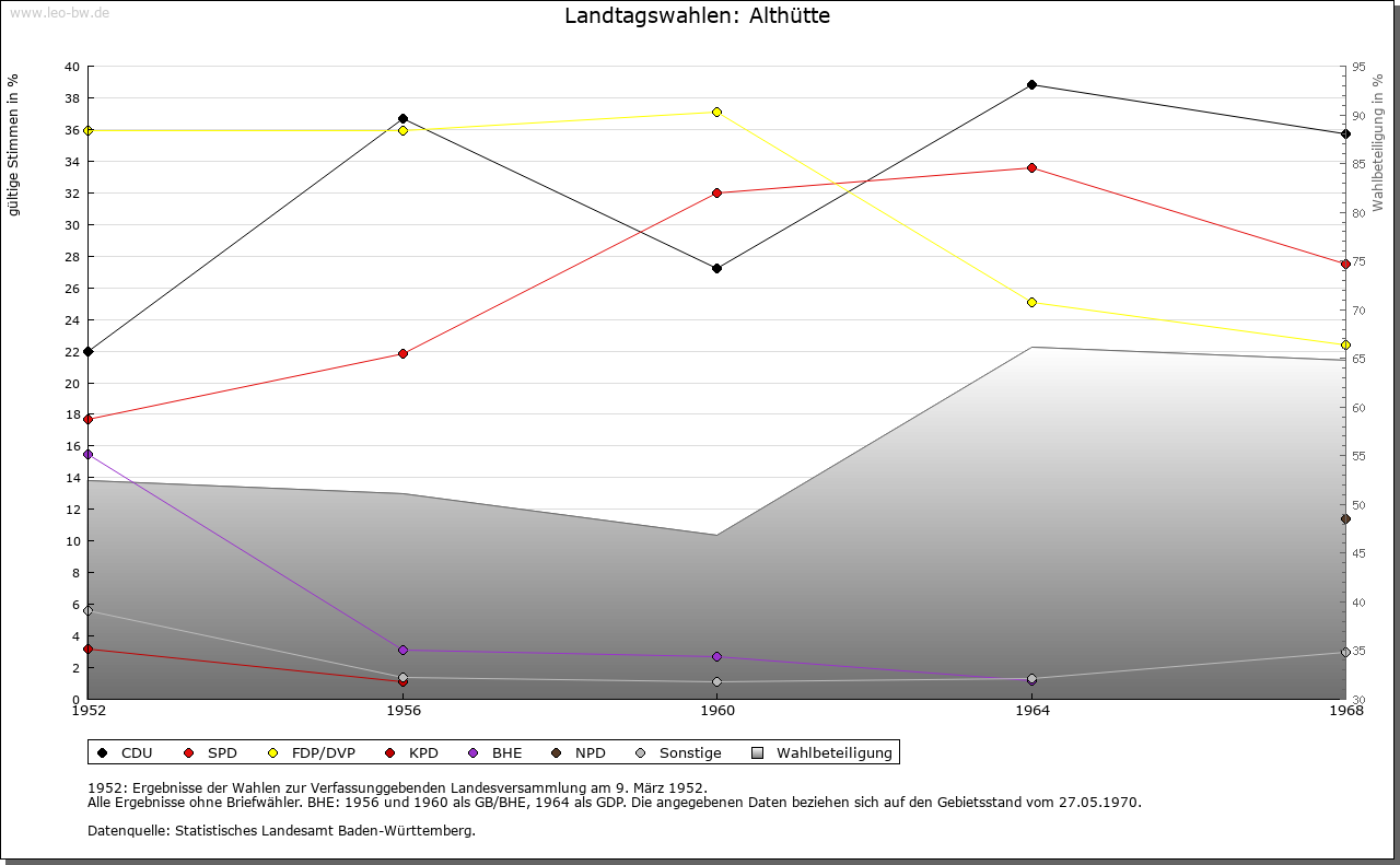 | Geschichte: | 1459 zu der Glashütten, 1569 das weiller zur altten Glaßhütten. Bis zum Ende des 16. Jahrhunderts Standort einer Glashütte. Gründung auf ehemals reichenbergischem Boden, gehörte zum Unteramt Reichenberg des Oberamtes, seit 1938 Landkreis Backnang. Die politische Gemeinde Althütte wurde 1819 begründet. |
