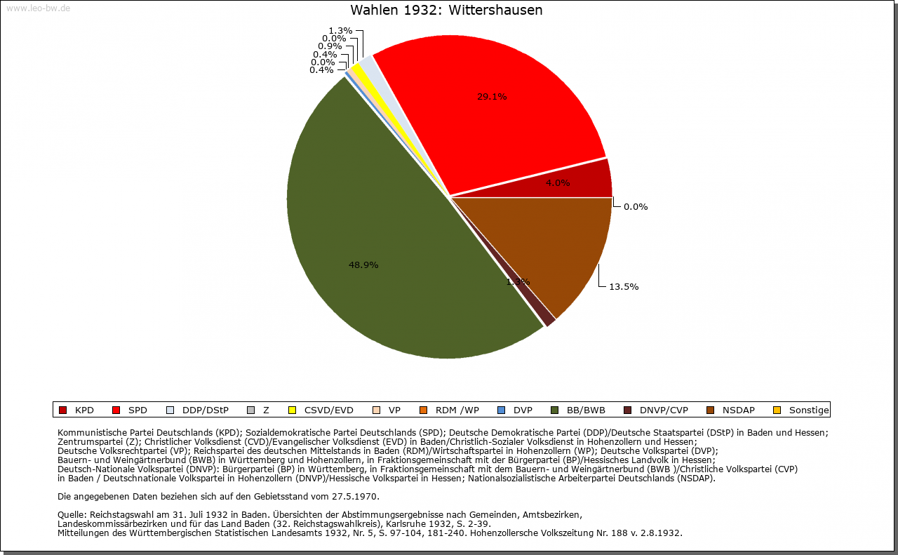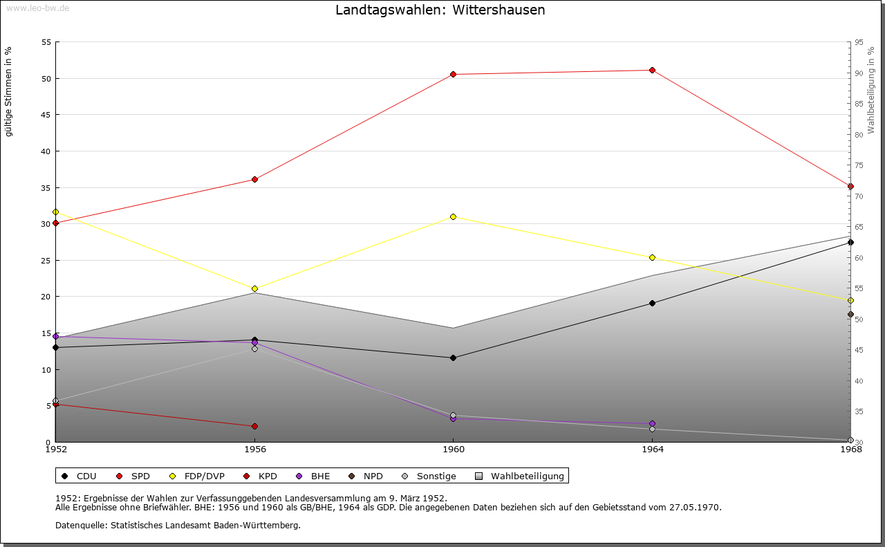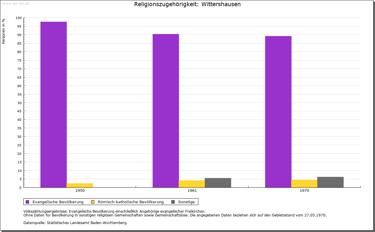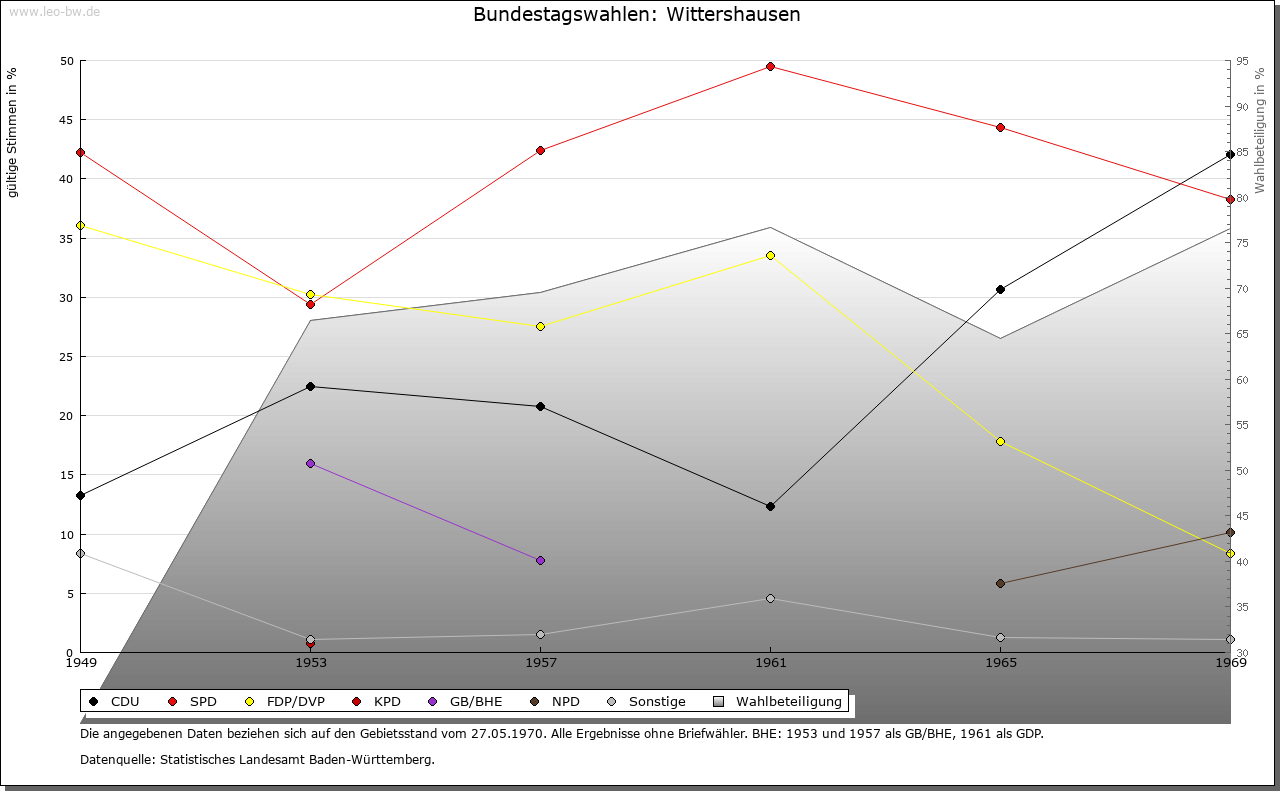 | Geschichte: | Wittershausen wurde 1139 als »Witershusen« in einem Privileg von Papst Innozenz erstmals erwähnt, als er Besitz des Klosters Gengenbach bestätigte. Der erste urkundliche Nachweis von Besitz des Klosters Alpirsbach stammt von 1313, als das Kloster von Berthold genannt »Winmann de Withershusen« eine beim Fronhof in Wittershausen gelegene Hofstatt zu einem Haus mit Scheuer tauscht. Ob er mit einem 1277 genannten Berthold, der als Alpirsbacher Zeuge in einer Oberndorfer Angelegenheit genannt wird, identisch ist, ist nicht erwiesen. Wittershausen gehörte zu den fünf Orten, an denen der Abt dreimal jährlich Gericht hielt. Als Klostervögte setzte Alpirsbach zuerst die Grafen von Zollern, dann vermutlich die Grafen von Sulz und Mitte des 13. Jahrhunderts die Herzöge von Teck ein. 1305 mussten diese jedoch ihre Herrschaft Rosenfeld mit Wittershausen an Württemberg zunächst verpfänden und 1317 verkaufen. Sein Vogtrecht in Wittershausen verpfändete Herzog Hermann von Teck an die Herren von Zimmern, die ihrerseits die Pfandschaft 1382 an Hans Hack von Harthausen abtraten. Als Württemberg die Alpirsbacher Vogtei übernahm, kam es wohl zwischen Kloster und Grafen zum Streit über die Rechtsverhältnisse in Wittershausen, denn der Abt ließ sich 1397/98 die volle Ortsherrschaft bestätigen. Zu diesem Zeitpunkt befand sich das teckische Vogtrecht bei den Herren von Neuneck, die wohl von Harthausen die Pfandschaft übernommen hatten oder schon vorher in den Besitz der Vogteiabgaben gekommen waren. 1399 verpfändete Württemberg das Vogtrecht an Albrecht von Neuneck. Die Pfandschaft bestand noch 1442. Wittershausen gehörte zwar fast vollständig Kloster Alpirsbach, daneben waren im 14. Jahrhundert das Kloster St. Georgen, 1514 das Dominikanerinnenkloster Kirchberg und 1506 das Augustinerinnenkloster Oberndorf am Ort begütert. Letztere besaßen zudem 1543 ein Gut, das 1580 durch Tausch an Württemberg fiel. 1534/35 fiel Wittershausen mit dem Kloster an Württemberg und gehörte nun zum Klosteramt Alpirsbach. Die Abgaben waren jetzt an die Alpirsbacher Pflege in Sulz zu entrichten. Die Vogteiabgaben gingen weiterhin an die Rosenfelder Kellerei. Kollatur und Zehnt fielen erst 1581 durch Tausch von den Grafen von Zimmern an Württemberg. 1783 gehörte ein Teil des Großen Zehnt den Freiherren von Münchingen. 1808 wurde Wittershausen dem Oberamt Sulz zugeteilt. Dem 1453 erstmals namentlich erwähnten Dorfvogt gehörte der Freihof. In der Folge sind die Dorfvögte fast durchgehend bekannt. Das Alpirsbacher Dinggericht war 1467 mit Dorfvogt und -richtern besetzt und somit gleichzeitig Dorfgericht. Zusammen mit Boll bildete der Ort den Stab Wittershausen (1499). 1728 beschwerten sich Wittershausen und Boll beim Herzog wegen der verbotenen Trennung der Alpirsbacher Lehen, 1782 war nur noch der Freihof (seit 1453 Erblehen) ungeteilt in einer Hand. Die Gemeinde hatte kein eigenes Rathaus, weshalb die Gerichte noch 1749 im Freihof stattfanden. Zum Gemeindevermögen gehörten drei Waschhäuser (1784 neues Waschhaus oben im Dorf, 1788 im unteren Dorf), alle drei wurden 1804 renoviert. Wittershausen kam 1938 zum Landkreis Horb. |