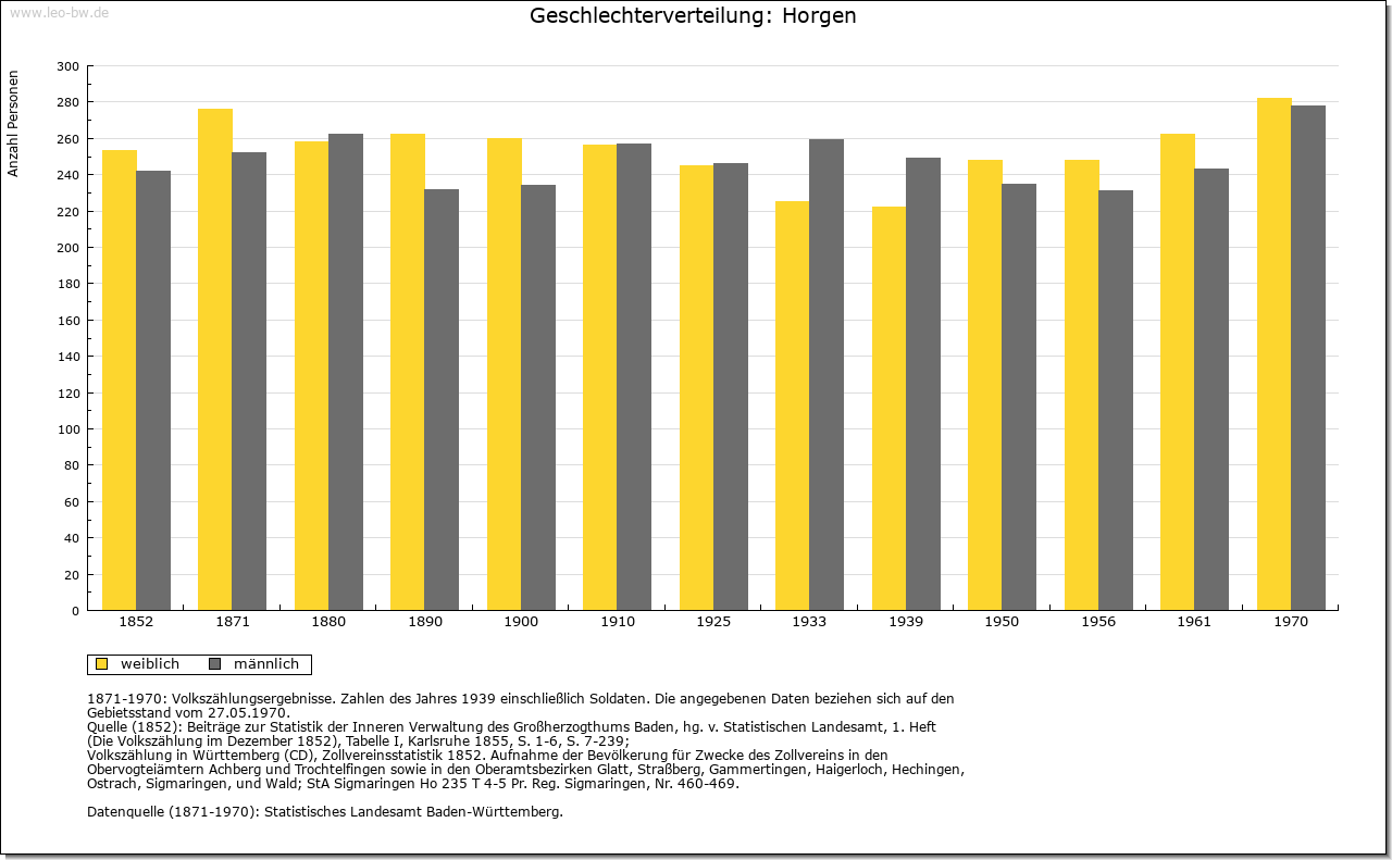 | Kirche und Schule: | Horgen war vermutlich nie Pfarrsitz, sondern seit 1488 Filiale von Heiligkreuz in Rottweil. 1635 wird eine Martinskapelle erwähnt, bei der es sich vielleicht um die ehemalige Burgkapelle handelte. Kirche St. Martin 1869-1872 im neugotischen Stil erbaut. Heute katholische Pfarrei. Die Evangelischen von Horgau zur Pfarrei Flözlingen, der Ortst. Wildenstein zur Pfarrei Deißlingen. |