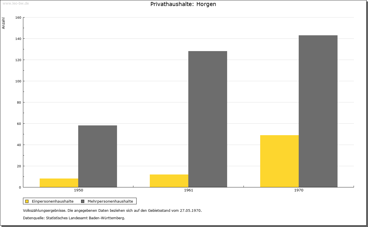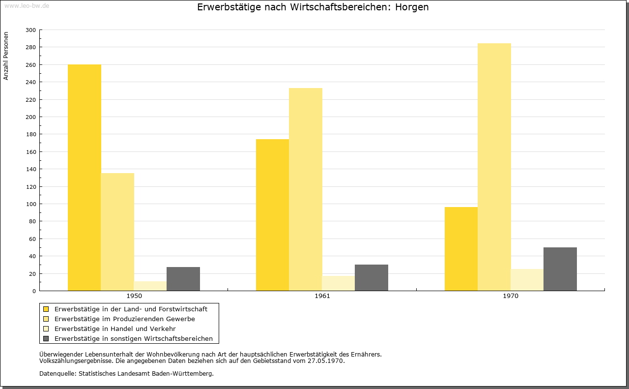 | Wirtschaft und Bevölkerung: | Die Bevölkerung lebte von Feldbau und Viehzucht. Gewerbe war aufgrund des Rottweiler Handwerkerzwangs weitgehend verboten. Eine Ausnahme machte die Horgener Mühle (mit zwei Mahlgängen und einem Gerbgang). Sie war im Besitz der Familie Münck, ab 1766 der Familie Burkard. Neben den Bauern von Horgen ließen auch die Dauchinger, Rotensteiner und z.T. Hausener ihr Getreide hier mahlen. Eine bedeutende finanzielle Rolle spielten für die Gemeinde ihre ausgedehnten Waldungen. |