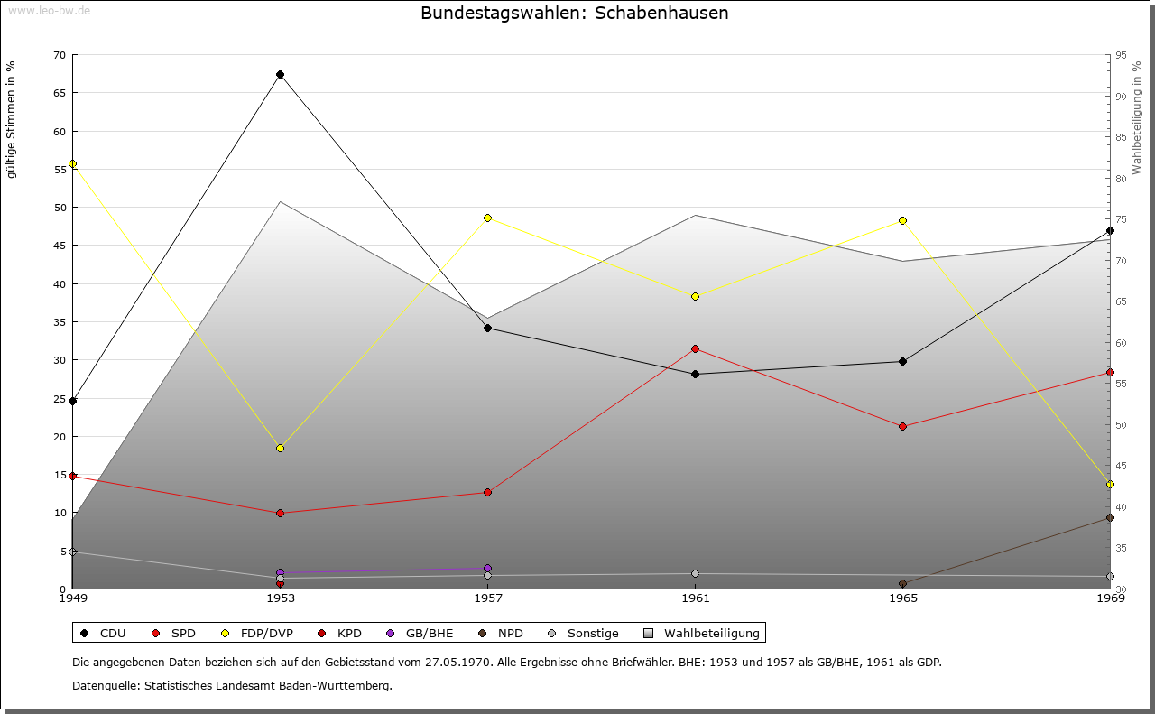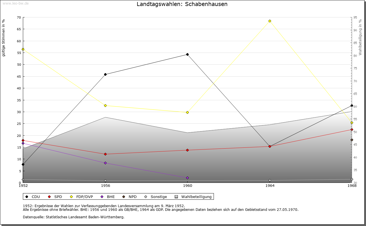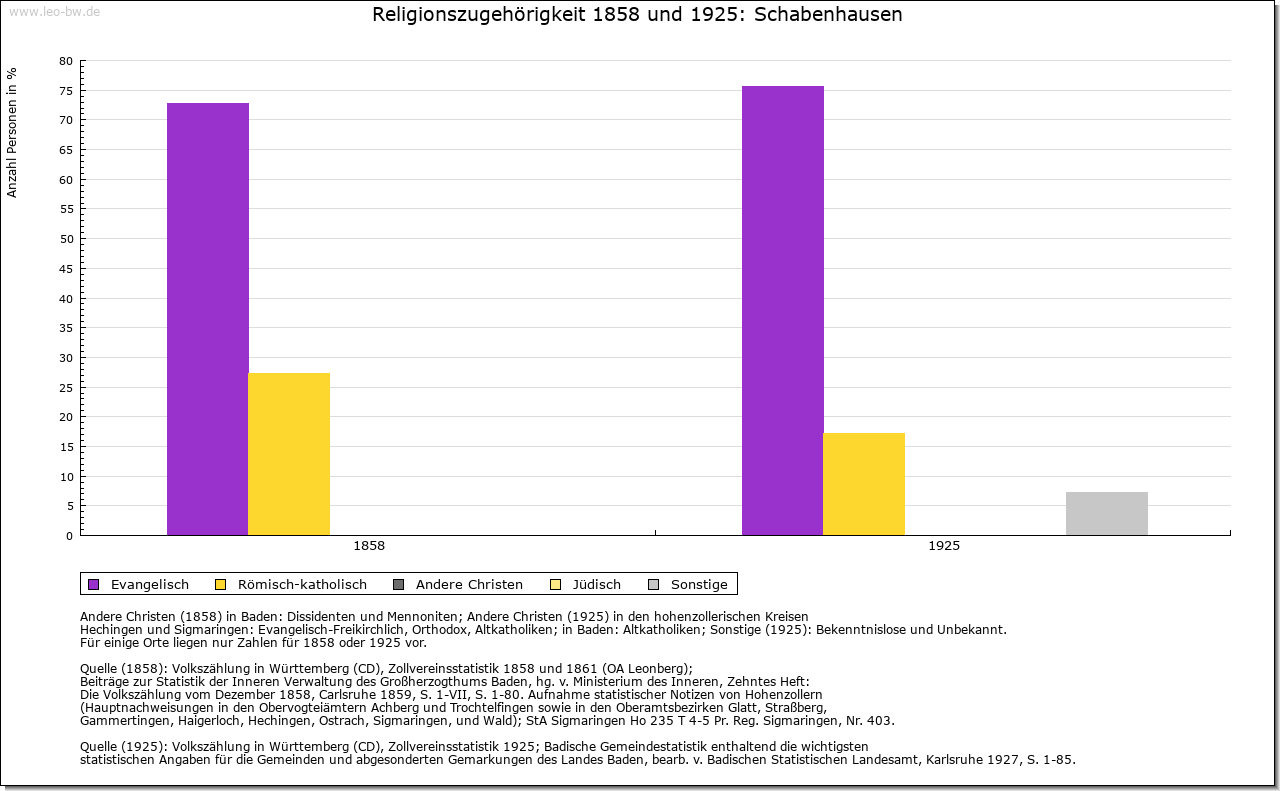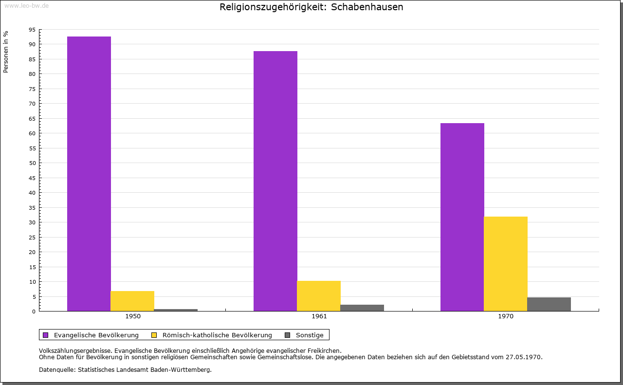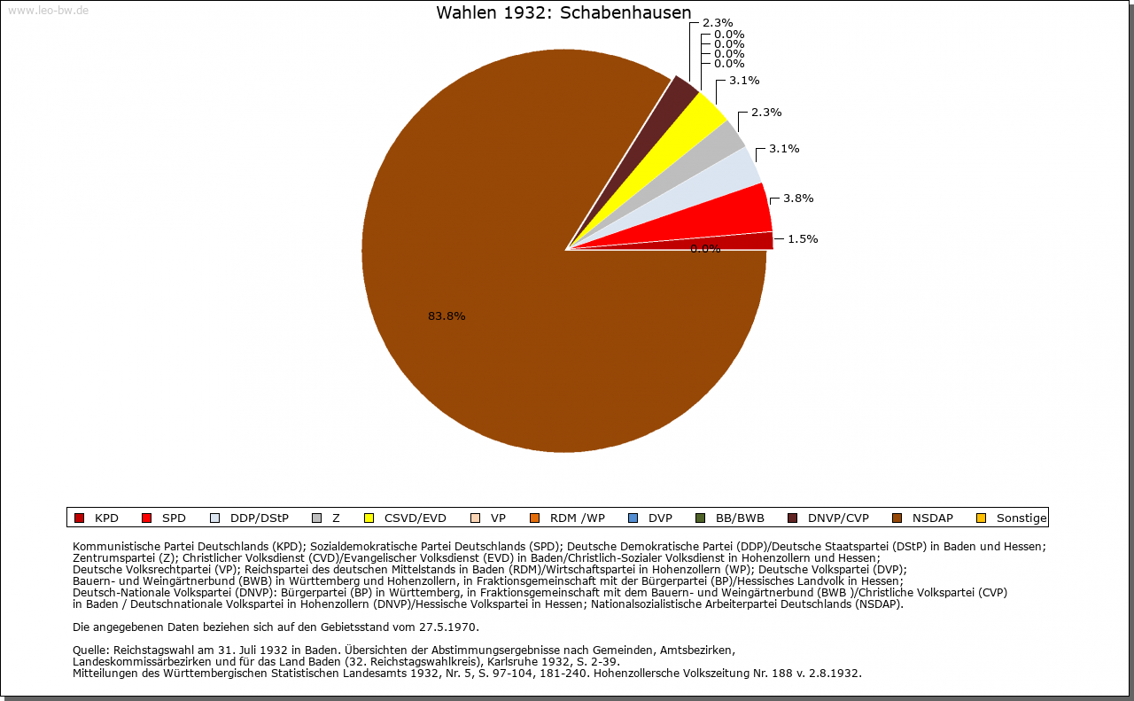 | Geschichte: | 1086 Husen, fraglich, 1094 Scheibenhusen. Frühmittelalterlicher Ausbauort. Erstnennung in den Gründungsberichten des Klosters St. Georgen. Örtliche Adelsfamilie vielleicht schon 1086 mit Ulrich von Husen bis 1344 belegt, vermutlich im Besitz der Ortsherrschaft. 1483 verkaufte die Gemeinde Niedereschach den ganzen Ort Schabenhausen, vormals von Heinrich Hinteroffen erworben, an den Rottweiler Bürger Ambrosius Hermann. Über Heinrich von Baustetten zu Horgen gelangte Schabenhausen 1502 in den Besitz des Klosters St. Georgen. Bis 1806 Klosteramt St. Georgen, dann württembergisches Oberamt Rottweil, 1810 badisches Amt/Landkreis Villingen. 1973 Schwarzwald-Baar-Kreis. |
