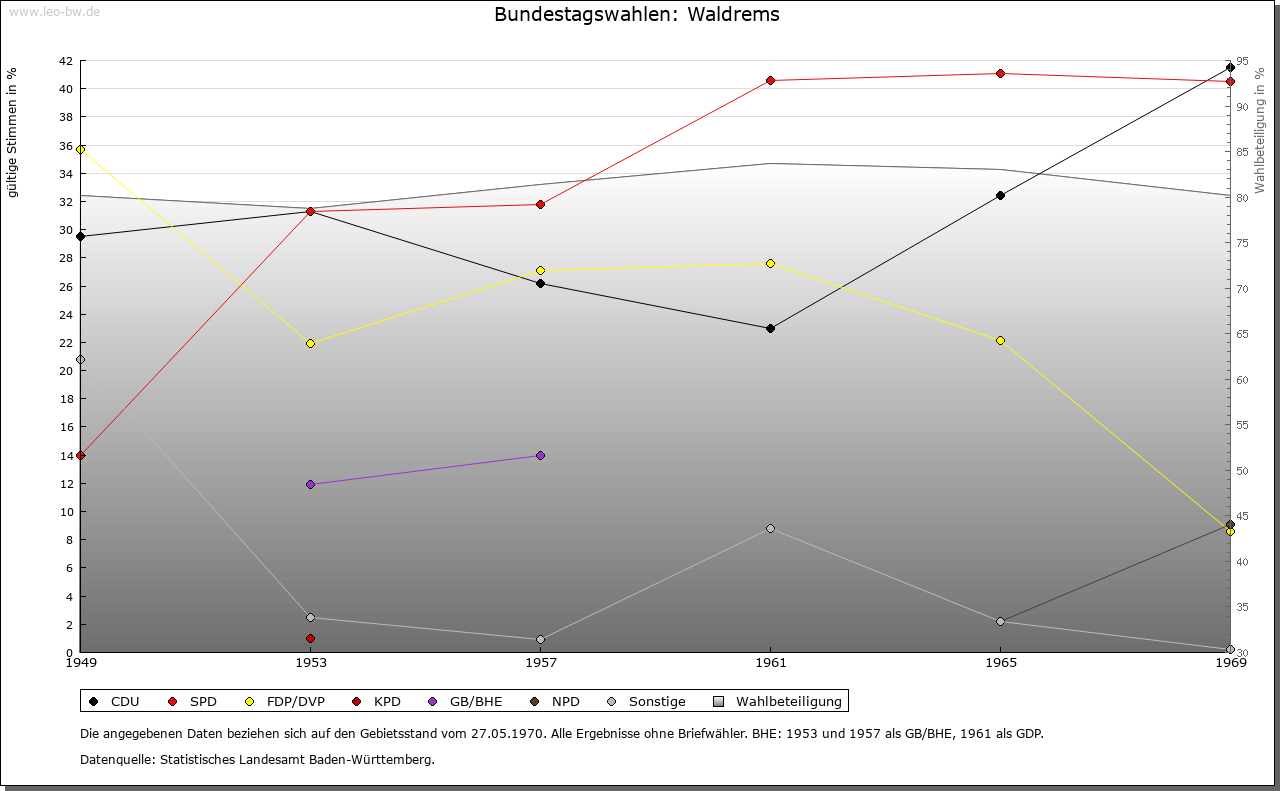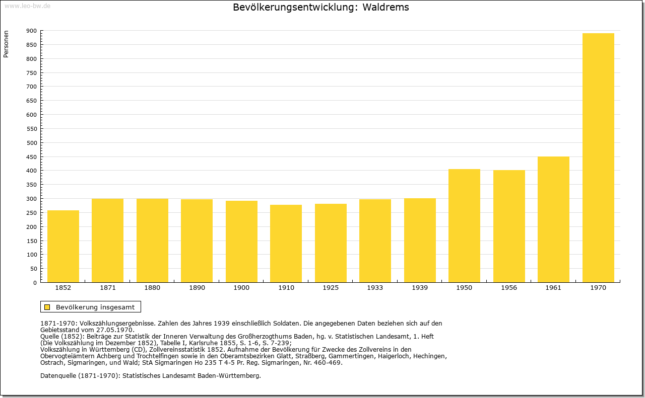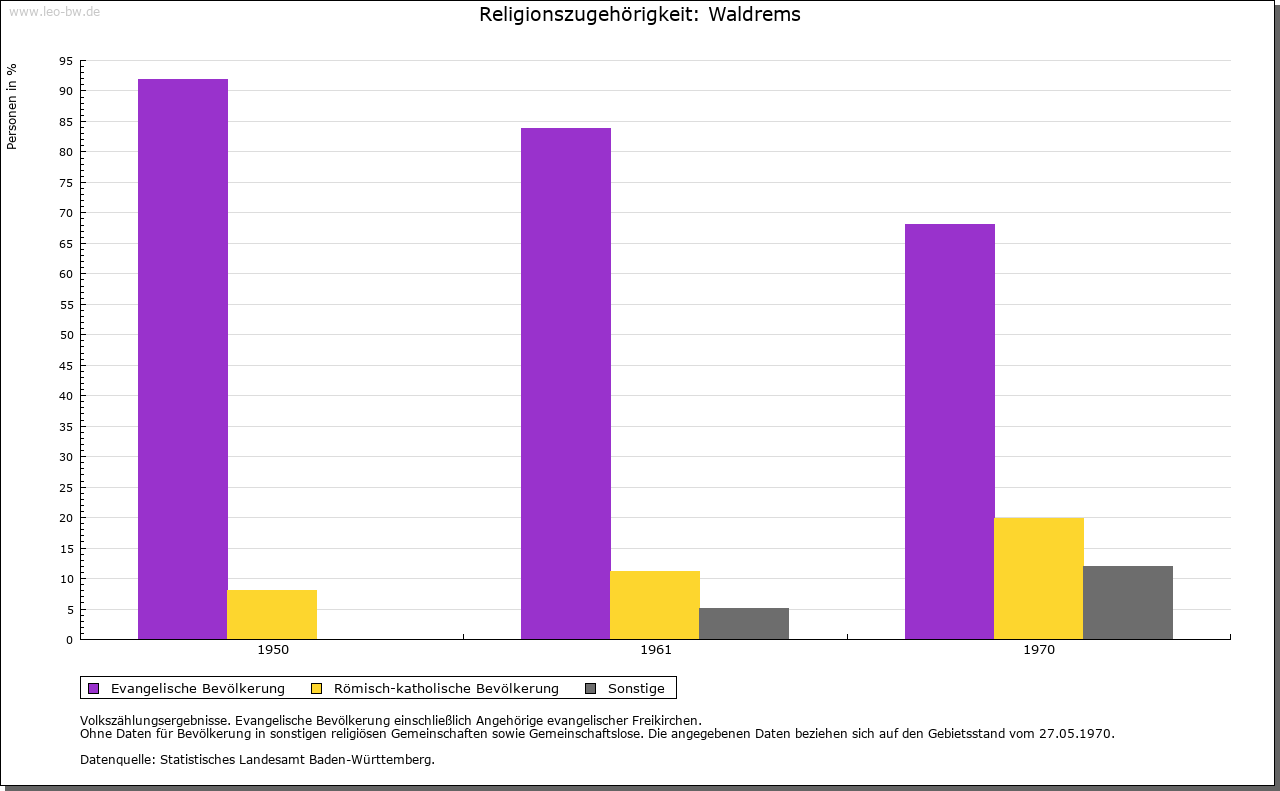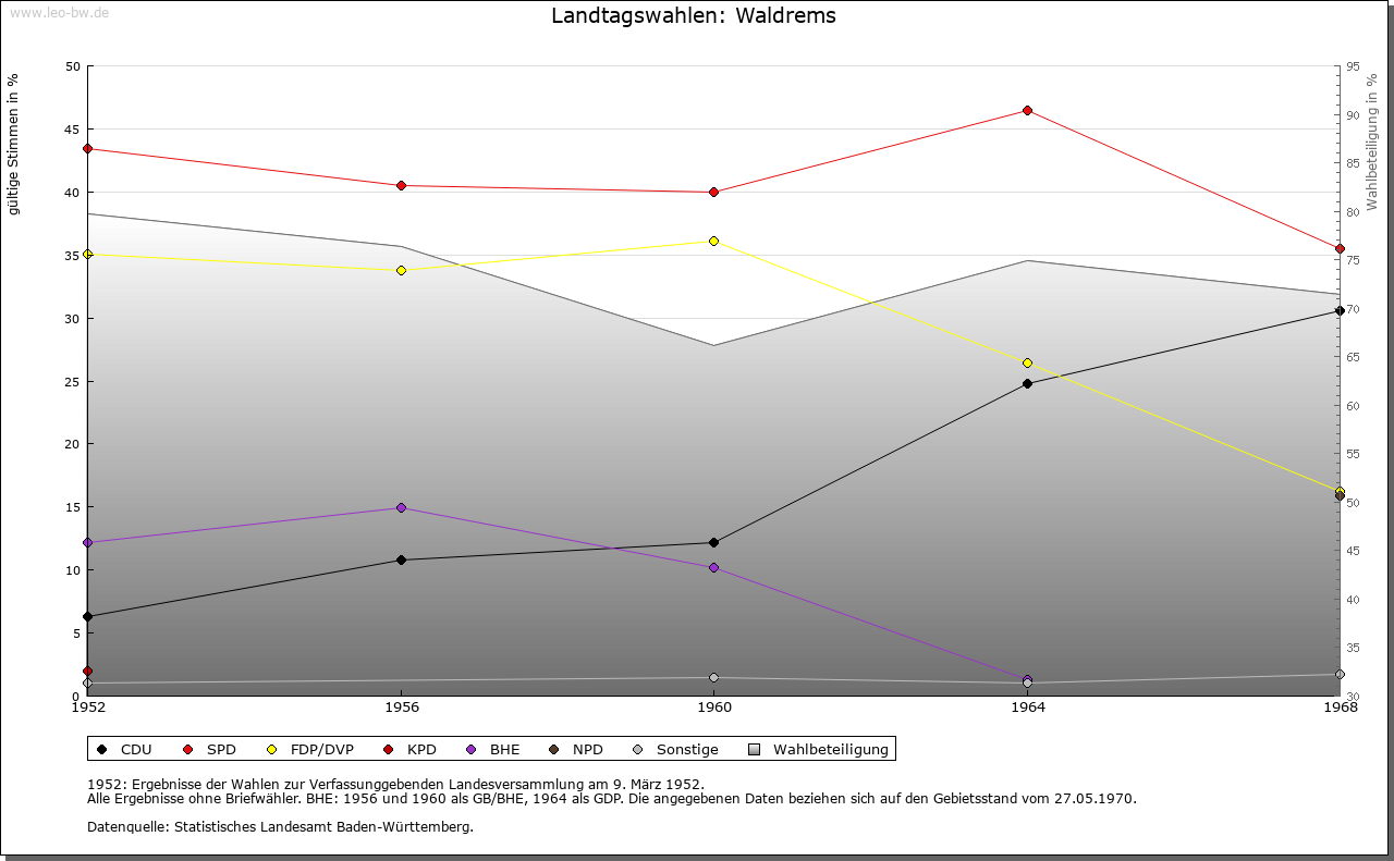 | Geschichte: | 1245 (Kopialüberlieferung 15. Jahrhundert) Remse, 1569 Waldtrembs, wohl in der jüngeren Ausbauzeit entstanden. Kam mit Reichenberg an Württemberg und wurde 1439 mit diesem an die Nothaft verpfändet. Gehörte später zum Unteramt Reichenberg des Amtes Backnang. |