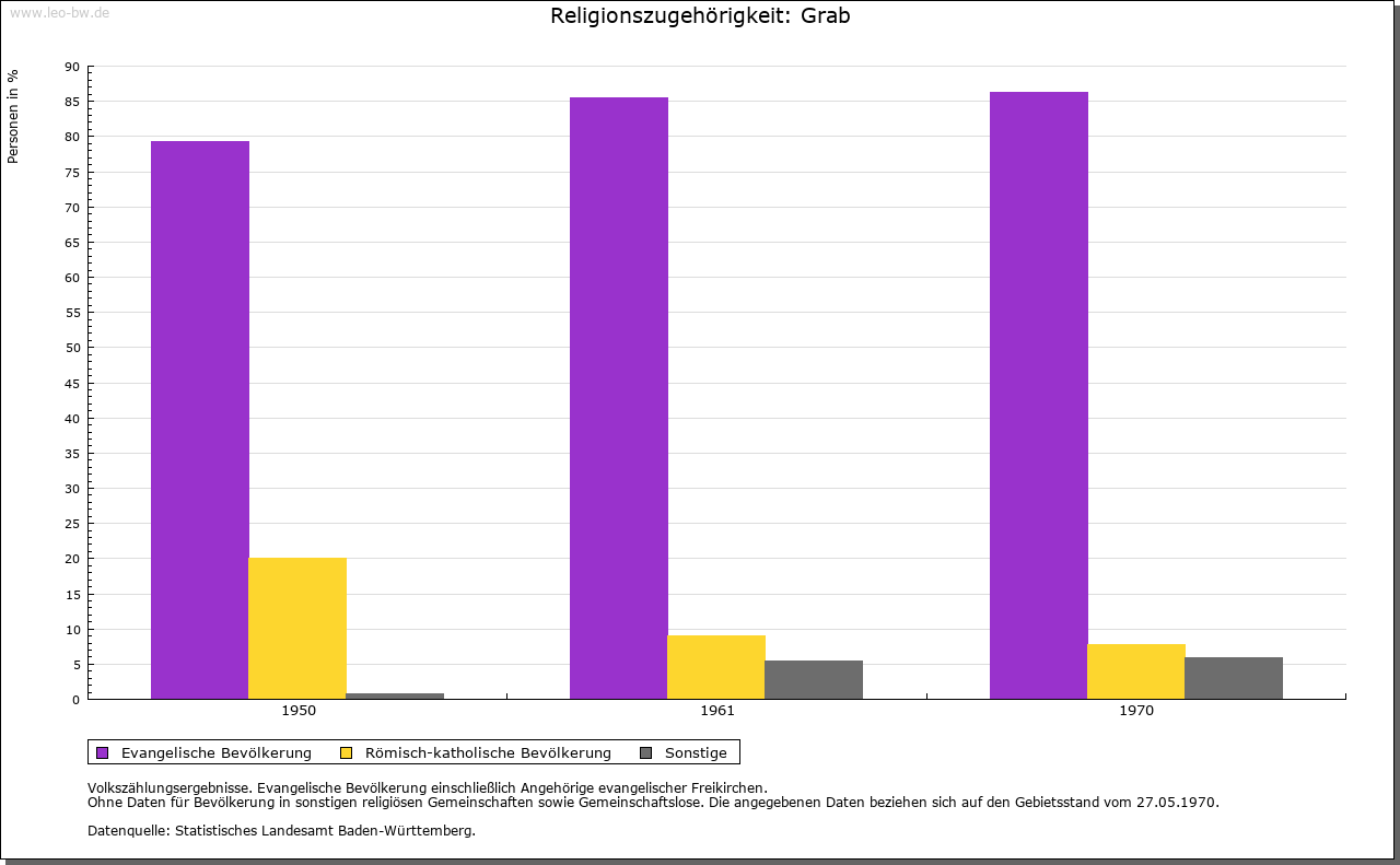 | Kirche und Schule: | Kirchlich war Graab Filial von Murrhardt, 1851 wurde eine Pfarrverweserei, 1862 eine Pfarrei aus früheren Filial von Murrhardt gebildet. 1853 Kirchenbau auf dem Fundament eines römischen Wachturmes. Katholisch zu Murrhardt. |