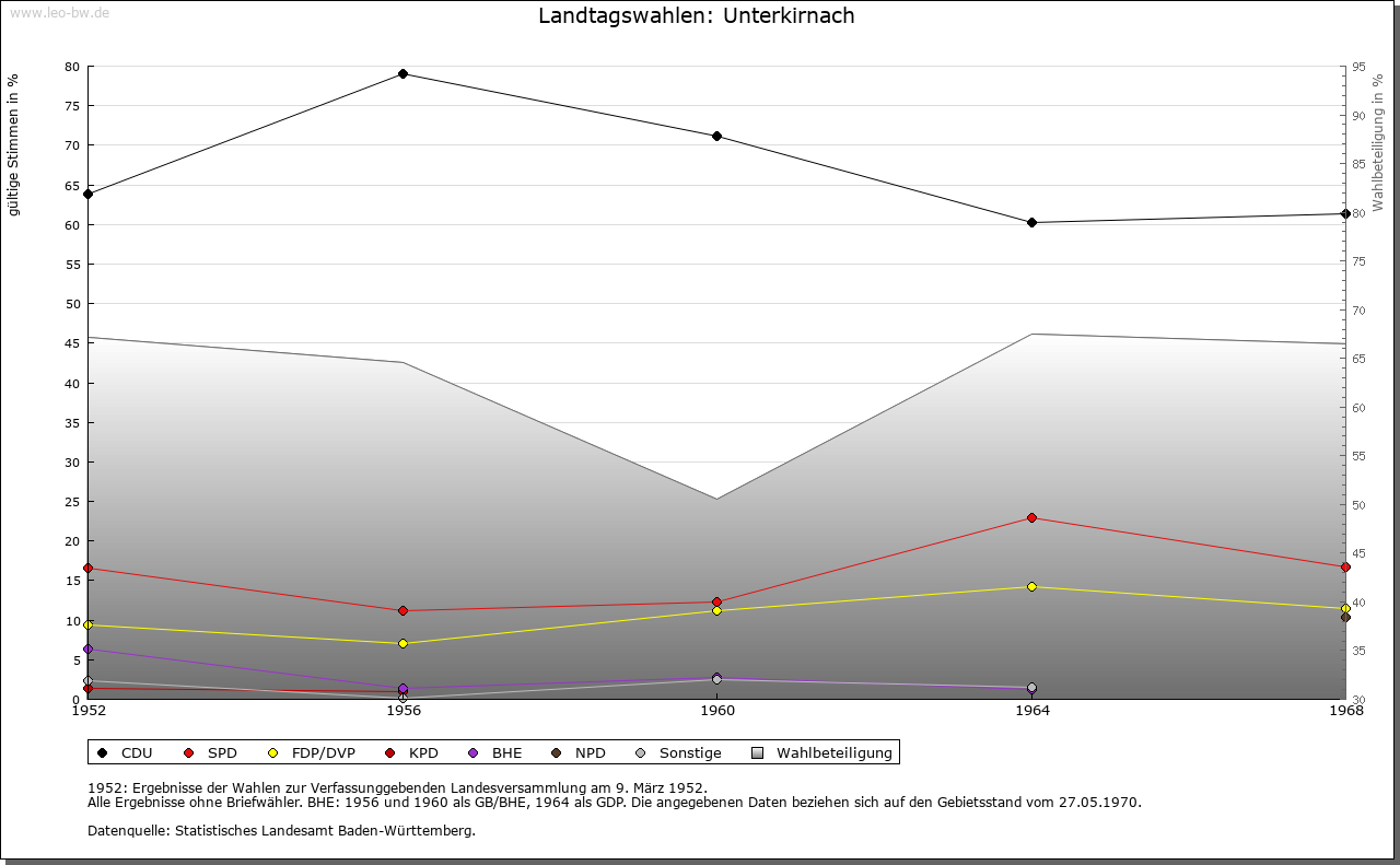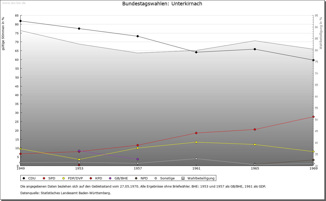 | Geschichte: | 1244 Kurna, von althochdeutsch kurn = Mühle und aha = Wasser (vgl. Oberkirnach, Stadt St. Georgen). Rodungssiedlung des Hochmittelalters, die wohl vom Hof Roggenbach ausging, den Werner von Roggenbach 1179 dem Kloster Tennenbach geschenkt hatte. Von der urkundlich so früh noch nicht belegten Burg Roggenbach nur noch Reste der Umfassungsmauer sichtbar. Der Streit um den Hof Ende des 12. Jahrhunderts zwischen den Klöstern Tennenbach und St. Georgen, dem W. von Roggenbach nach Tennenbach den gleichen Hof geschenkt hatte, endete 1187 mit einem Schiedsspruch, wonach St. Georgen zwar das Eigentum, Tennenbach aber das Vogt- und Besitzrecht zugesprochen wurde. Daraus resultierte der faktisch geringere Einfluß des Klosters St. Georgen auf die weitere Geschichte von Unterkirnach Die in der Folgezeit errichtete Grangie blieb bis zur Zerstörung im Besitz des Klosters Tennenbach, das im 13. und 14. Jahrhundert seinen Einfluß in diesem Gebiet u.a. durch Schenkungen Friedrichs II. und der von Kürneck noch erweitert hatte. Die Herrschaftsrechte Tennenbachs gingen nach der Übersiedelung des Hofmeisters Anfang des 14. Jahrhunderts nach Villingen allmählich an die Stadt über. 1506 verkaufte das Kloster seine Besitzungen an Villingen. Der Ort blieb danach bis 1805 vorderösterreichisch, Amtszugehörigkeit auch später wie Villingen. |
