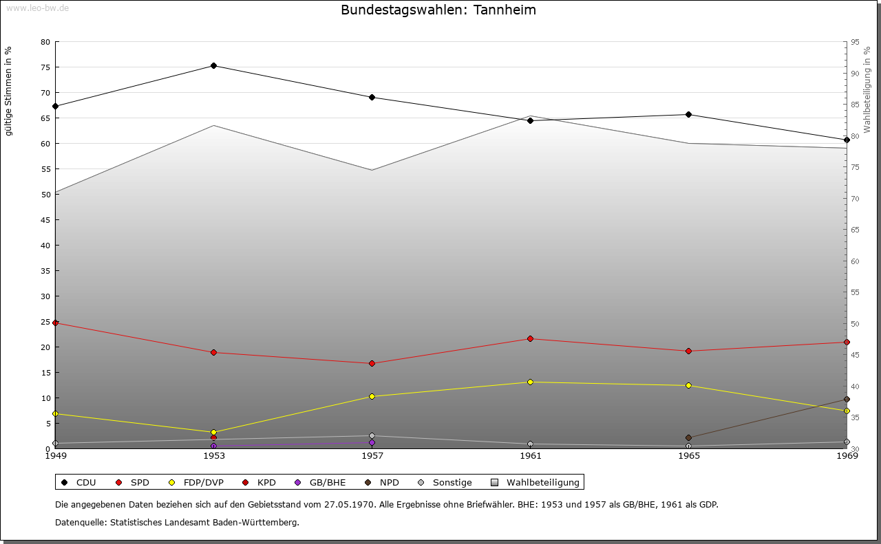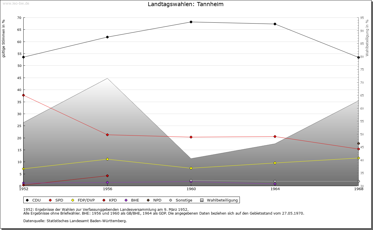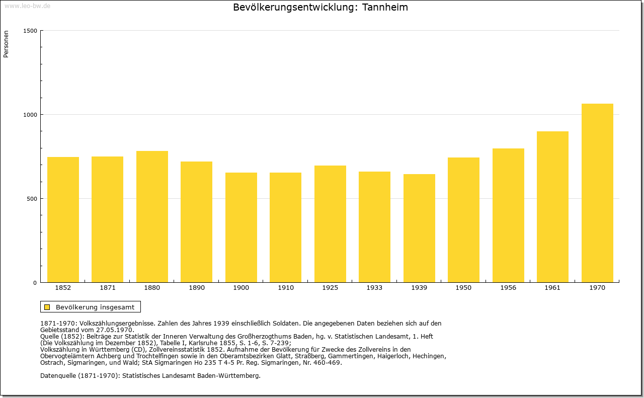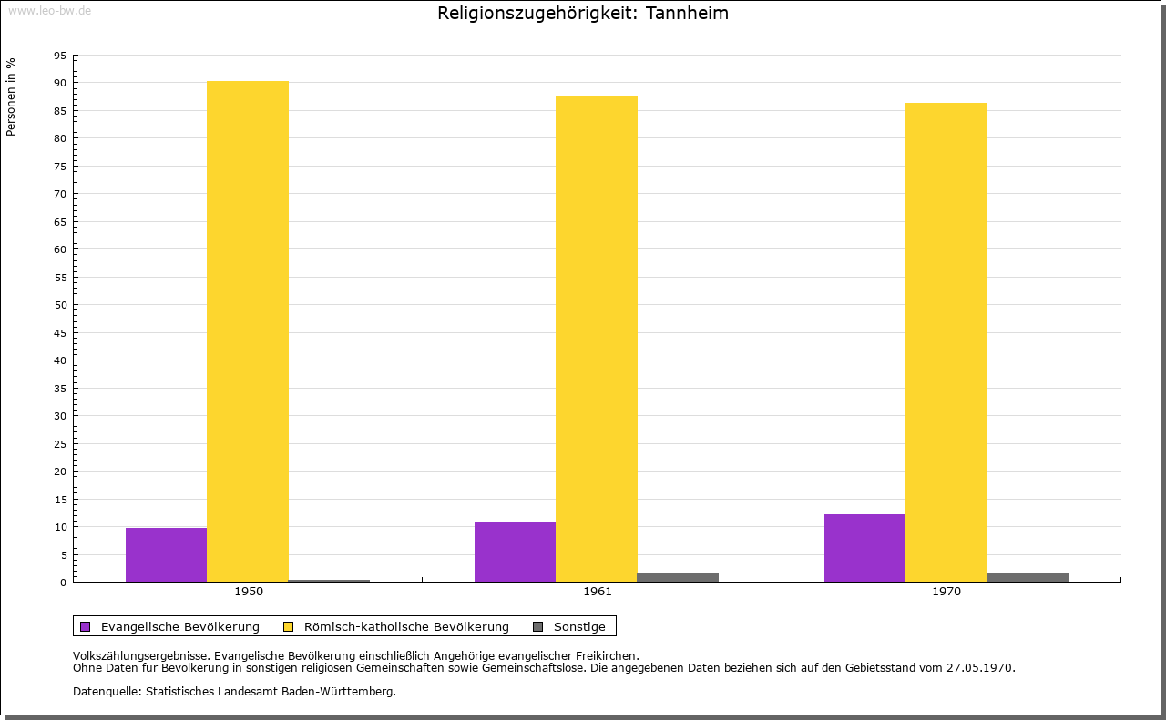 | Geschichte: | 817 Tanheim, Heim im Tannwald. Trotz Fehlens von Grabfunden gehört der Ort wohl in die Merowingerzeit. Bei der Erstnennung eximierte Kaiser Ludwig das Kloster St. Gallen von gräflichen Abgaben zu Tannheim. Mit der Zähringererbschaft gelangte der Ort an Fürstenberg. Seit 1244 ist eine in Villingen ratsfähige Familie von Tannheim bezeugt, ehemals fürstenbergische, vielleicht schon zähringische Lehensleute. Um 1421/23 ausgestorben. 1359 erwarb Kloster Neudingen größeren Besitz im Ort. 1370 war Tannheim vorübergehend an die Tusser von Lanzenhofen verpfändet, um 1450 wieder eingelöst. Der Ort Tannheim blieb bis 1806 fürstenbergisch, Oberamt Hüfingen, dann badisch, 1813 Вezirksamt Villingen, 1819 Amt Hüfingen, 1844 Bezirksamt/Landkreis. Donaueschingen. 1973 Schwarzwald-Baar-Kreis. |