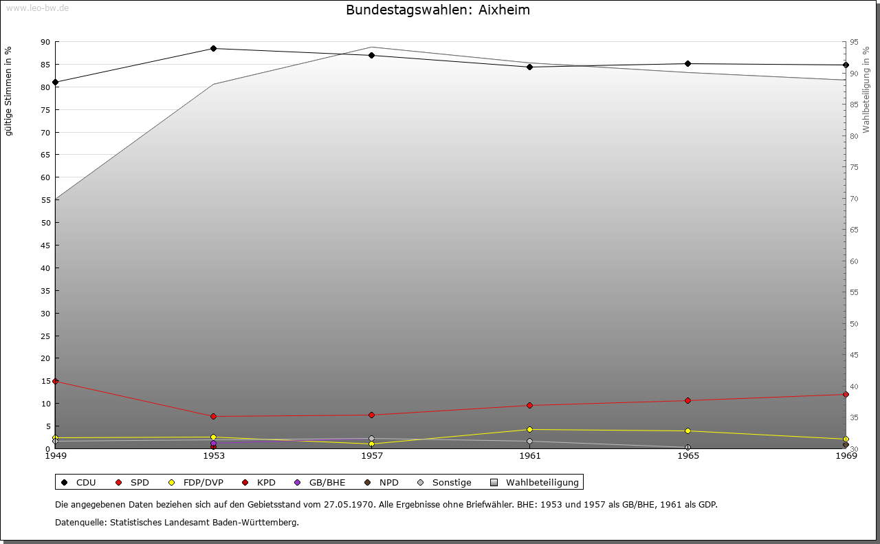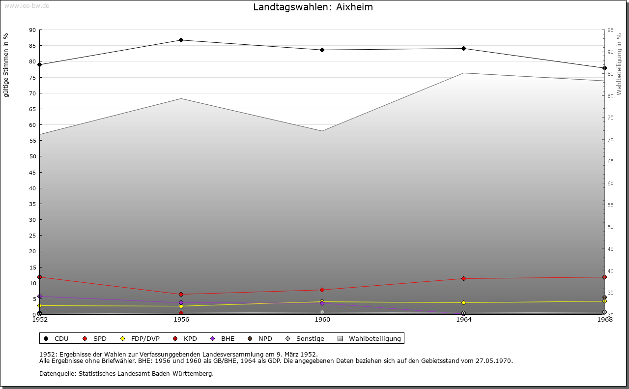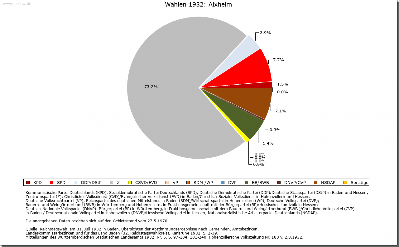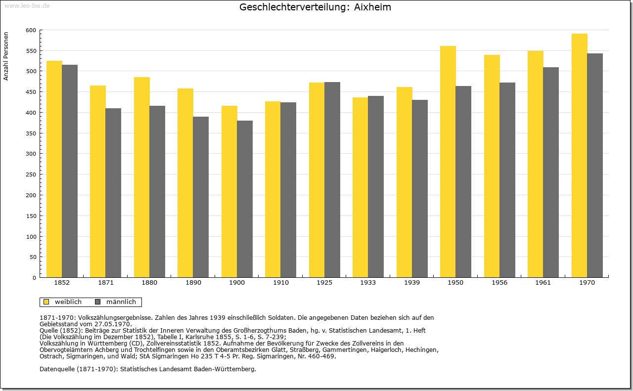 | Geschichte: | 1086 (Корialüberlieferung 17. Jahrhundert) de Eichisheim bei einer Schenkung an Kloster St. Georgen. Ortsname wahrscheinlich von Personenname. Ostlich des Dorfes wurden beigabenlose Reihengräber gefunden. Demnach könnte der Ort im 7. Jahrhundert entstanden sein. Die zu Ausgang des 11. Jahrhunderts vorkommende edelfreie Familie von Aixheim hatte vermutlich auf der beim Ort nachgewiesenen Burg ihren Sitz. Zwischen 1282 und 1306 mehrfach genannte Herren von Aixheim übersiedelten vermutlich zu Beginn des 14. Jahrhunderts nach Rottweil und lebten dort unter dem Namen Gruwel oder Grul von Aixheim. Sie hatten Teile ihrer Güter von den Herren von Lupfen zu Lehen. Nach deren Aussterben 1582 belehnten ihre Nachfolger in der Landgrafschaft Stühlingen, die Erbmarschälle von Pappenheim und später die Grafen bzw. Fürsten von Fürstenberg, das Kloster Rottenmünster mit Aixheim. Ab 1288 hatte das Kloster kontinuierlich Besitz in Aixheim erworben und befand sich seit 1623 auch im Lehensbesitz der freien Pirsch, der Hochgerichtsbarkeit, von Stock und Galgen und des Blutbannes, die ab 1544 die Stadt Rottweil besessen hatte. Daneben waren noch einzelne Adelige, Rottweiler Patrizier, die Johanniterkommende Rottweil und das Kloster St. Georgen im Ort begütert. Mit dem Kloster fiel Aixheim 1802/1803 an Württemberg und gehörte von 1802-1811 zum Oberamt Rottweil, von 1811-1938 zum Oberamt Spaichingen und ab 1938 zum Landkreis Tuttlingen. |