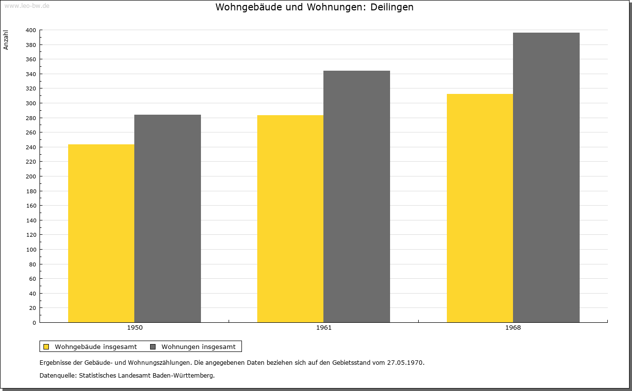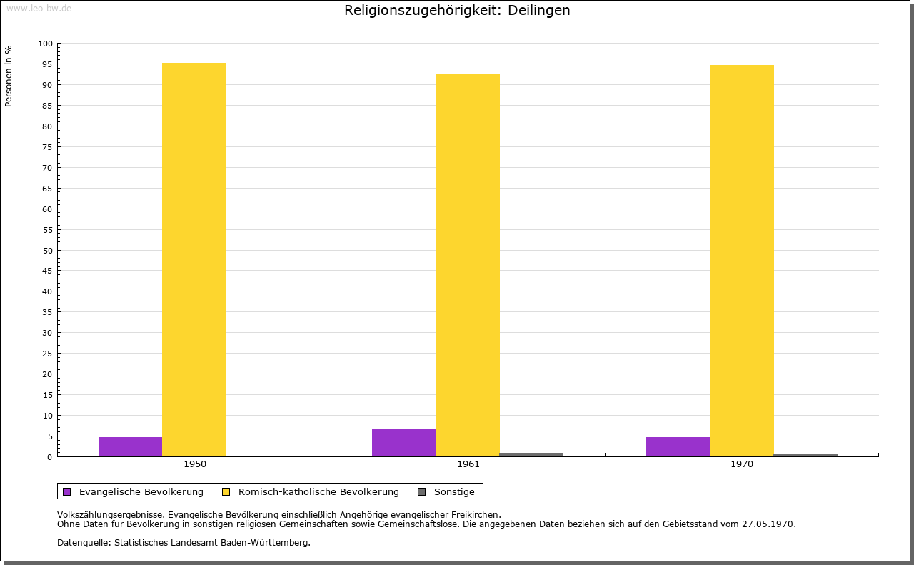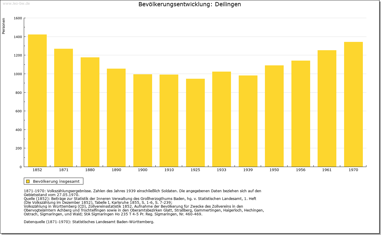 | Geschichte: | 786 Tulingas, von Personenname. Die frühe Gründung des Ortes wird durch Reihengräberfunde bestätigt. Bei den frühesten Nennungen Schenkungen an das Kloster St. Gallen. Später scheint der Ort zur Herrschaft Hohenberg gehört zu haben, obwohl Besitz der Grafen von Hohenberg nur 1348, 1371, 1384 und 1387 am Ort nachzuweisen ist. Neben Rottweiler Patrizierfamilien waren Adelige begütert, doch kamen ihre Besitzungen im Laufe der Zeit an das seit 1324 im Ort als Grundherr erscheinende Kloster Rottenmünster. Seit dem Übergang der Grafscht Hohenberg an Osterreich (1381) gehörte Deilingen zu Oberhohenberg. Alle Rechte im Ort standen bis zum Übergang an Württemberg 1805 Österreich zu. Deilingen gehörte von 1806-1938 zum Oberamt Spaichingen und ab 1938 zum Landkreis Tuttlingen. |