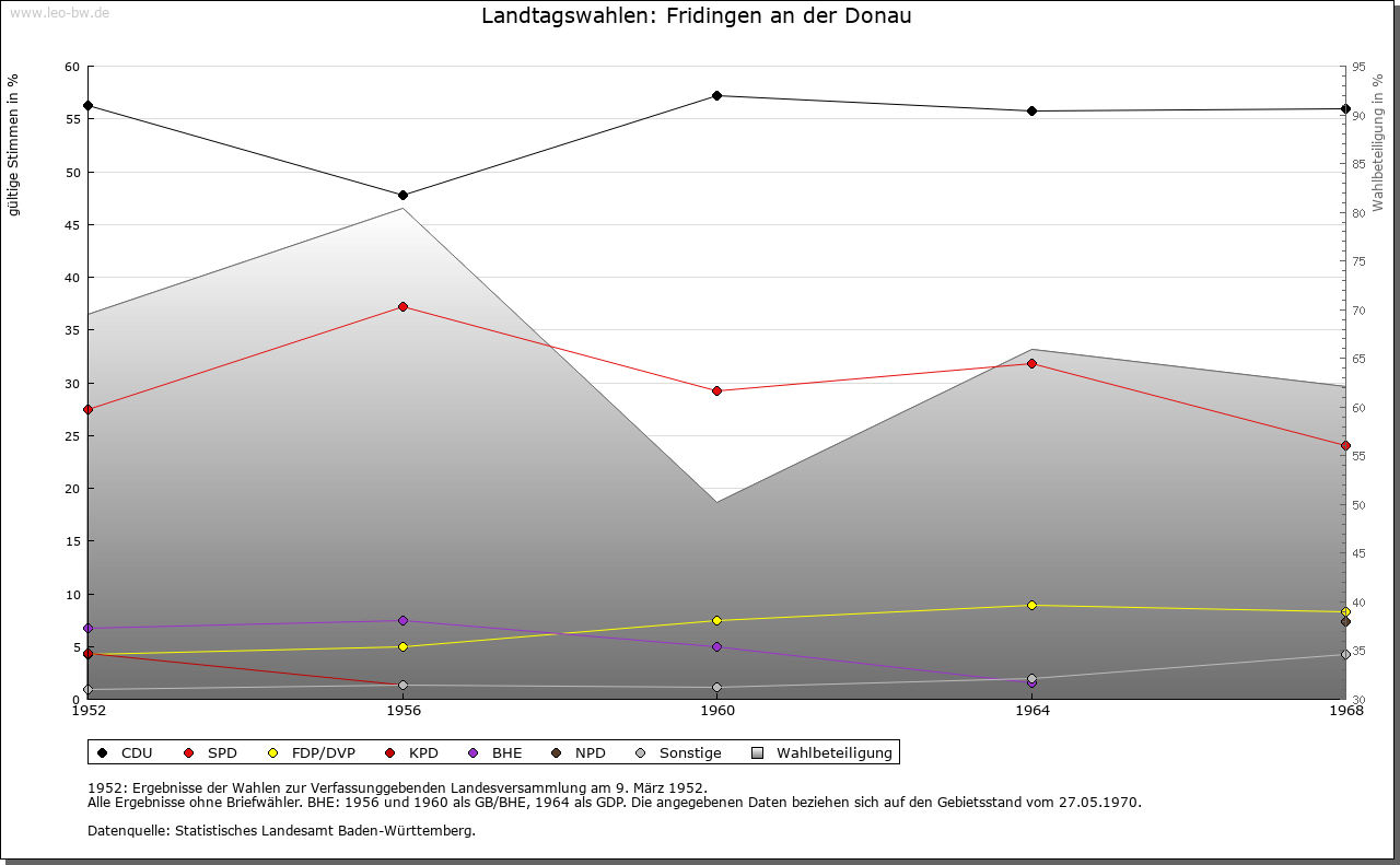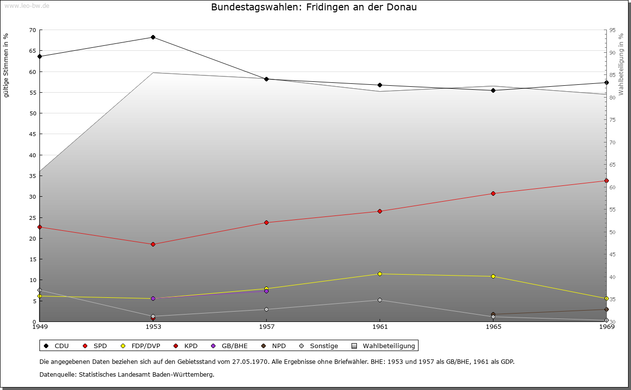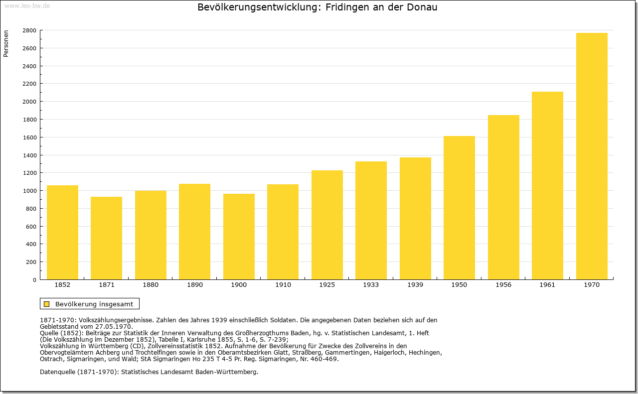 | Geschichte: | 850 Fridingun, von Personenname, anläßlich einer Schenkung an das Kloster St. Gallen. Reihengräber der ersten Hälfte des 6. Jahrhunderts beim Ort. Zwischen 1089 und dem 16. Jahrhundert erscheint eine Familie von Fridlingen, die anfangs sogar als edelfrei bezeichnet wurde. Seit dem 15. Jahrhundert war die Familie nicht mehr am Ort wohnhaft. Fridlingen hatte sich ursprünglich im Besitz der Bertholde befunden, von denen es an die Grafen von Zollern und von diesen an die Grafen von Hohenberg weitervererbt wurde. Neben den Grafen von Hohenberg werden die Familie von Ow und Kloster Heiligkreuztal mit Besitz am Ort genannt. Die Grafen von Hohenberg gründeten um 1300 die Stadt Fridlingen Graf Rudolf von Hohenberg nahm diese 1372 von Böhmen zu Lehen, verkaufte sie aber 1381 mit der Herrschaft Hohenberg an Österreich. Österreich verpfändete Fridlingen 1393 an die Pfuser in Rottweil und später an die Herren von Balgheim, die ihre Pfandschaft bis zum Ende des 15. Jahrhunderts behielten. Die zur oberen Grafschaft Hohenberg gehörige Stadt war bis 1688 Sitz des Obervogteiamtes, danach eines Amtmannes unter der Obervogtei Spaichingen. Eine möglicherweise ursprünglich von den Herren von Fridlingen stammende Burg, später Schloß, erscheint im 15. Jahrhundert als österreichisches Lehen der Herren von Balgheim, dann von Stain und war seit 1536 im Besitz der Familie Iflinger, die es 1793 verkaufte. Die Ringmauern wurden abgebrochen, ein Teil des Schlosses von der Gemeinde als Armenhaus verwendet. Die ursprüngliche Stadtanlage war annähernd ein Rechteck mit je einem Tor an der Nord- und West-Seite; beide 1840 abgebrochen. Im 30jährigen Krieg wurde Fridlingen fast vollständig zerstört, in den Kriegen des 18. Jahrhundert wiederholt erheblich in Mitleidenschaft gezogen. Die Stadt fiel 1806 an Württemberg und gehörte zuerst zum Oberamt Spaichingen, ab 1807 zum Oberamt/Landkreis Tuttlingen. |