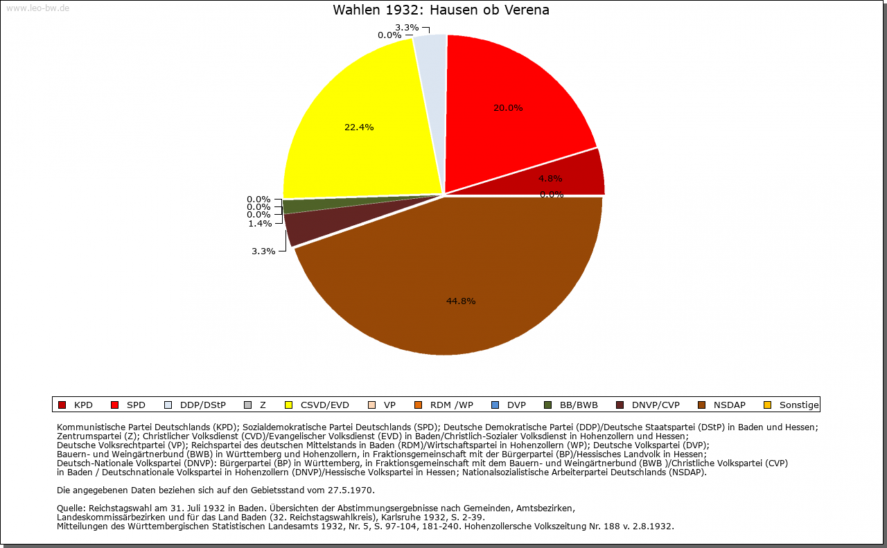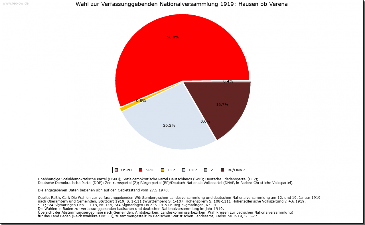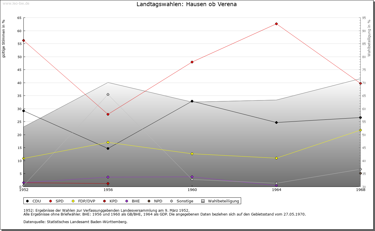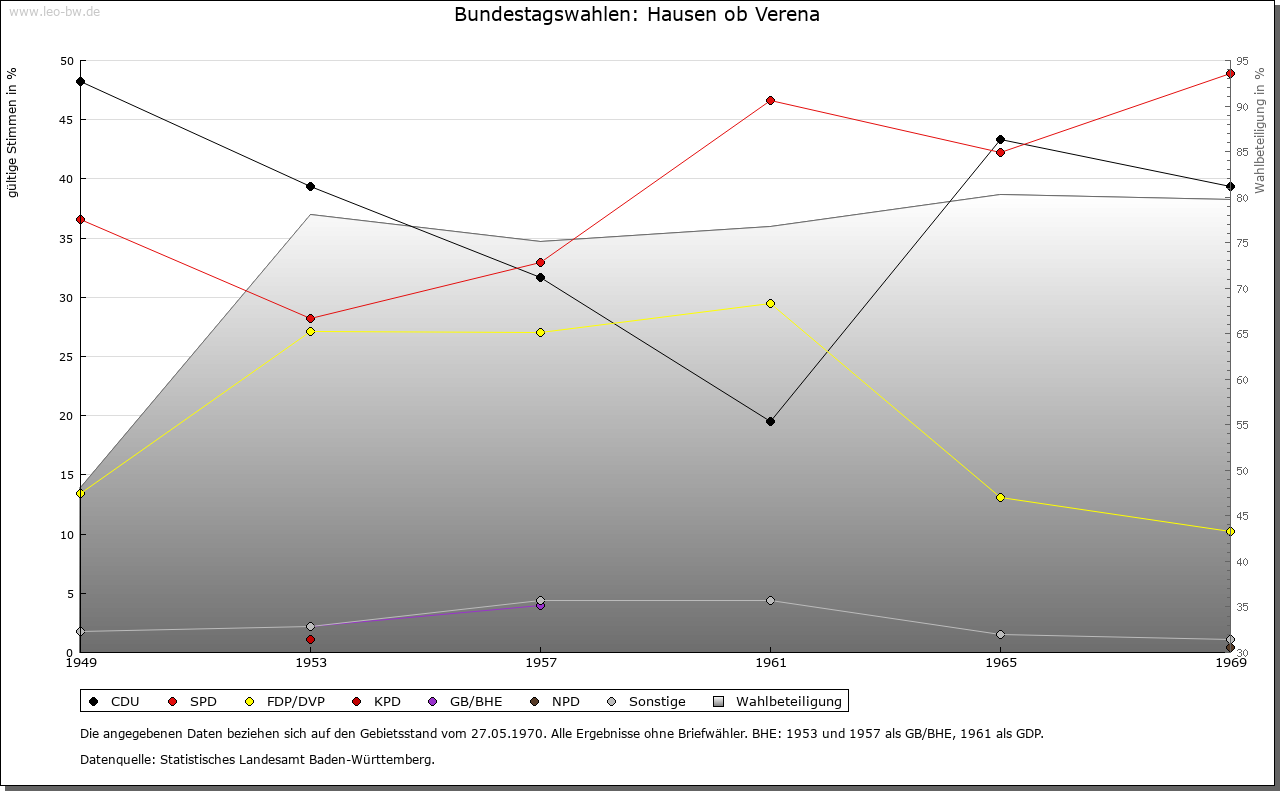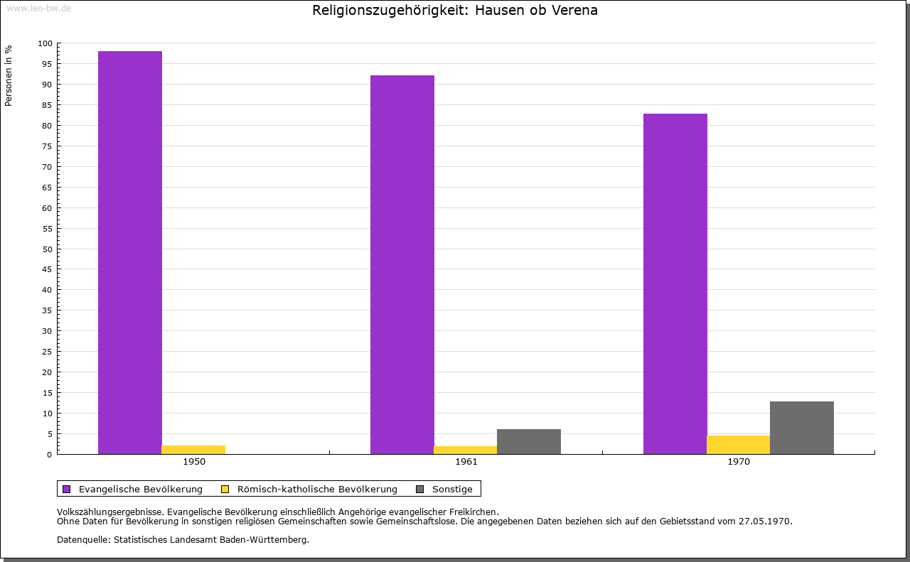 | Geschichte: | 1090 (Корialüberlieferung 17. Jahrhundert) Husen, 1275 Husen apud Kalphen, 1322 Husen uffen Frinun, 1353 Uffhusen, 1403 Husen off Frene. Ortsname wohl von der Verenamühle auf Gemarkung Spaichingen. Der Ort gehörte stets zur Burg und Herrschaft Hohenkarpfen. Diese waren Reichslehen und befanden sich zuerst im Besitz der Hochadelsfamilie von Karpfen, die ca. 1050-1234 genannt ist, um 1300 der Grafen von Lupfen, um 1350 im Besitz der Herren von Blumberg, von denen sie 1382 an das Kloster St. Georgen verkauft wurden. In den folgenden Jahren hatte Württemberg - vielleicht durch seine Vogtei über das Kloster St. Georgen - Rechte an Burg und Herrschaft. Von diesem trugen sie die Herren von Remchingen zu Lehen, denen 1403 König Ruprecht erlaubte, in Hausen Schultheiß, Schöffen und ein Halsgericht zu haben. Als die Burg zu Räubereien mißbraucht wurde, zog König Sigmund Burg und Herrschaft ein und belehnte 1422 Heinrich von Blumberg damit, im Dorf und auf seinen Gütern in Hausen Gericht zu halten. Neben den Herren von Blumberg hatten seit vor 1413 auch die Herren von Emershofen Rechte an Burg und Herrschaft, die sie später durch Kauf der blumbergischen Besitzungen noch erweiterten. Württemberg kaufte 1444 den Ort mit Burg und Herrschaft Hohenkarpfen mit allen Rechten, und der Ort teilte in Zukunft das Schicksal von Karpfen. Das Hochgericht blieb auch nach dem Verkauf der Herrschaft an die Familie Wiederhold im 17. Jahrhundert in württembergischem Besitz. In Hausen waren neben der Herrschaft noch seit 1322 das Kloster Rottenmünster, die Kirchenpflege Rottweil, das Landkapitel Wurmlingen, die Pfarrei Weilheim und die Stiftungspflege Seitingen begütert. Der Ort gehörte zum Stabsamt Hohenkarpfen im Oberamt Tuttlingen bis 1806, 1806-1810 zum Oberamt Spaichingen, 1810-1938 zum Oberamt, ab 1938 Landkreis Tuttlingen. |