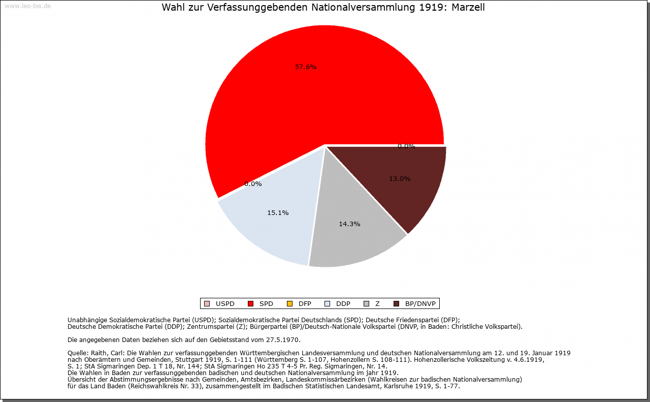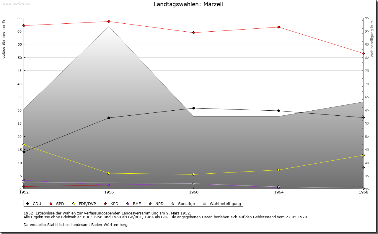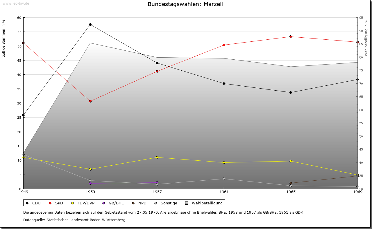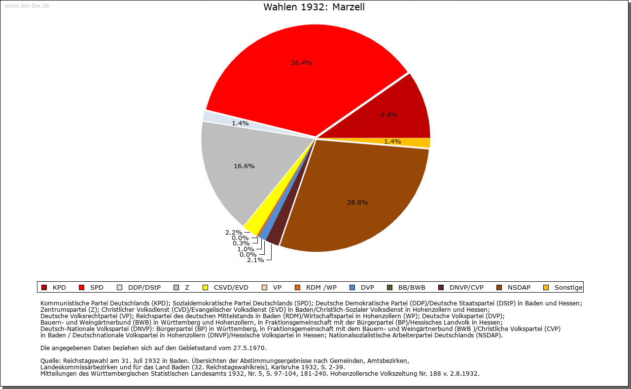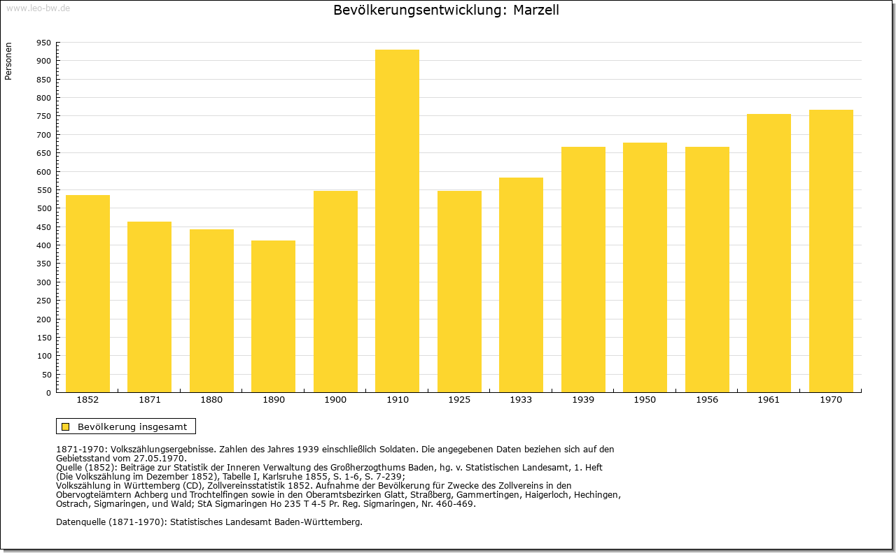 | Geschichte: | Nach 1120 (Корialüberlieferung 15. Jahrhundert) Marticellinsperc, 1342 Marticelle. Gehörte zur Herrschaft der Herren von Kaltenbach. Vor der Mitte des 12. Jahrhunderts tradierte ein Zeizo de Martiniscello sein Gut bei Marticellinsperc mit allem Zubehör an die Propstei Bürgeln. Im 14. Jahrhundert besaßen die Herren von Neuenfels, Vasallen der Markgrafen von Hachberg-Sausenberg, den halben Teil des Dorfes samt Kirchensatz. Der neuenfelsische Anteil am Kirchensatz wurde 1372 an die Herren von Schönau verkauft, die bereits 1369 das halbe Dorf, zu dem der halbe Kirchensatz gehörte, an den Markgrafen verkauft hatten. Ein tiefer Graben und Spuren eines Rundturmes um die oberste Kuppe auf dem Stockberg an der Gemarkungsgrenze gegen Badenweiler lassen hier eine sonst nicht bekannte Burg vermuten. Die Landesherrschaft hatten schon im 14. Jahrhundert die Markgrafen, die sich 1345 mit St. Blasien auch über die Rechte Bürgelns in Malsburg verglichen. Wohl schon bald kam Malsburg zur markgräflichen Vogtei Vogelbach; 1792 erscheint der Ort als eigene Vogtei. 1809 kam diese zum Amt Kandern, 1820 zum Bezirksamt/Landkreis Müllheim. |