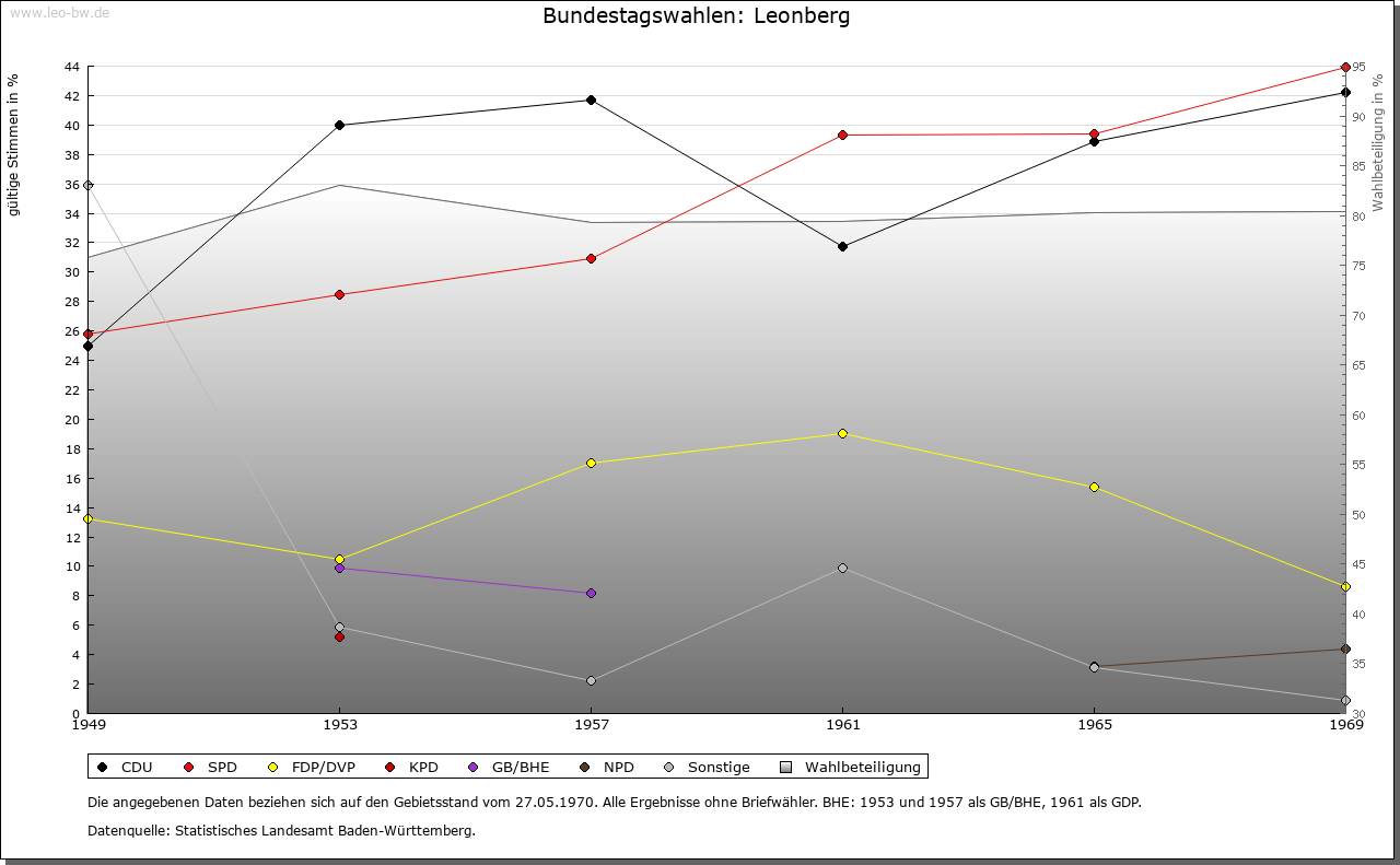 | Geschichte: | 1248 Lovinberch, 1273 Lewinberc, 1294 Lewenberc (nach dem Tier); die heutige Namensform setzte sich erst im 16. Jahrhundert endgültig durch. Der Name spricht dafür, dass er von der 1350 als Burgstall bezeichneten Burg auf dem Engelberg übernommen wurde. Der Ort wurde 1248/49 als Stadt (1248: civitas) von Graf Ulrich I. von Württemberg auf der Markungsgrenze zwischen Eltingen und Dilgshausen gegründet und richtete sich gegen die staufische Stadt Weil (der Stadt). Da auf drei Seiten durch steil abfallende Hänge und die Burg gesichert, war nur nach Osten, zwischen den beiden einzigen Toren, ein Graben erforderlich. Die seit dem 14. Jahrhundert vor dem Untertor südlich der Altstadt entstandene Vorstadt war nicht in den Mauerring einbezogen. Von der Stadtbefestigung sind Mauerteile erhalten. Während des Reichskriegs gegen Graf Eberhard den Erlauchten unterstand Leonberg 1312-1314 der Herrschaft der Reichsstadt Esslingen. Im Bauernaufstand des »Armen Konrad« 1514 spielte Leonberg eine Rolle; auf dem Engelberg war ein Lager der Aufständischen. Die Bildung des Amts bzw. der Vogtei Leonberg erfolgte vor 1350; seit 1806 Oberamt-Stadt, 1938-1972 Kreisstadt. Große Kreisstadt wurde Leonberg 1963. Das Rathaus ein dreigeschossiger Fachwerkbau mit Rundbogenhalle im Erdgeschoss (um 1470). Unweit ein Renaissance-Brunnen von 1566 mit einem »Wappner« als Brunnenfigur. Neben weltlichen und geistlichen Amtshäusern, meist des 16./17. Jahrhunderts, sind in der Altstadt zahlreiche sehenswerte Bürgerhäuser erhalten. An ihrer Nordostecke der »Schwarze Adler«, ein hochgotische Steinhaus mit Fachwerkaufbau wohl des 16. Jahrhunderts, im 14. Jahrhundert Adelssitz, seit 1440 Bebenhäuser Klosterhof, seit 1539 Wohnung des Untervogts. Ob der Landtag von 1457 hier oder im Schloss stattfand, bleibt ungeklärt. Am Südwestrand der Altstadt das Schloss, jetzt Behördehsitz, unter Herzog Christoph 1560/65 in manieristischem Stil neu erbaut. Die wirtschaftliche Entwicklung der Stadt war seit ihrer Gründung durch die Kleinheit der Gemarkung, die der von Eltingen entnommen war, beeinträchtigt. Die langwierigen Streitigkeiten endeten erst 1859, als Teile der Eltinger Gemarkung an Leonberg fielen. Haupterwerbszweig bis um 1880 die Landwirtschaft. Seit 1684 zwei inzwischen abgegangene Jahrmärkte sowie der weithin bekannte Pferdemarkt. Die im späten 19. Jahrhundert beginnende Industrialisierung brachte anfangs nur Mittelbetriebe. Die Voraussetzung für Industrieansiedlung größeren Ausmaßes schuf erst die Eingemeindung von Eltingen 1938, wo Industriegelände bereitgestellt werden konnte. Hier geboren: Friedrich Wilhelm Joseph Sendling (1775-1854), Philosoph. Christoph Hoffmann (1815-85), Gründer der württembergischen Templerkolonien in Palästina. |