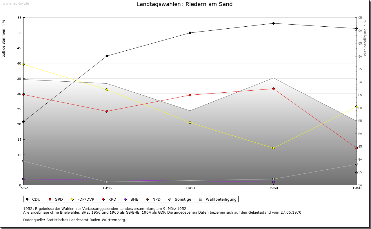 | Geschichte: | Anfang des 14. Jahrhunderts Ryedern, 1305 Riederun bi der nüwen Krenchingen. Entstanden aus Ober-Riedern (älterer Ortsteil) und UnterRiedern. Wohl früher Besitz des Klosters Rheinau. 1576 als in Erzinger Gericht gelegen bezeichnet, unterstand Riedern der Herrschaft Neukrenkingen und gehörte mit dieser bis 1806 dem jeweiligen Inhaber der Landgrafschaft Klettgau (Herrschaft Weißenburg). Im 18. Jahrhundert zum schwarzenbergischen Oberamt Tiengen gehörig, gelangte der Ort 1807 zum standesherrlichen Oberamt Klettgau, später zum Amt Tiengen. Er kam 1819 an das Stabsamt bzw. Bezirksamt Jestetten und mit diesem 1872 zum Bezirksamt/1936 Landkreis Waldshut. |