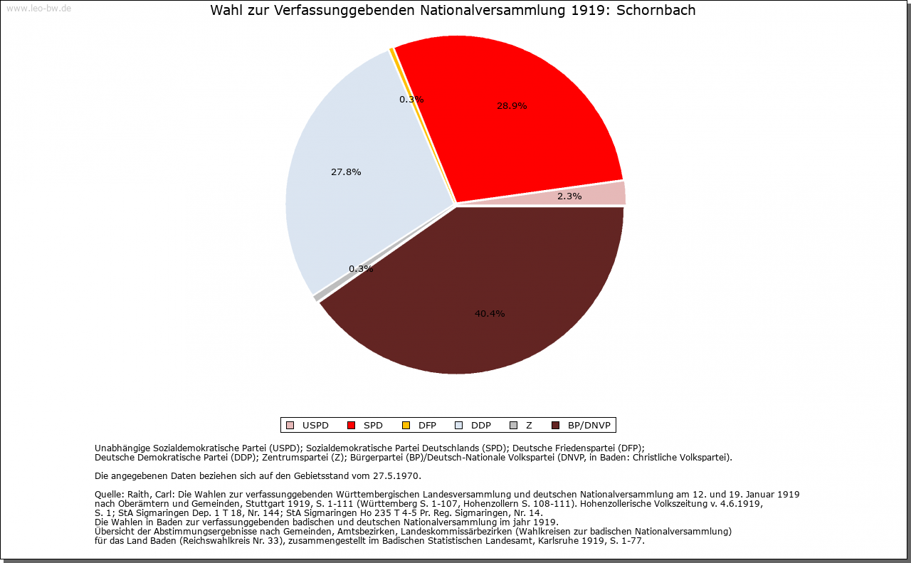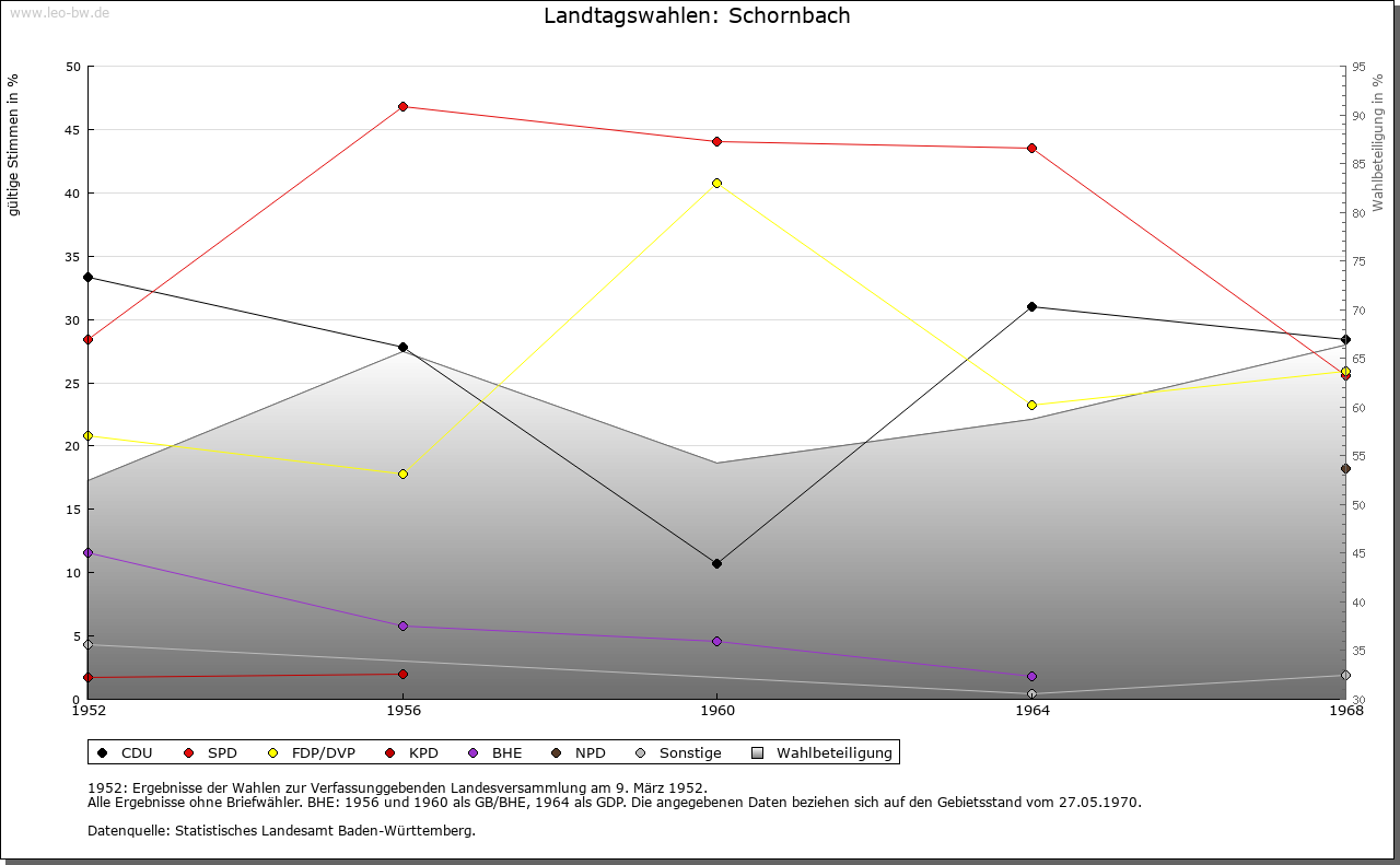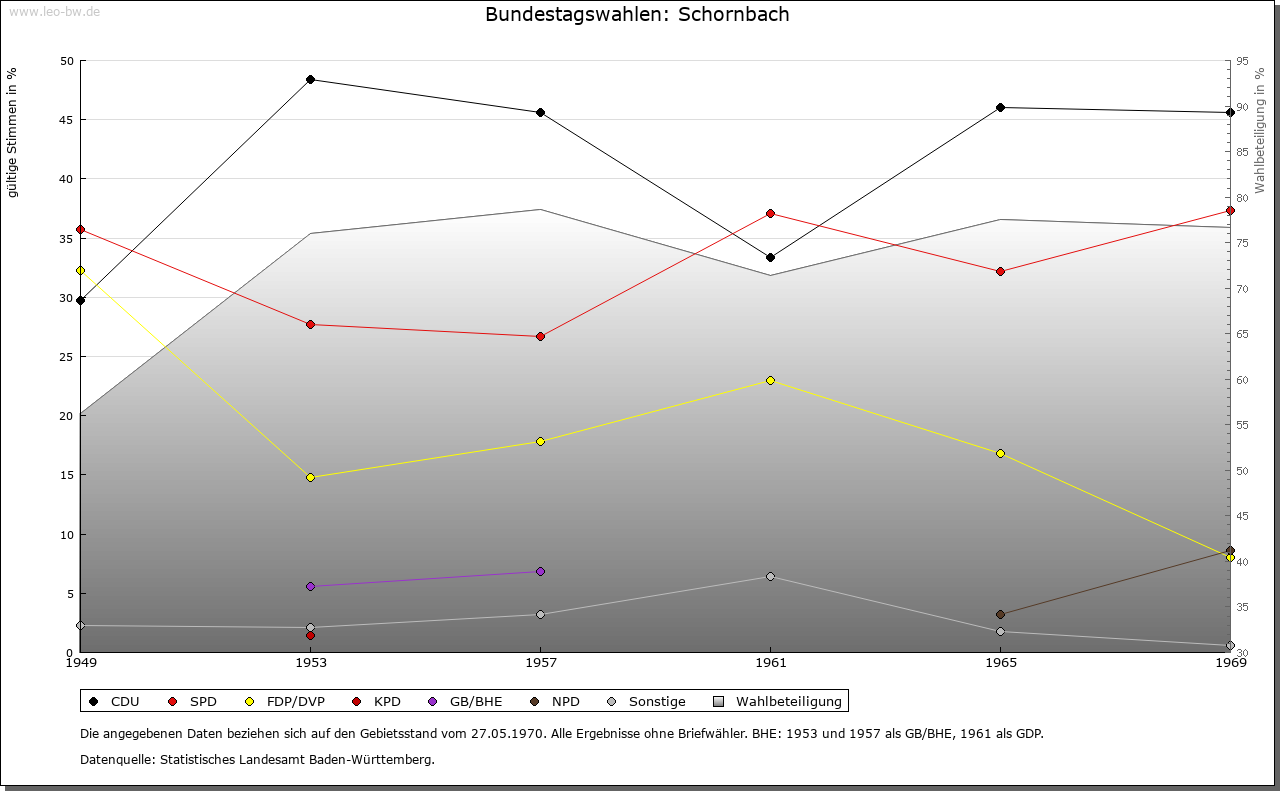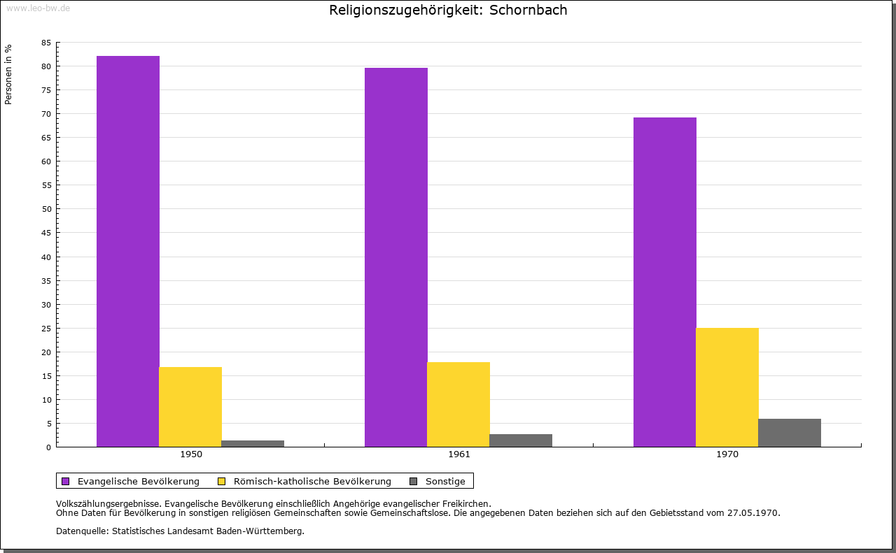 | Geschichte: | 1264 apud Schorembach. Kam wohl mit Schorndorf an Württemberg, das seit 1293 Vogteirechte über hiesigen Besitz des Klosters Lorch ausübte. Schornbach war Hauptort eines Stabs des Oberamtes Schorndorf und kam 1938 zum Landkreis Waiblingen. |