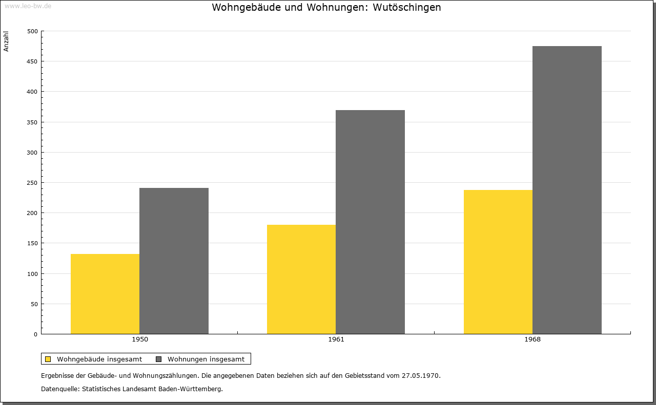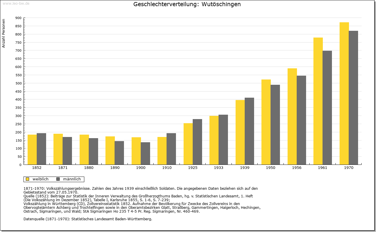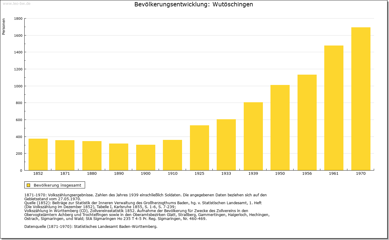 | Geschichte: | 1152 Essinun, 1323 ze Eschingen im Gutatal, 1525 Eschingen in Wuthenthal. Steinplattengräber der späten Merowingerzeit. Früher Besitz der Herren von Krenkingen und der Klöster Detzeln und St. Blasien. Das Niedergericht ging, wahrscheinlich im Zusammenhang mit den 1307 an Kloster Berau verkauften Vogtrechten, von den Herren von Krenkingen über verschiedene Adelsfamilien an die von Rümlang über. Ulrich von Rümlang veräußerte es 1488, zusammen mit den Rechten über Willmendingen, Horheim, Lutislo und Endermettingen, an Graf Heinrich von Lupfen und Graf Alwig von Sulz. Streitigkeiten mit der Landgrafschaft Klettgau wurden 1489 geschlichtet. Joachim Christoph von Mörsberg als lupfischer Erbe veräußerte den Ort an Maximilian von Pappenheim, von dem Graf Karl Ludwig von Sulz 1603 alles erwarb. Dessen Sohn Ulrich verkaufte seine Anrechte 1649 an Graf Friedrich Rudolf von Fürstenberg. Bis zum Übergang an Baden 1805/06 gehörte der Ort, soweit links der Wutach gelegen, zur Landgrafschaft Klettgau (Herrschaft Wutental), im jenseits der Wutach gelegenen Gemarkungsteil hatte die Landgrafschaft Stühlingen die hohe Obrigkeit. 1806 wurde Wutöschingen badisch, 1807 dem standesherrlichen Oberamt Klettgau zugeteilt, kam später zum Bezirksamt Tiengen und nach dessen Auflösung 1819 zum Bezirksamt/1939 Landkreis Waldshut. |