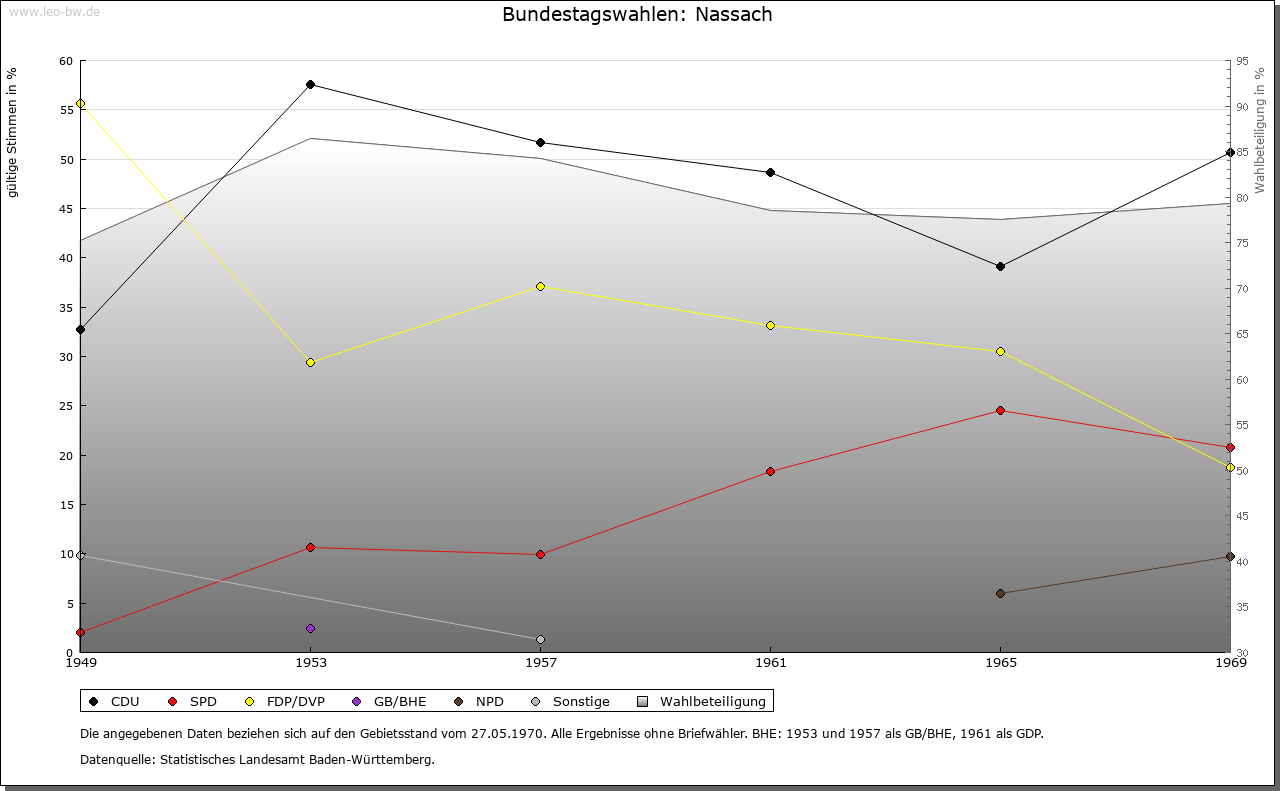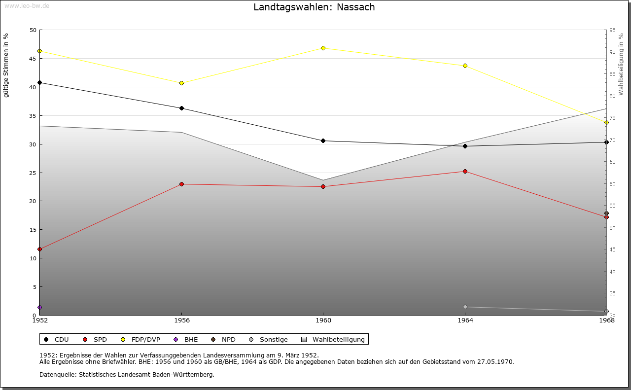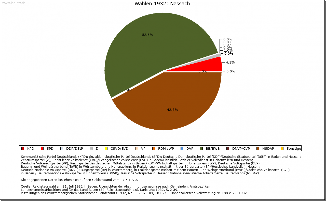 | Geschichte: | 1524 Nassach (= nasse Stelle). Kam wahrscheinlich 1357 beim Erwerb der Herrschaft Lichtenberg an Württemberg und gehörte mit Kurzach und Prevorst ins Gronauer Gericht des Amts bzw. Oberamts Beilstein. Seit 1810 beim Oberamt Marbach, seit 1938 Landkreis Backnang. Nassach war mit Kurzach bis 1843 Teil der Gemeinde Gronau. Südlich des Orts Spuren einer Burgstelle. |