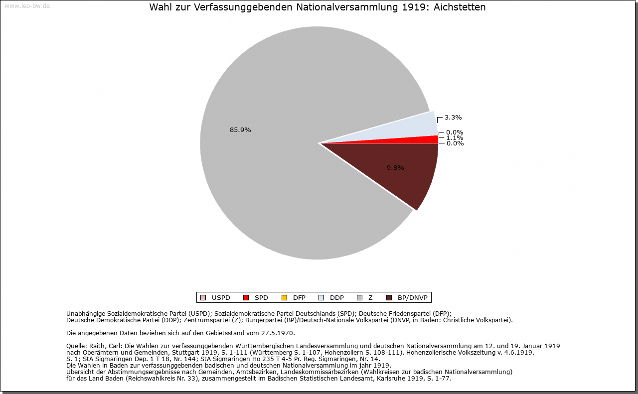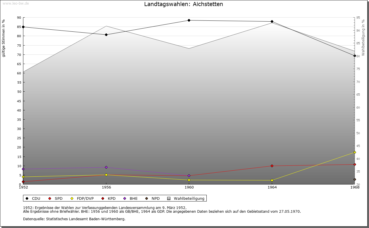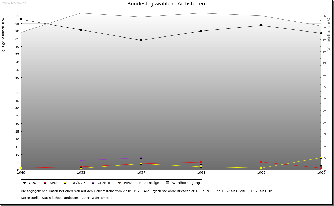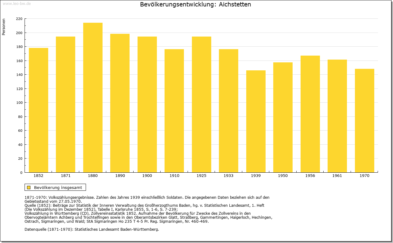 | Geschichte: | Erste Hälfte 12. Jahrhundert (Chronik, Корie 16. Jahrhundert) Aichstetin. Das Kloster Zwiefalten besaß hier einen Hof. Nördlich des Dorfs eine abgegangene Burg. 14. bis 16. Jahrhundert teckisches Lehen der Herren von Stein. 1514 Verkauf an Kloster Zwiefalten, das bereits 1410 von den Kaiben von Hohenstein im Ort Besitz erworben hatte. 1803 an Württemberg. Oberamt (1938 Landkreis) Münsingen. |