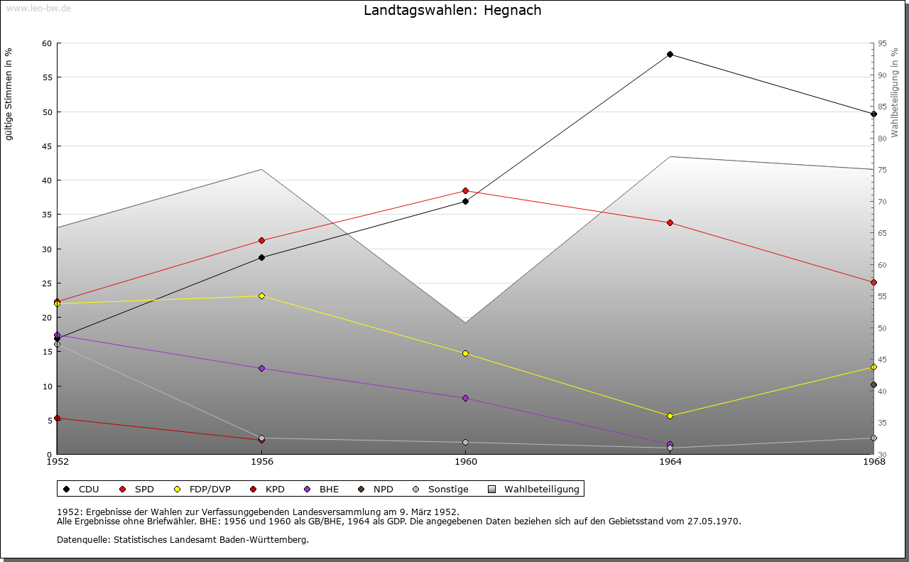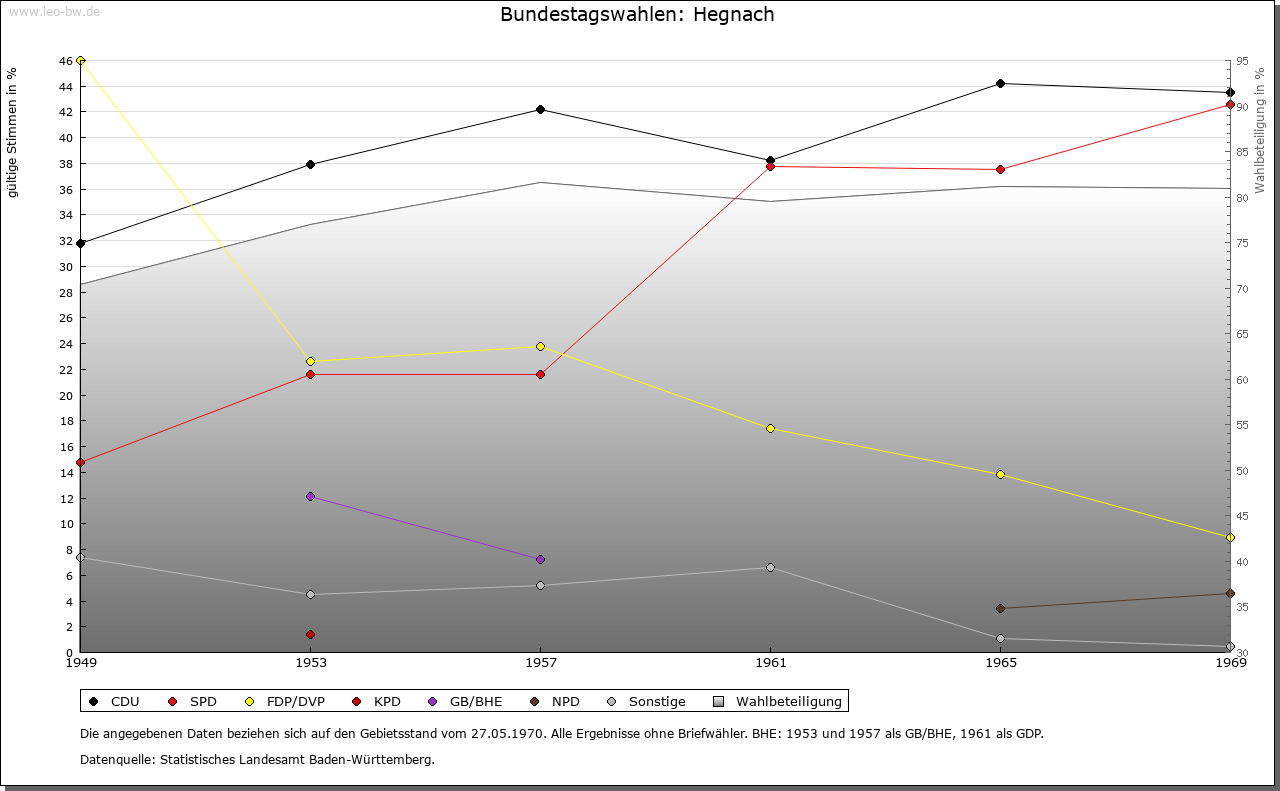 | Geschichte: | 1282 Hegenach, 1410 Grossenhägenach (= Hecke, Gestrüpp). Später Ausbauort von Waiblingen. Noch bis ins 18. Jahrhundert Großhegnach zur Unterscheidung von Kleinhegnach (Waiblingen-Neustadt). 1282 wird ein Wiprecht de Hegenach genannt, örtlicher Adel ist erst wieder nachweisbar seit 1350, ein Zweig der Familie von Staig. Der Adelssitz befand sich in einem Hof, aus dem später der mittlere und untere Schafhof hervorging. 1410 nahm Rüdiger von Hegnach das Dorf mit allen Rechten von Württemberg zu Lehen. 1459 kauften die Dürner von Dürnau alle Lehensrechte. 1467 verkauften sie ganz Hegnach an Württemberg. Hegnach gehörte seitdem zum Amt Waiblingen, 1808-1810 zum Oberamt Cannstatt, dann wieder zum Oberamt, seit 1938 Landkreis Waiblingen. |