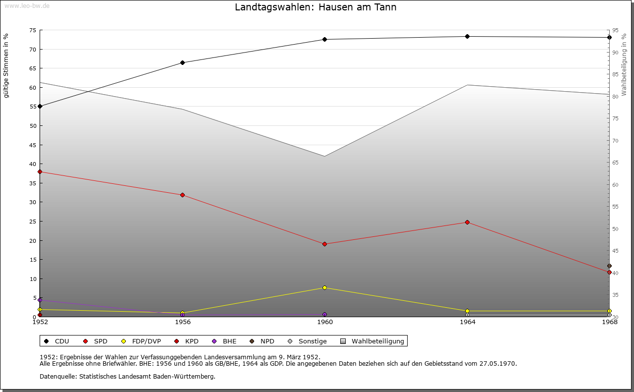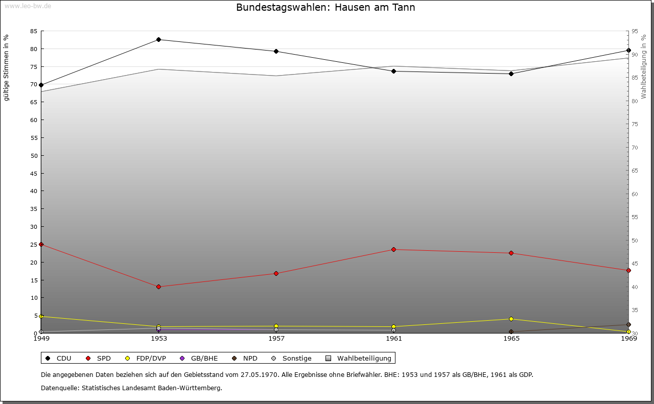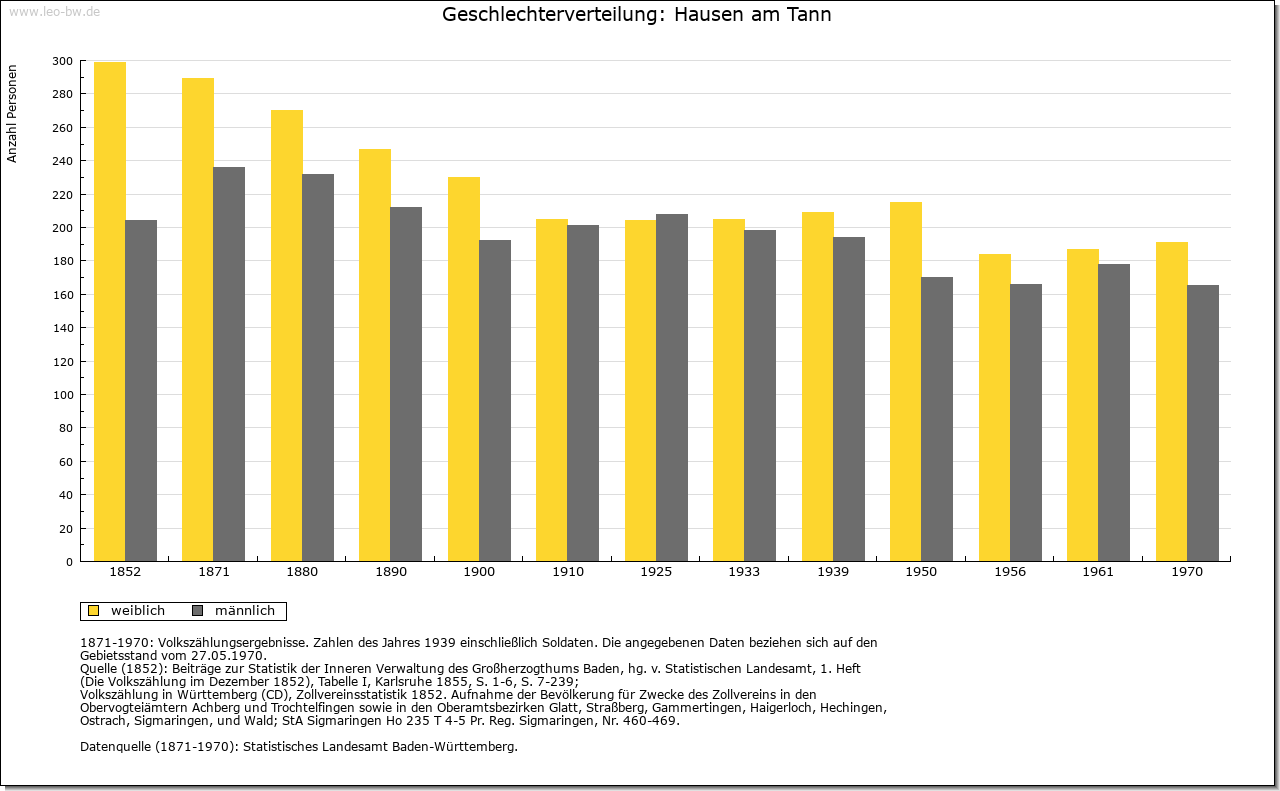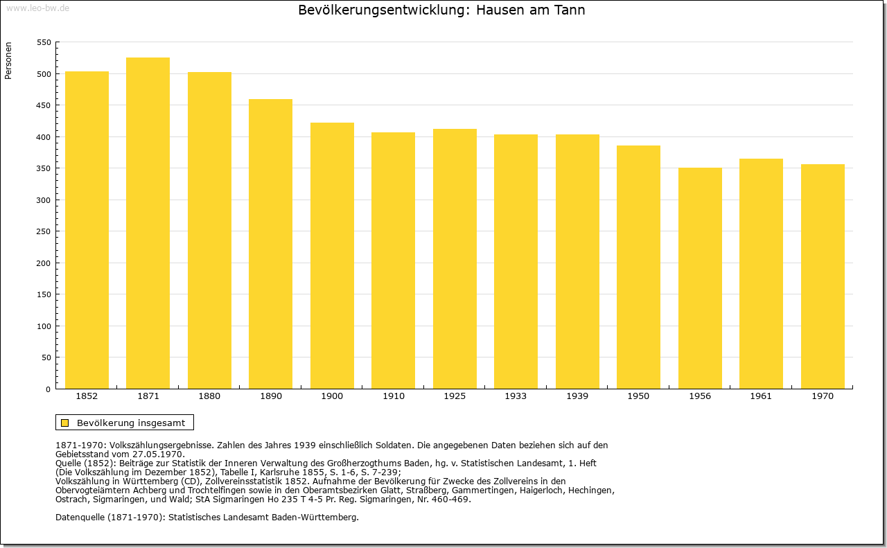 | Geschichte: | 1303 Husen under Wintzelon (die Erwähnung Husen ad Winzlen zum Jahr 1253 beruht auf Fälschung des 18. Jahrhunderts), 1475 Hausen unterm Tann. Auf dem Lochenstein Spuren von Besiedlung seit der Jungsteinzeit. Kurzzeitige alemannische Ansiedlung im 4. Jahrhundert. Die Orte Hausen sowie Weiherhausen und Waltershausen (beide im Spätmittelalter abgegangen) entstanden im 7./8. Jahrhundert, wohl im Zusammenhang mit dem alten Herrensitz Winzeln. Edelfreie von Winzeln, häufig mit dem Vornamen Landolt, werden von Mitte 11. Jahrhunderts bis Ende 13. Jahrhunderts genannt, nahe Verwandte der Vögte des Klosters Reichenau. Über dem Hof Winzeln entstand im Hochmittelalter die Burg Wenzelstein. Niederadel von Winzeln im 14./15. Jahrhundert mit dem Beinamen Grüninger. Reste des Hofs nach 1530 beseitigt. Oberhoheit seit Ende 8. Jahrhunderts bei der Grafschaft Scherra, später bei der Grafschaft Hohenberg, seit 1381 Österreich. Winzeln gehörte 1253 dem Kloster Beuron und kam, wohl im 15. Jahrhundert, unter württembergische Oberhoheit, so dass die Markung bis 1805 geteilt war. Ortsherrschaft vermutlich in Händen des im 14. Jahrhundert genannten Niederadels von Hausen mit dem Beinamen »die Ungeschaffenen«. Abgegangener Sitz im Dorf. Ihre Erben waren die Böcklin von Eutingertal (hier bis 1476). 1533 wurde Peter Scheer von Schwarzenberg von Österreich belehnt; 1567 erhielt er auch von Württemberg ortsherrliche Rechte in Winzeln. 1555 Bau des Schlosses Oberhausen. Bildung des gleichnamigen Rittergutes, Kanton Neckar und Schwarzwald. Dazu gehörten die drei Waldhöfe (Oberer Waldhof bei dem abgegangenen Weiherhausen Ende 16. Jahrhunderts bis 1912, Unterer Waldhof bei dem abgegangenen Waltershausen Ende 16. Jahrhunderts bis nach 1800, Sennerwaldhof 18. Jahrhunderts bis um 1900) sowie der Lochenhof (17. Jahrhundert bis 1945). Der Besitz ging 1657 an die Herren von Stuben, 1744 an die von Pach, 1817 an die Freiherren von Cotta über. Noch heute Gutshof mit ehemaligem Schloss. 1805 kam Hausen unter württembergische Staatshoheit, Oberamt Balingen (Patrimonialamt Oberhausen). 1810 Oberamt Spaichingen, 1842 Oberamt Rottweil, 1938 Landkreis Balingen. |