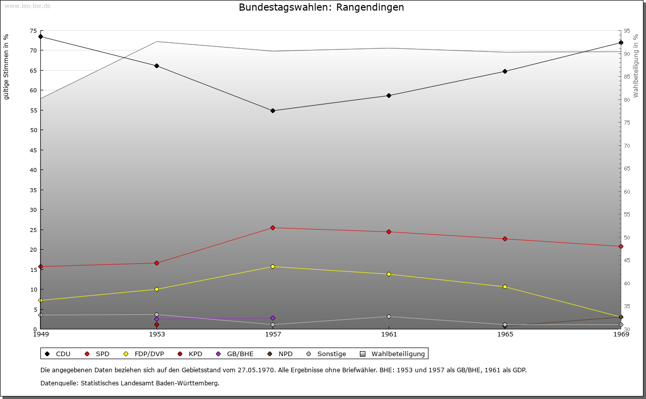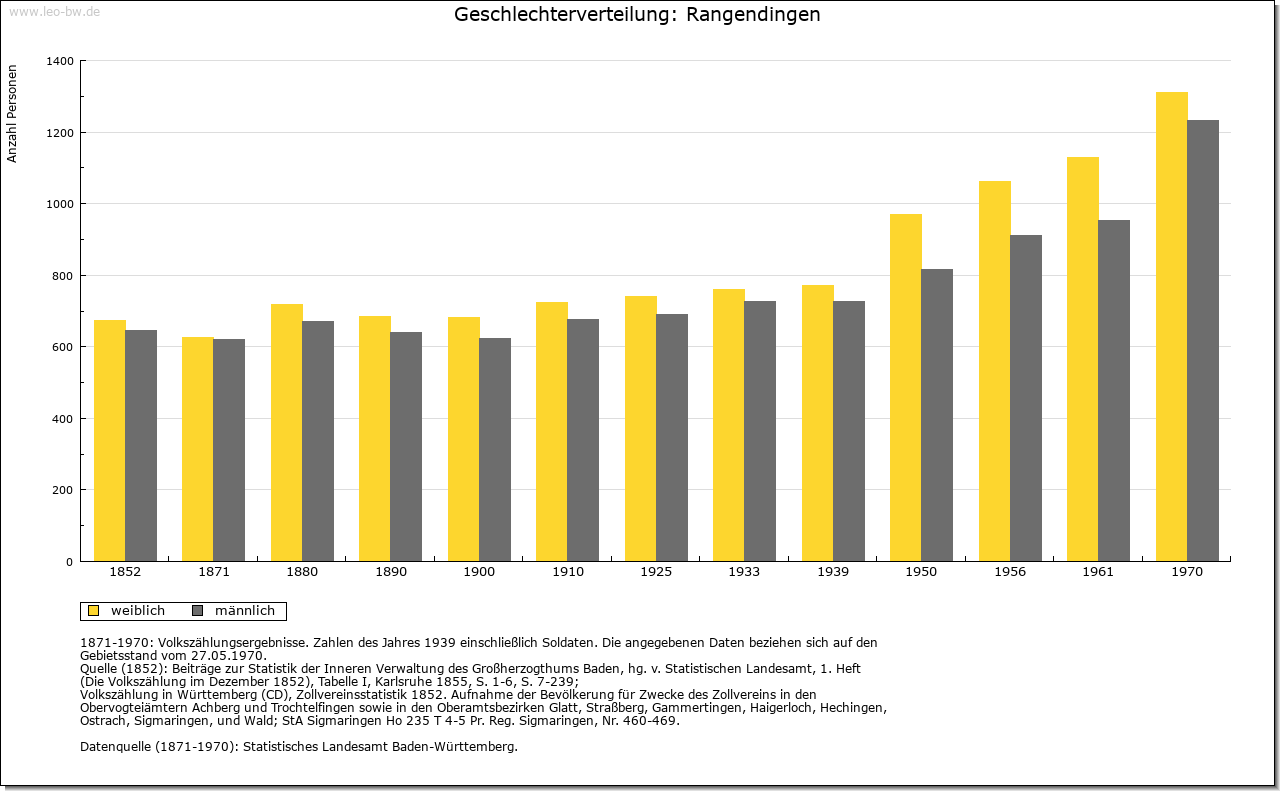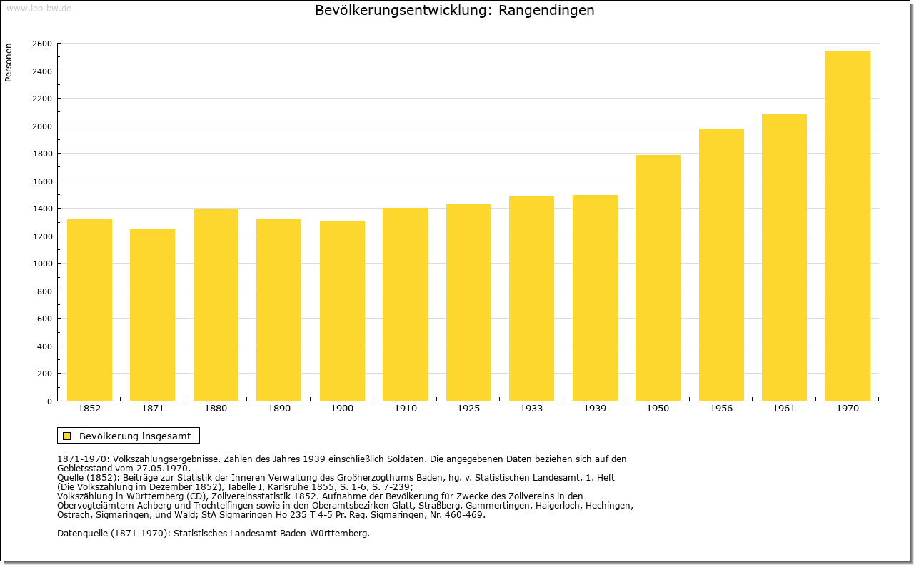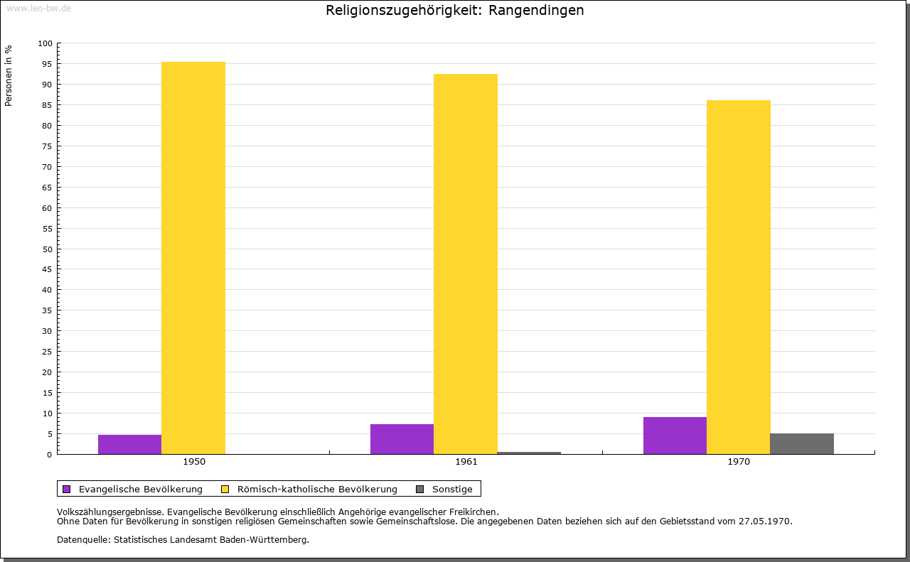 | Geschichte: | 795 Rangodinga (Personenname), älteste Siedlungsschicht. Alemannische Reihengräber im Südosten. Herren von Rangendingen, wohl Niederadlige, sind 1277 (?) bis 1311 erwähnt. Ob die bis ins 15. Jahrhundert als Stadtbürger von Balingen, Rottenburg und Rottweil erwähnten Rangendinger hierher gehören, ist unsicher. Nördlich des Orts »Hochburg«, vielleicht mittelalterliche Burg innerhalb vorgeschichtlicher Wallanlage. Spätestens im 15. Jahrhundert Teil der Herrschaft Haigerloch, doch besaß auch Zollern Rechte im Ort. 1467 überließ Erzherzogin Mechthild von Österreich alle ihre Herrschaftsrechte an Graf Jos Niclas von Zollern. 1576 zur Grafschaft Hohenzollern-Hechingen. Hohenzollerisch, 1850 preußisch. Oberamt (1925 Landkreis) Hechingen. Marktrecht schon im 15. Jahrhundert erwähnt. |