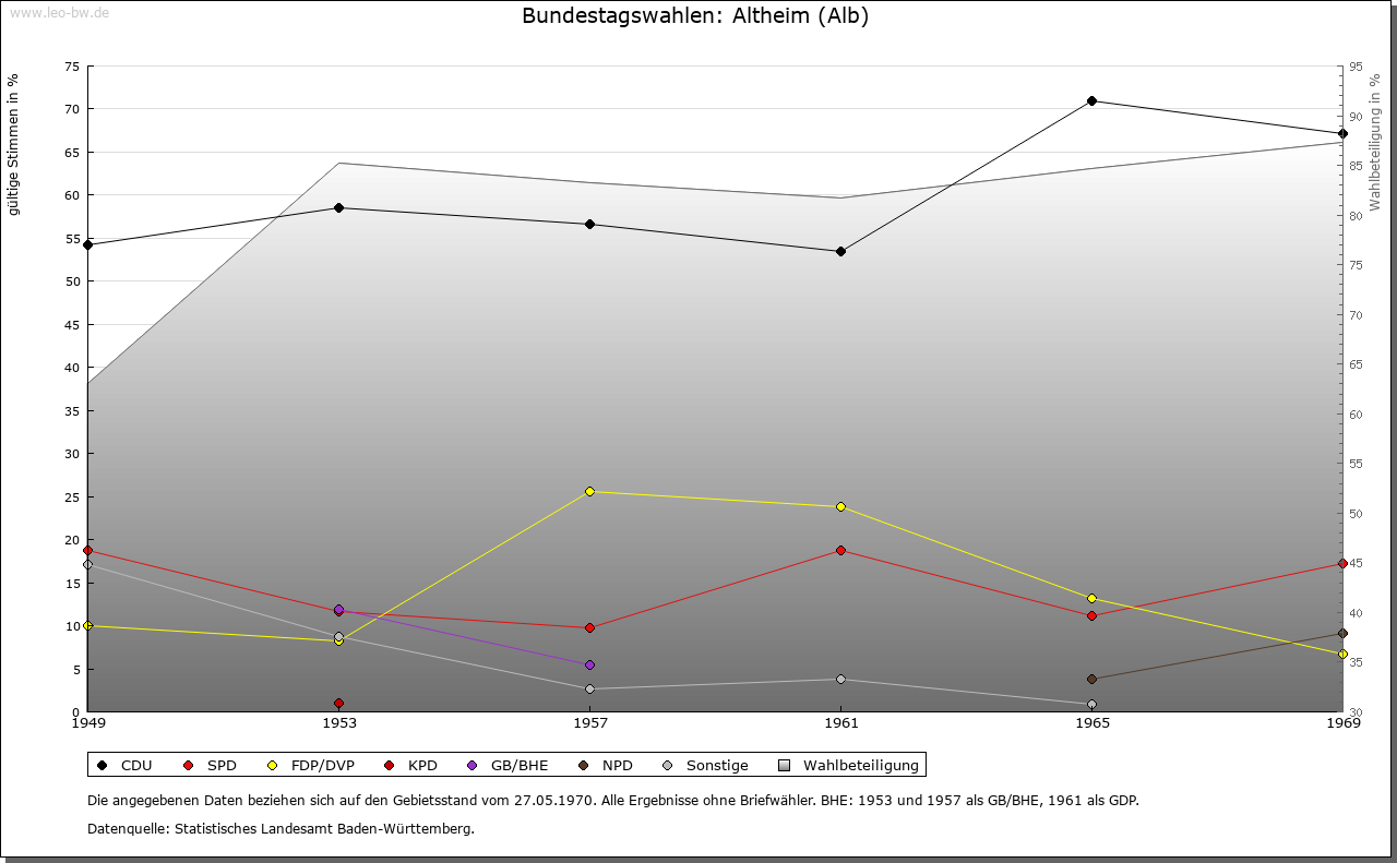 | Ortslage und Siedlung (bis 1970): | Das Haufendorf liegt am Rand der Flächenalb. Großes Neubaugebiet am Aufstieg zur Kuppenalb. |