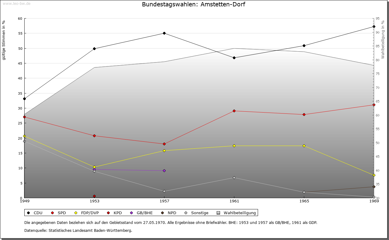 | Kirche und Schule: | Seit 1275 ist die wohl wesentlich ältere Kirche zum Heiligen Laurentius erwähnt. Den Kirchensatz verkauften die Grafen von Helfenstein 1396 an Ulm. Reformation. Die heutige evangelische Pfarrkirche wurde 1498/99 erbaut. Katholiken nach Geislingen an der Steige (Sankt Sebastian). |