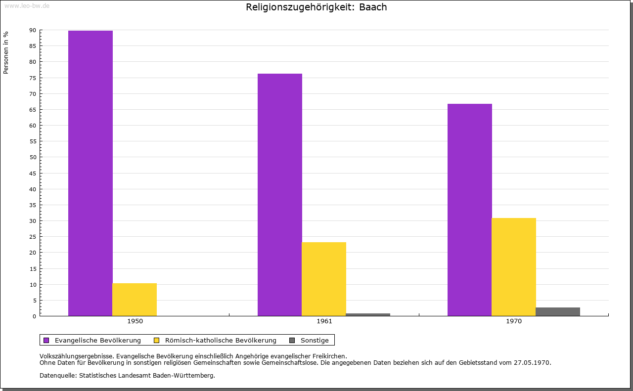 | Kirche und Schule: | Kirchlich war Baach bis 1911 stets Filial von Winnenden, seither von Birkmannsweiler. Katholisch zu Winnenden. |