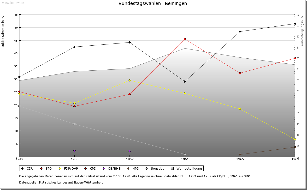 | Geschichte: | 11. Jahrhundert (Chronik 16. Jahrhundert) Bainingen (Personenname?), nach dem Namenstyp wohl älteste Siedlungsschicht. Nach Tubingius schenkten die Pfalzgrafen Anselm und Hugo hiesigen Besitz dem Kloster Blaubeuren. Das Spital Blaubeuren erwarb im 15. Jahrhundert zwei vormals den von Wernau gehörende, von Helfenstein zu Lehen gehende Höfe. 1447 wurde der Ort mit Blaubeuren von den Grafen von Helfenstein an Württemberg verkauft. Amt beziehungsweise Oberamt Blaubeuren bis 1938, dann Landkreis Ulm. |