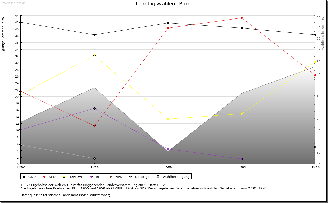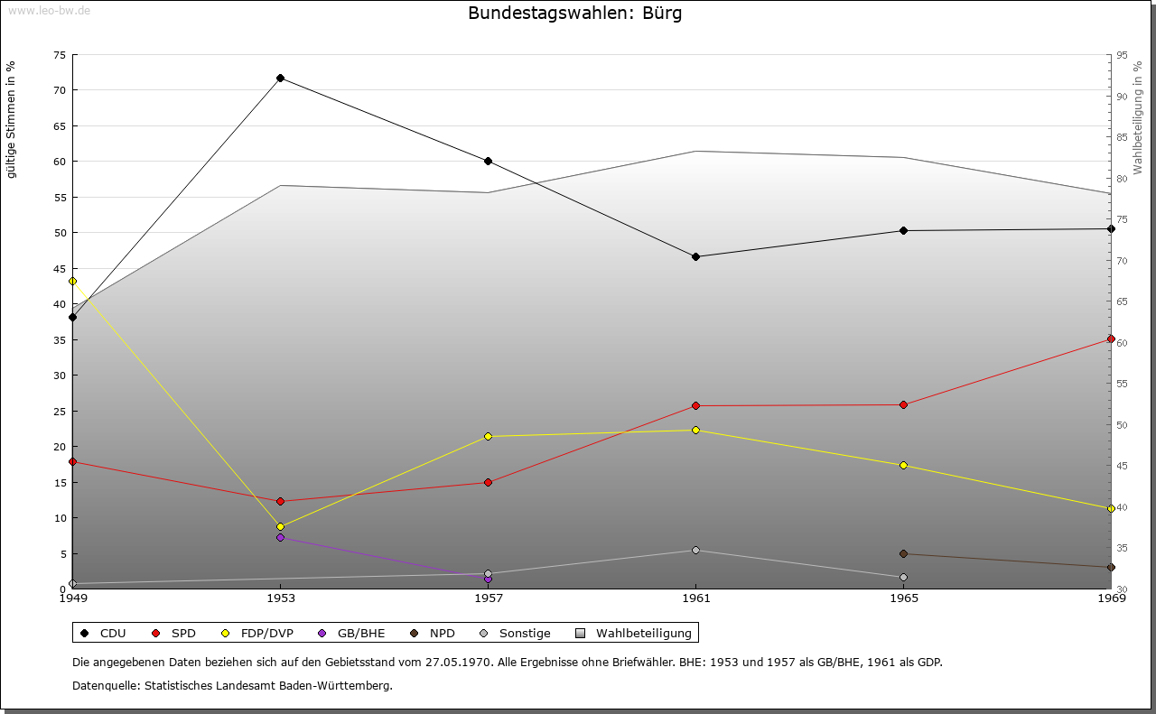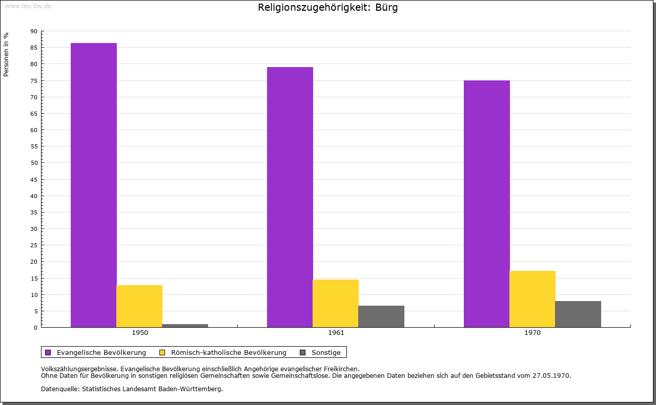 | Kirche und Schule: | Kirchlich war Bürg bis 1909 Filial von Winnenden, seither von Hertmannsweiler. 1355 wird eine Kapelle St. Veit (so 1540) genannt. Evangelische Auferstehungskirche 1964 erbaut. Katholisch zu Winnenden |