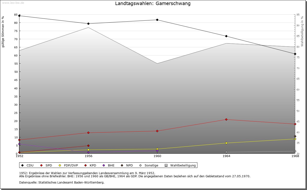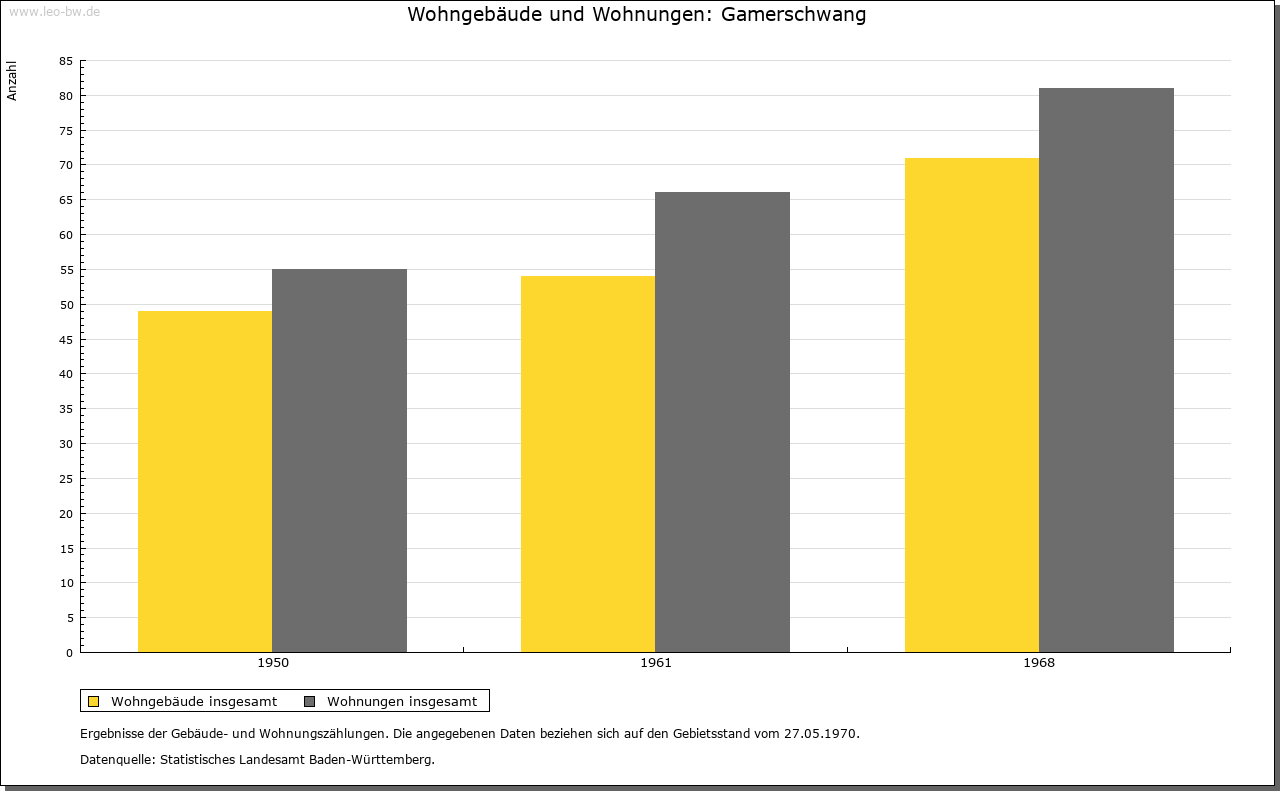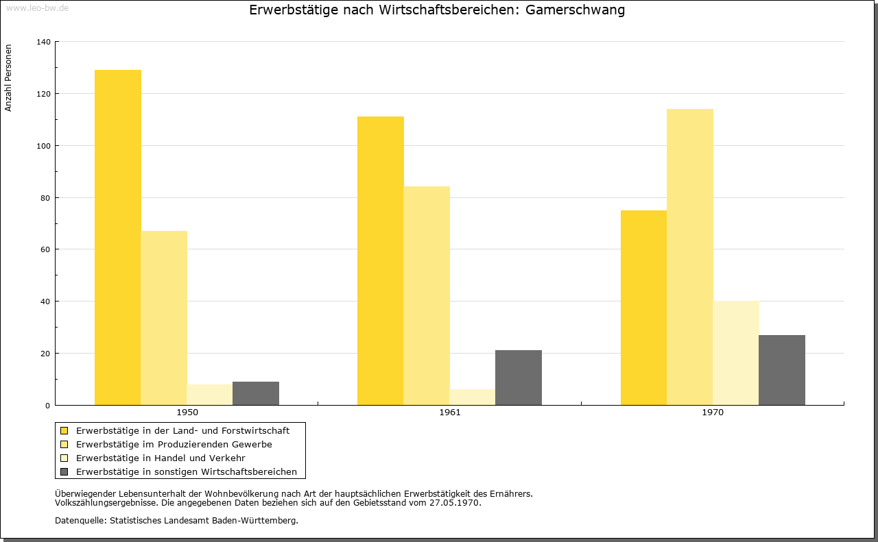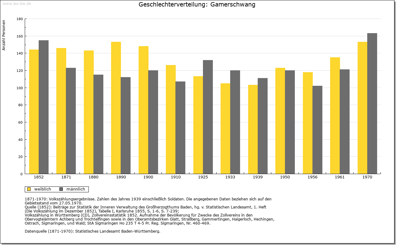 Geschichte: 12. Jahrhundert Gamenesuuanc, 1277 Gamelswanch (Personenname), vermutlich hochmittelalterliche Ausbausiedlung. Adel von Gamerschwang im 12. Jahrhundert, im 13. Jahrhundert Dienstleute der Grafen von Berg, letztmals 1495 (in Überlingen verbürgert). Die Burg stand wohl an der Stelle des um 1760/70 von den Freiherren von Raßler erbauten Schlosses. Oberhoheit der Grafen von Berg, 1343 an Österreich. Burg und Ortsherrschaft als Lehen der Grafen von Helfenstein, von Werdenberg und von Fürstenberg in Händen der Sefler von Ulm (1365), der von Reischach (1380) und der Kraft von Ulm (1397), die sich nach dem Ort benannten, ihn aber 1435 an die Herren von Schienen verkauften. Diese zogen nach der Zerstörung ihrer Burg auf dem Schienerberg (1441) hierher. Nach 1550 wech­selnde Besitzer (von Freyberg, Speth von Schülzburg), dann 1661 Belehnung der von Raßler, die sich seit 1681 »zu Gamerschwang« nannten. Das Rittergut gehörte zum Kanton an der Donau. 1760 bis 1770 Niederlassung zahlreicher Hausierhändler im Ort. 1805 an Württemberg, Oberamt (1938 Landkreis) Ehingen. Patrimonialamt bis 1809. Um 1810/11 Schultheißerei Nasgenstadt, seither selbständig.
