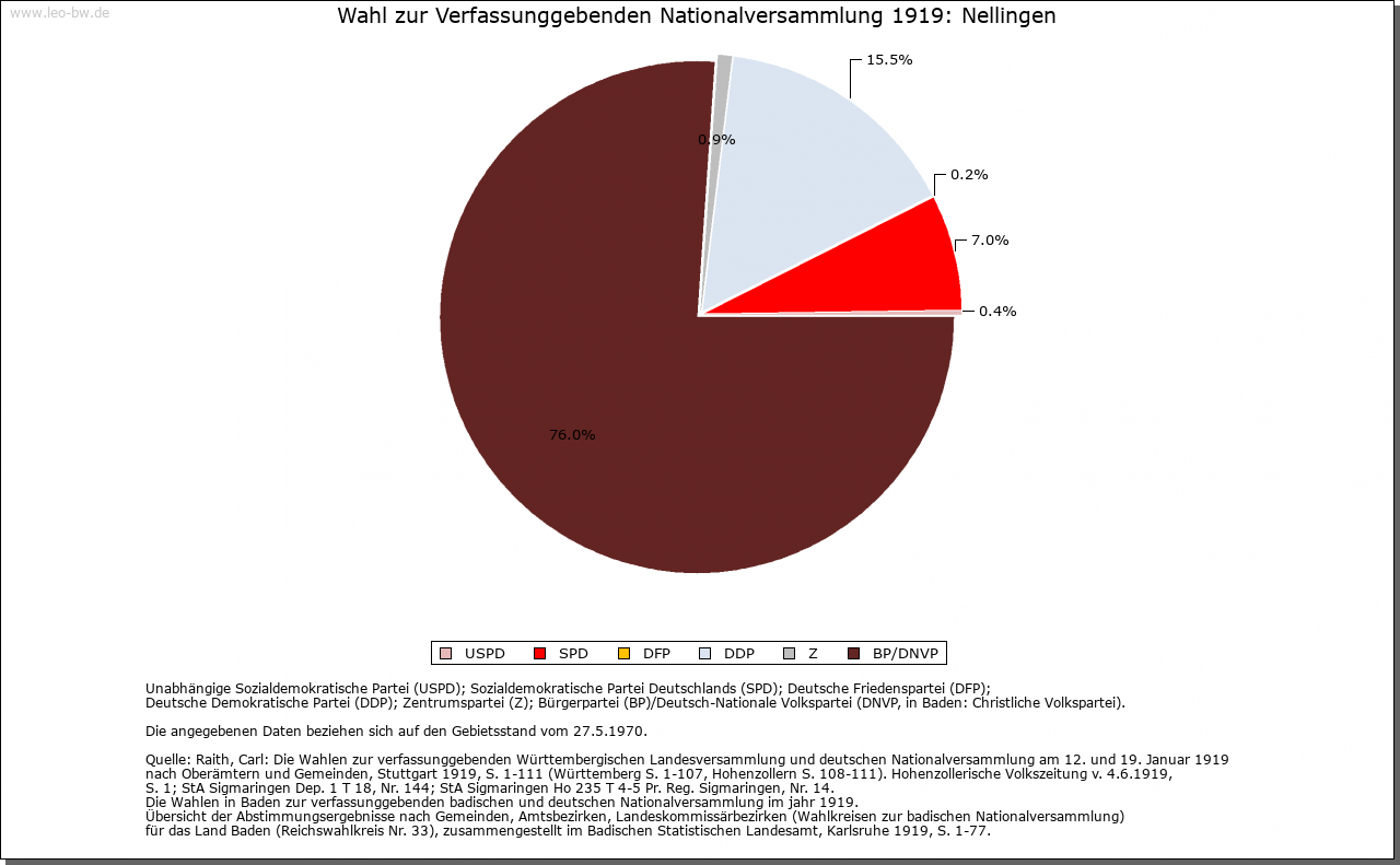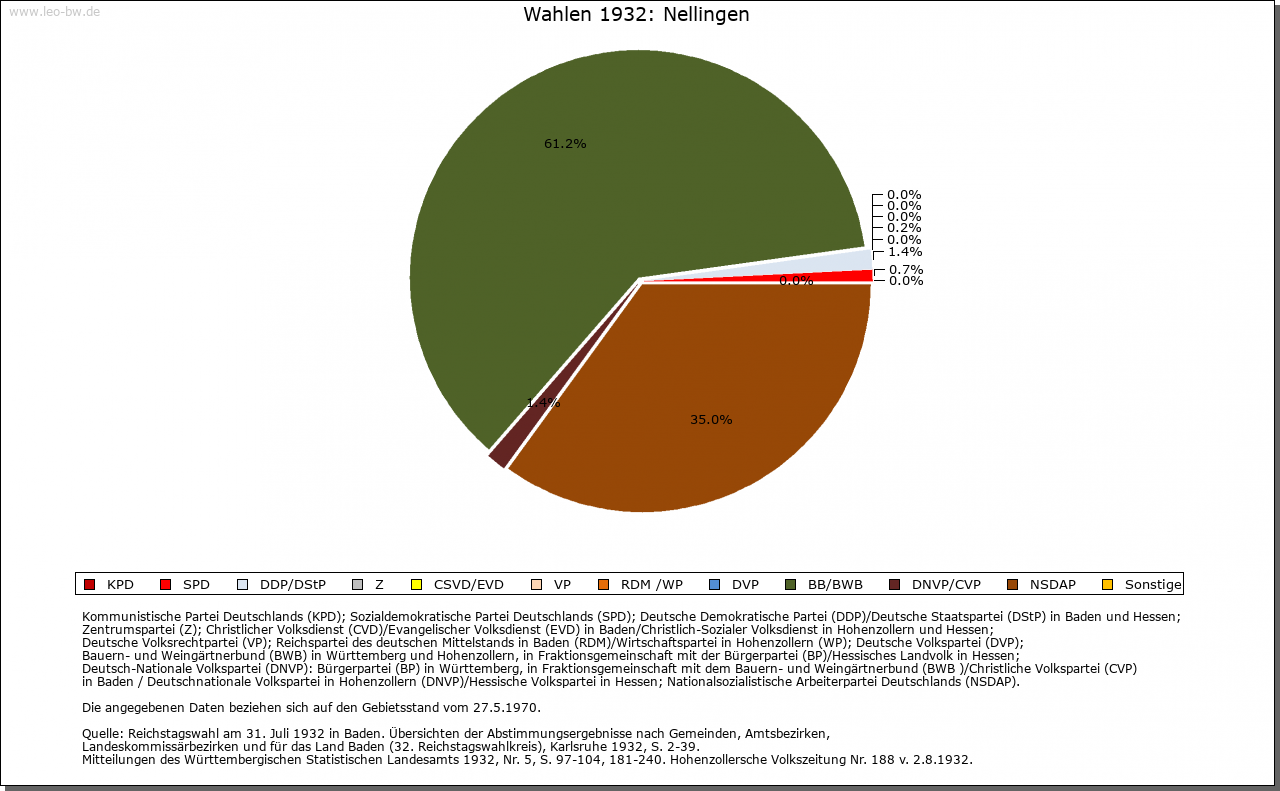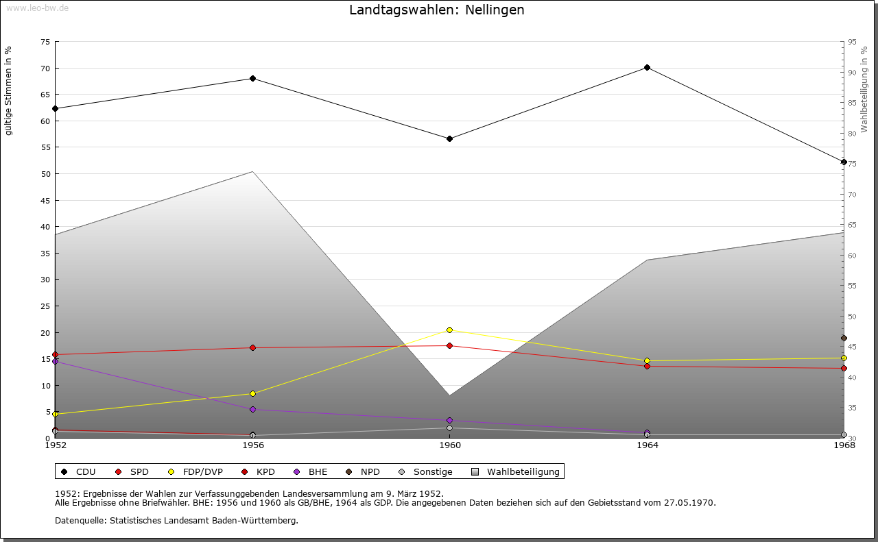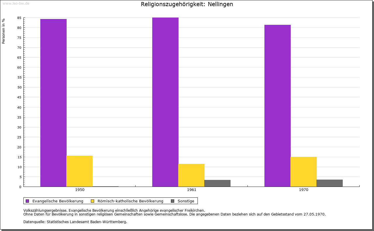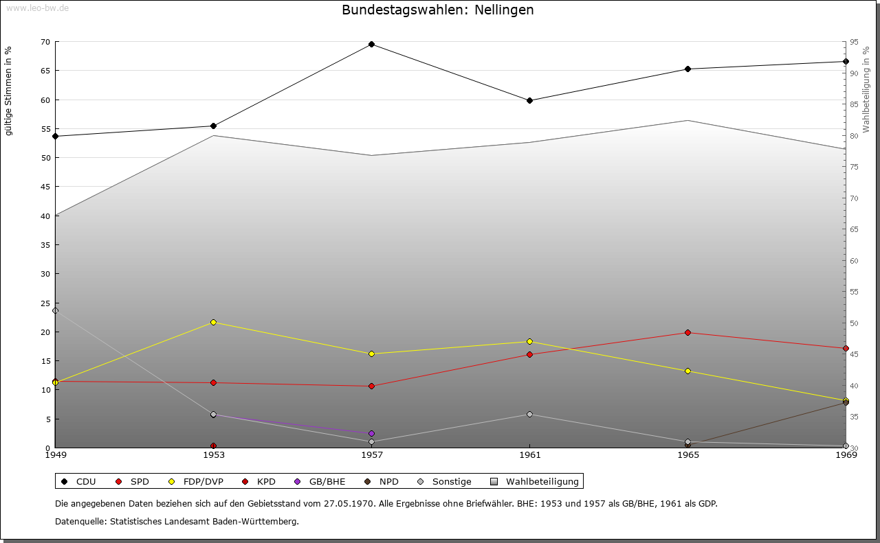 Geschichte: 12. Jahrhundert (Корie 1803) Nallingen, 1221 Nallingin (Personenname Nallo), älteste Siedlungsschicht, Reihengräber wenig nördlich des Orts. Nach Nellingen nannte sich eine Niederadelsfamilie, ein Zweig derer von Bernstadt und von Reußenstein. Sie ist vom 12. bis 15. Jahrhundert belegt und gehörte wohl zur helfensteinischen Ministerialität. Der am sogenannten Zigeunerhochsträß gelegene Ort war Lehen des Klosters Ellwangen und im 13. Jahrhundert im Besitz derer von Nellingen, dann der Grafen von Helfen­stein. Diese erwirkten 1372 von Kaiser Karl IV. für Nellingen das Marktrecht sowie das Recht auf Stock und Galgen, mussten aber den Markt 1375 an Kloster Blaubeuren verkaufen. Vom Kloster kam der Ort über die von Westertetten, Ulmer Bürger und nochmals die Grafen von Helfenstein bis 1482 ganz an die Reichsstadt Ulm. Zoll und Geleit hatte Ulm schon 1396/1446 erworben. Der Ort wurde 1643, 1696 und 1729 von großen Bränden betroffen und 1688 von den Franzosen eingeäschert. Nellingen war ein ulmisches Amt, dem 1744 das Amt Merklingen, 1753 Aufhausen und 1774 das Amt Türkheim (mit Wittingen, Amstetten und Oppingen) angegliedert wurden. 1803 an Bayern, 1810 an Württemberg. Oberamt Blaubeuren, 1938 Landkreis Ulm.