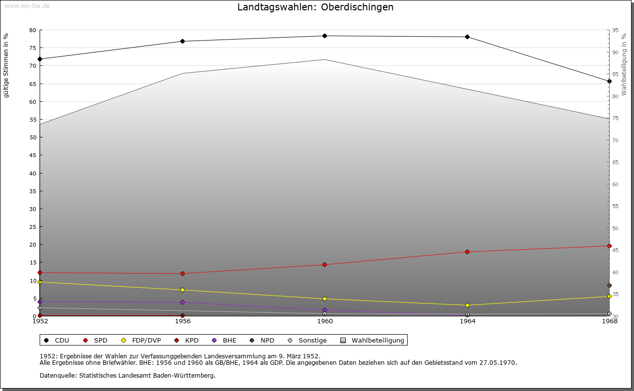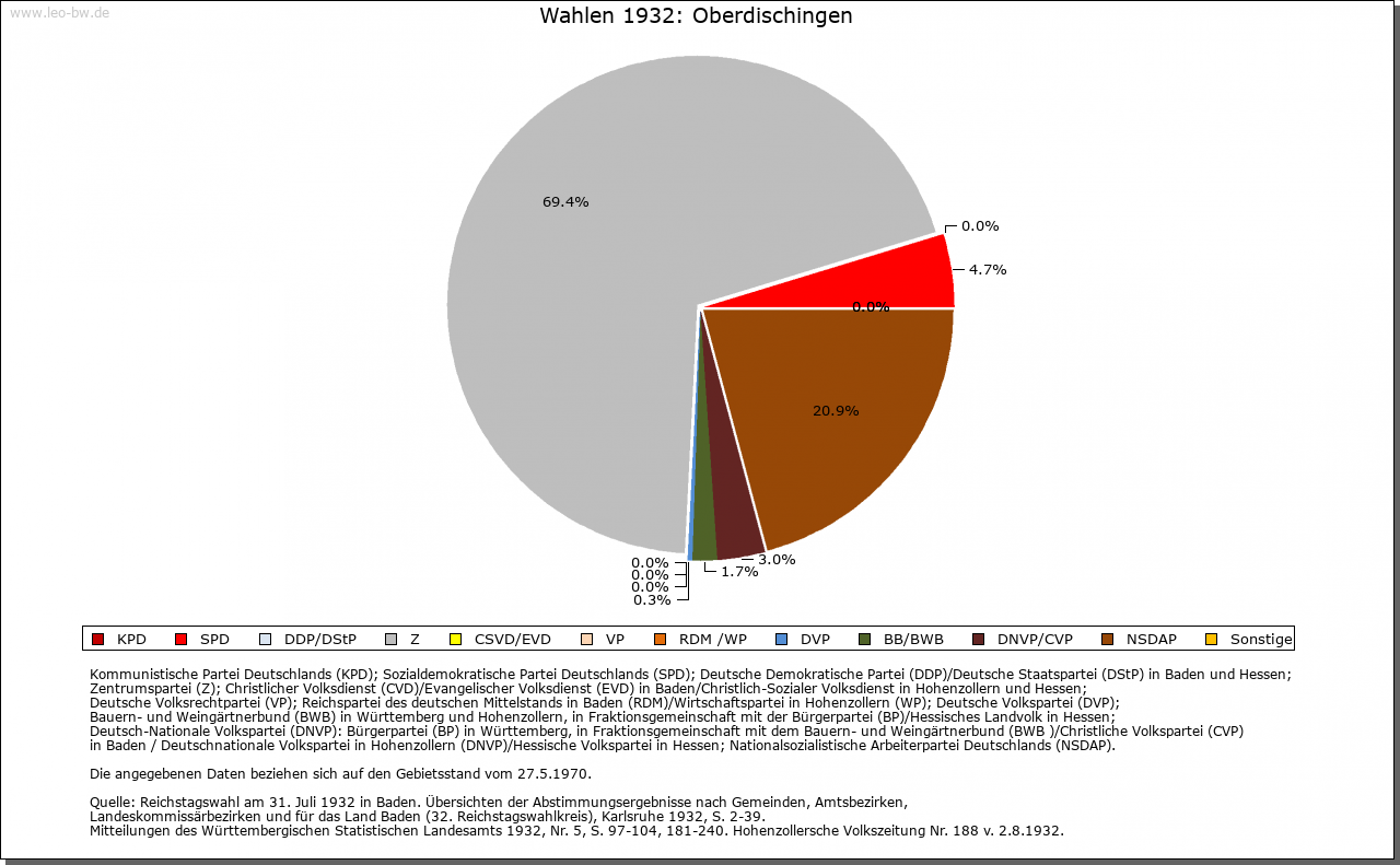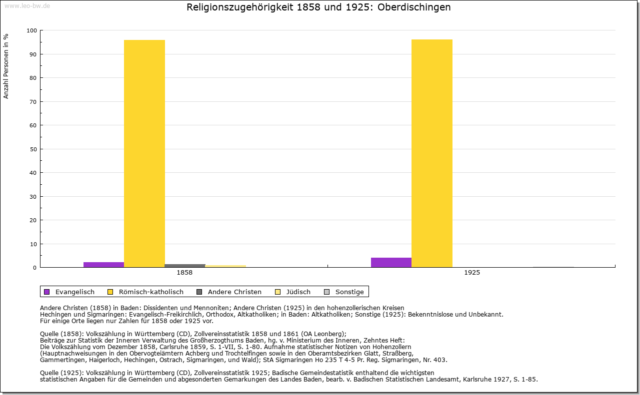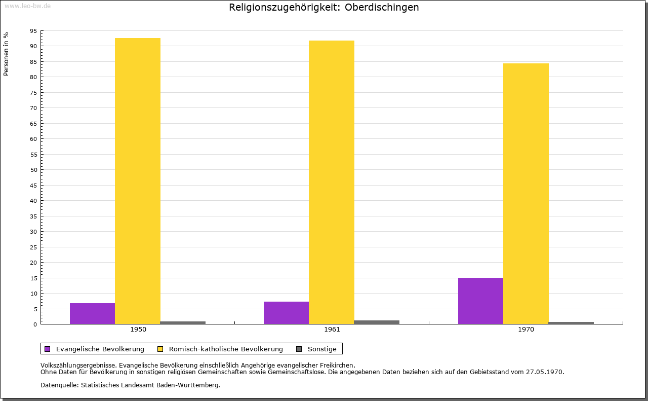 | Geschichte: | 1148 Ticchingen (Personenname), älteste Siedlungsschicht. Alemannisches Reihengräberfeld nordöstlich auf Flur Schießmauer. Bis ins 18. Jahrhundert »Dischingen«. Niederadel von Dischingen ist 1245 bis 14. Jahrhundert genannt, meist mit dem Beinamen Baiger oder Baier, Dienstleute der Grafen von Berg. Im 14. Jahrhundert legten sich die Harscher den Beinamen von Dischingen zu. Herrschaft der Grafen von Berg, 1343 an Österreich. Verliehen an zahlreiche Adelige; Anfang 16. Jahrhunderts im Alleinbesitz der von Stotzingen, die 1532 auch mit der Hoch- und Blutgerichtsbarkeit belehnt wurden. 1661 Verkauf an die Freiherren (seit 1681 Grafen) Schenk von Castell, die den Ort zum Mittelpunkt ihrer ausgedehnten Besitzungen machten. Graf Franz Ludwig Schenk von Castell genannt Malefizschenk (1736 bis 1821) machte sich um die Bekämpfung des Räuberunwesens verdient. Er erbaute 1767 das noch bestehende Kanzlei-, Zucht- und Arbeitshaus (»Fronfeste«), eine dreiflügelige Barockanlage, und den sogenannten Neuen Bau, sein Sohn Graf Franz Joseph an der Stelle des 1807 abgebrannten Schlosses das neue Schloss (»Kavaliersbau«, nach Brand 1969 nur Nordflügel wiederhergestellt). 1805 kam Oberdischingen unter württembergische Staatshoheit, Oberamt (1938 Landkreis) Ehingen. Das Patrimonialamt wurde 1824 aufgehoben. |