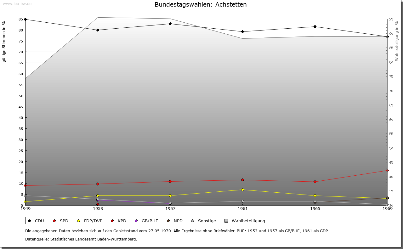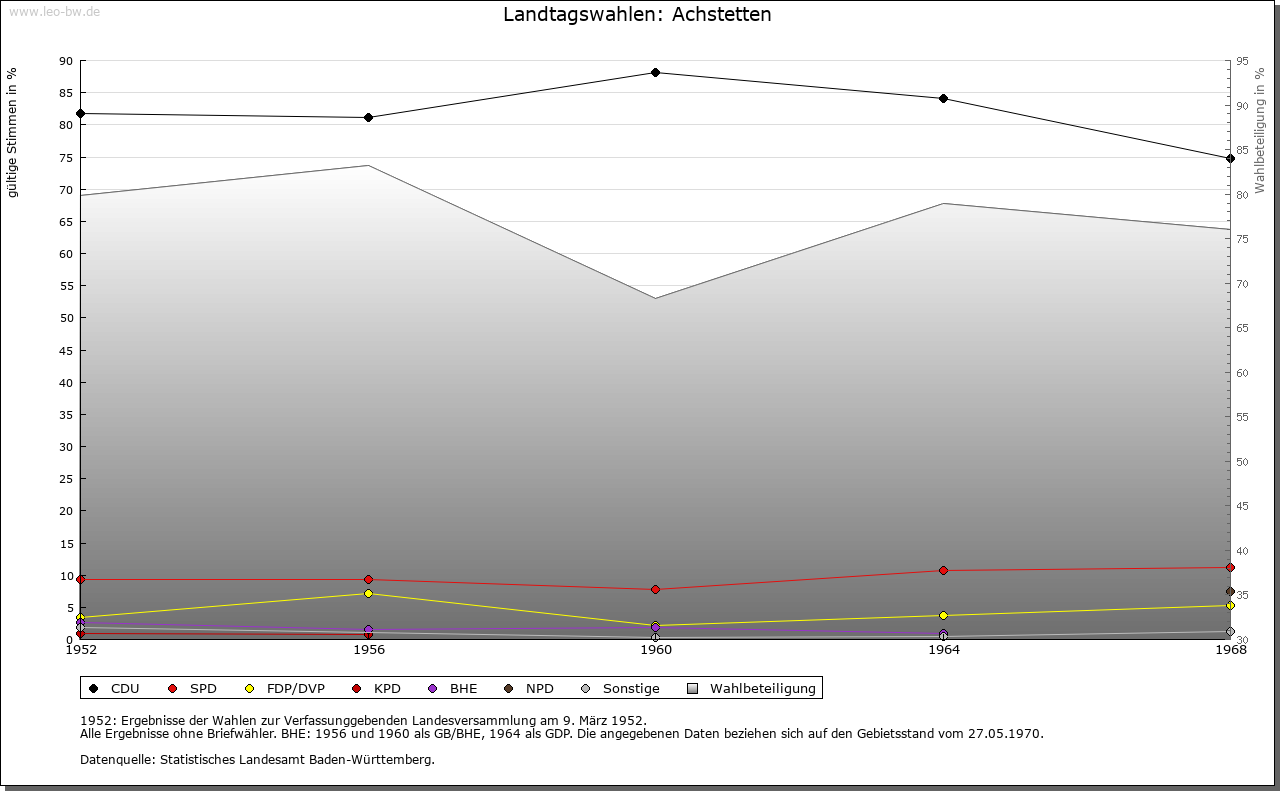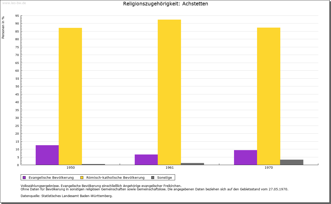 | Geschichte: | 879 Achstetten (hierher?), 1194 Asteten (aha = Wasserlauf). Siedlung der älteren Ausbauzeit. Dietrich von Achstetten, im 14. Jahrhundert genannt, ist vielleicht Rechtsvorgänger der Herren von Freyberg, die seit der Mitte des 14. Jahrhunderts als Ortsherren auftraten und von denen sich ein Zweig von Achstetten benannte (erstmals Burkard 1356). Diese Linie starb 1639 im Mannesstamm aus. Burg 1386 genannt (1449 »Wasserhaus«). 1447 wurde ein Drittel des Dorfs an Kloster Gutenzell verkauft. Der freybergische Anteil ging 1639 auf die Erbin Johanna Sabina (verheiratet mit von Lodron) und von dieser vermutlich über die Schwendi 1689 an die Grafen von Öttingen-Spielberg (zu Schwendi) über. Diese vertauschten das dem Ritterkanton Donau inkorporierte Rittergut 1765 an die Feiherren von Weiden zu Laupheim, die es 1794 dem Deutschordenskomtur Beat Konrad Reuttner von Weyl verkauften. Dieser ließ 1794/96 anstelle der alten Burg das heutige dreigeschossige Schloss von F. A. Bagnato dem Jüngeren erbauen. Die Niedergerichtsbarkeit war seit 1447 zwischen beiden Ortsherrschaften geteilt, die auch fast die ganze Grundherrschaft innehatten. Die hohe Obrigkeit war (von der Grafschaft Kirchberg her) österreichisch (Landvogtei), aber anscheinend stets Lehen der Rittergutsbesitzer. Der gutenzellische Anteil kam 1803 mit dem Kloster an die Grafen von Törring. Das ganze Dorf wurde 1806 württembergisch. Oberamt Biberach. 1809 Aufhebung der Patrimonialämter. 1810 zum Oberamt Wiblingen/Laupheim, 1938 Landkreis Biberach. |