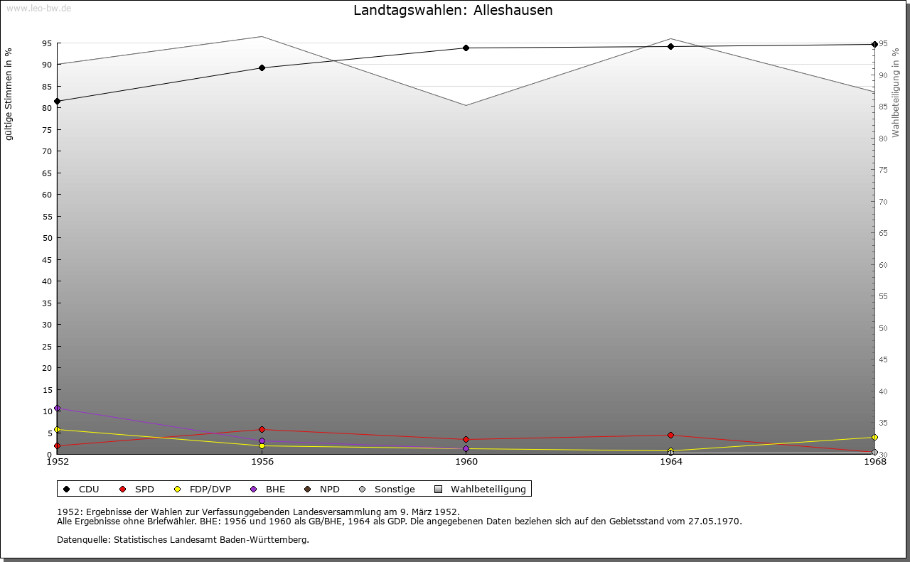 | Geschichte: | Vor 1150 Aleshusin. 1254 Alashusen (Personenname?). Siedlung der älteren Ausbauzeit. Der Ort kann im Mittelalter nur schwer von Altshausen unterschieden werden, da die Ortsnamen häufig gleichlautend waren. Der von 1263 an, meist zusammen mit Graf Hartmann von Grüningen, auftretende Ministeriale Ulrich von Alleshausen und seine Nachkommen sind vermutlich hierher und nicht nach Altshausen zu lokalisieren. Abgegangene Burg (Flurname Burgstall) südlich des Orts, noch 1650 erwähnt. Der Ort wurde nach der Überlieferung von Rudolf von Rheinfelden († 1080) an Kloster Sankt Blasien geschenkt, das 1446 auch die Vogtei von den Inhabern der österreichischen Herrschaft Warthausen erwerben konnte. 1477 Verkauf an Kloster (Ober-)Marchtal. Mit diesem 1803 an die Fürsten von Thurn und Taxis, 1806 unter württembergische Staatshoheit. Patrimonial-Obervogteiamt Obermarchtal bis 1809, dann 1823 bis 1849 Amt Buchau, Vogtei Dürmentingen. Oberamt Riedlingen, 1938 zum Landkreis Saulgau. |